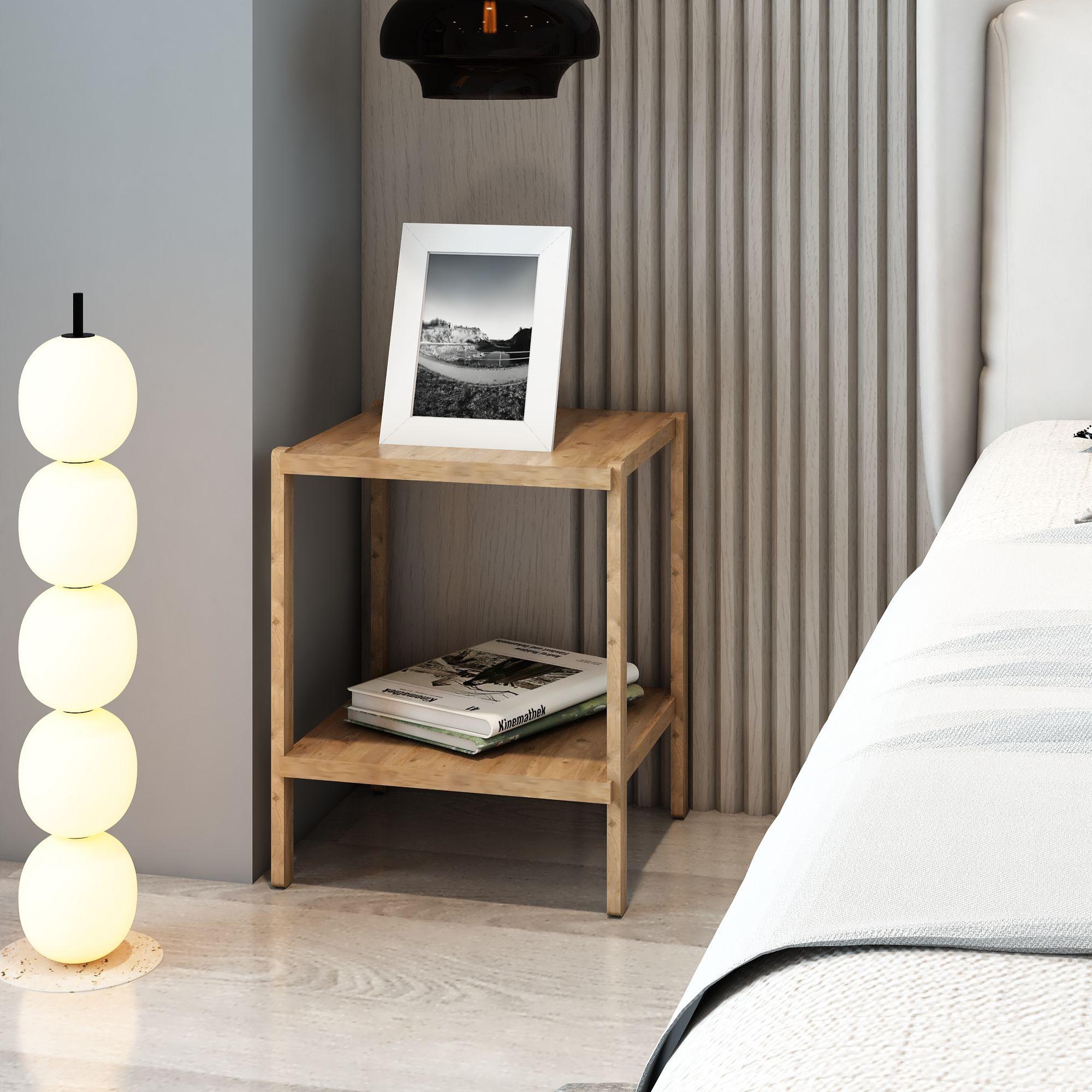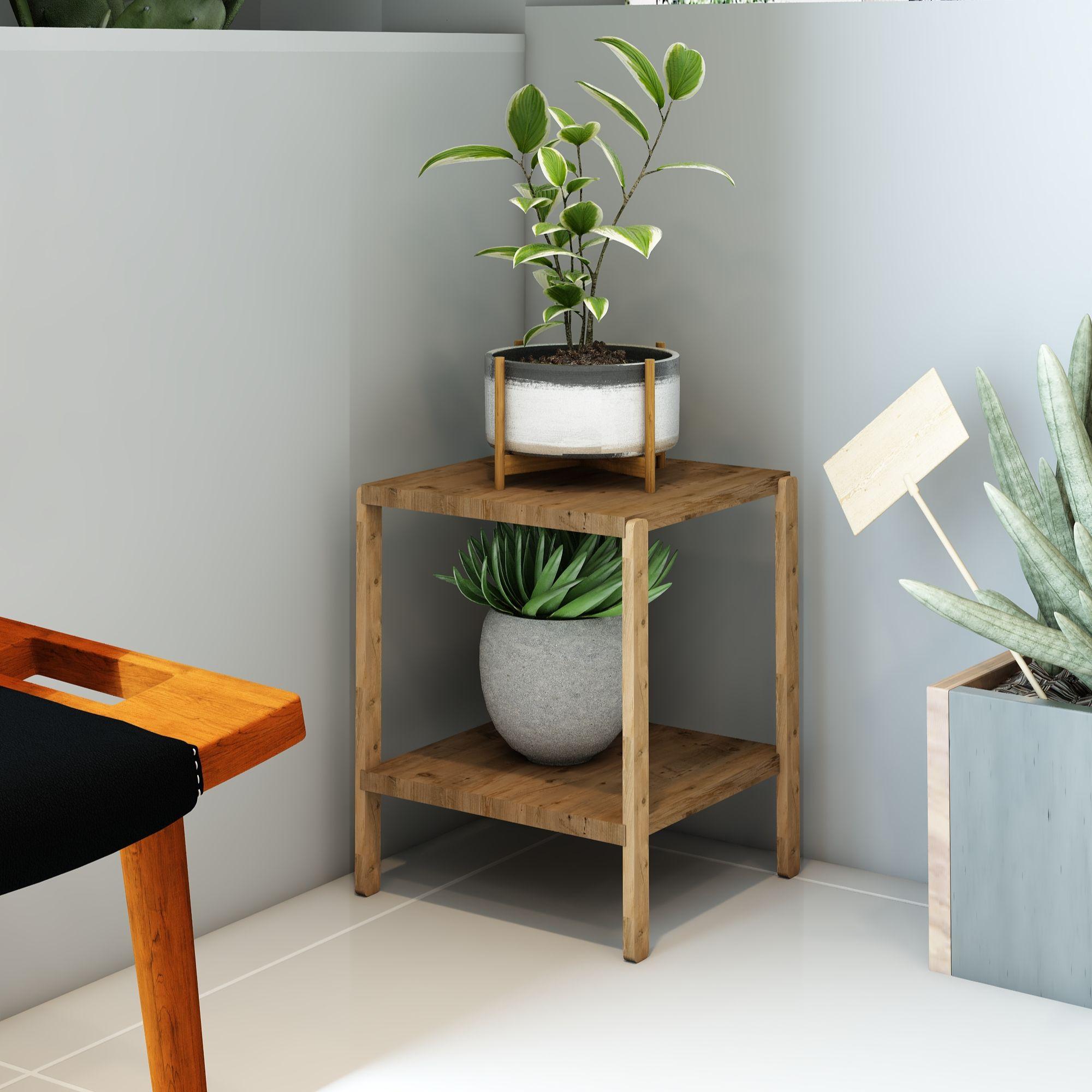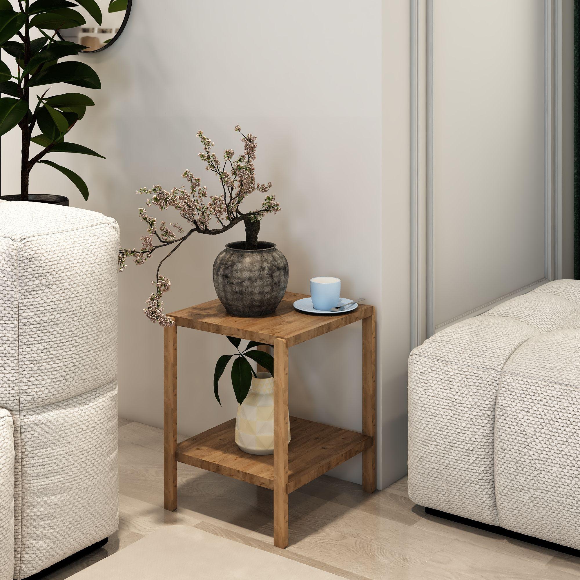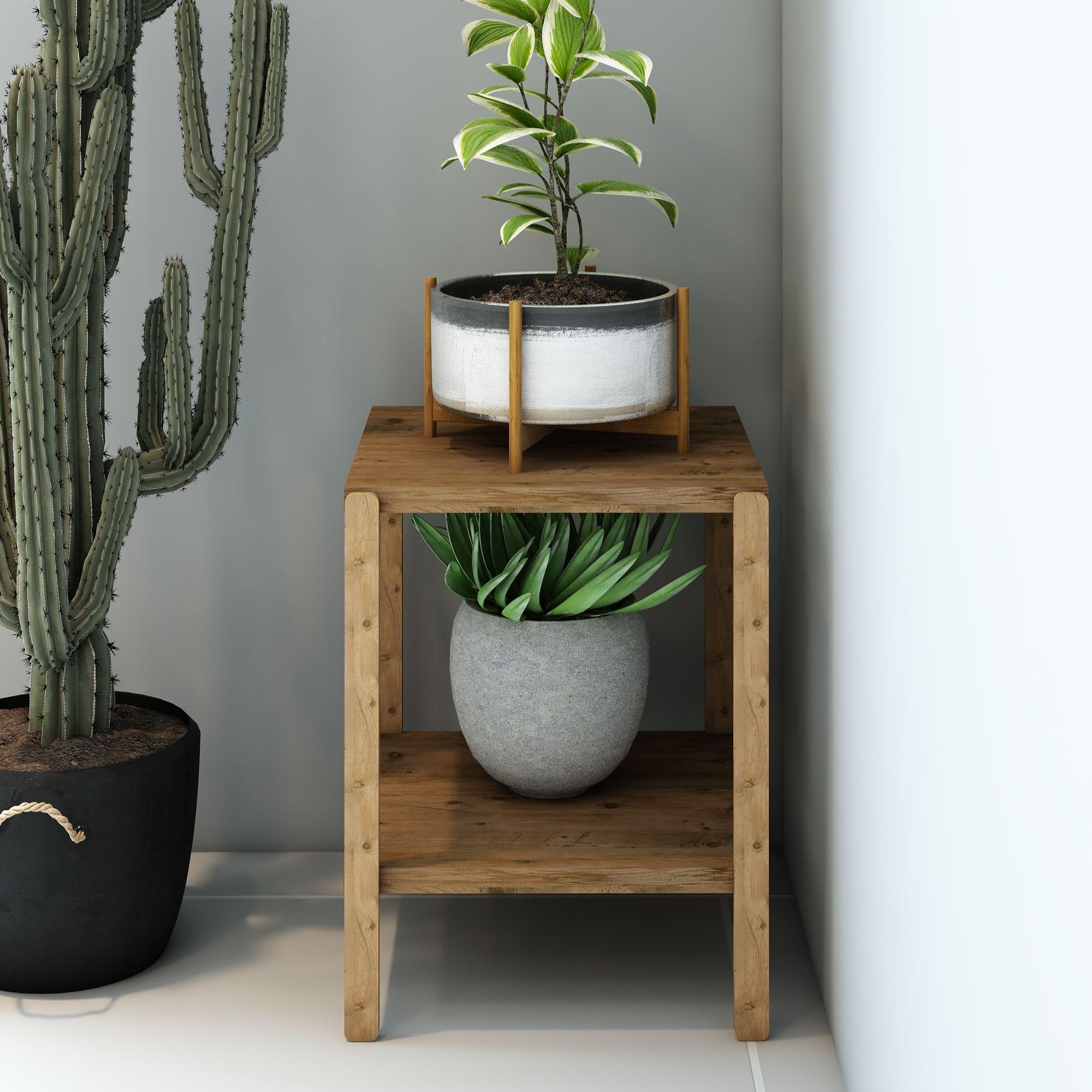 Aden 2 Katlı Atlantik Çam Ahşap Köşe Sehpası / Çok Amaçlı Dekoratif Raf, Saksı Standı, Çiçeklik / Mutfak Rafı, Baharatlık / Banyo Rafı