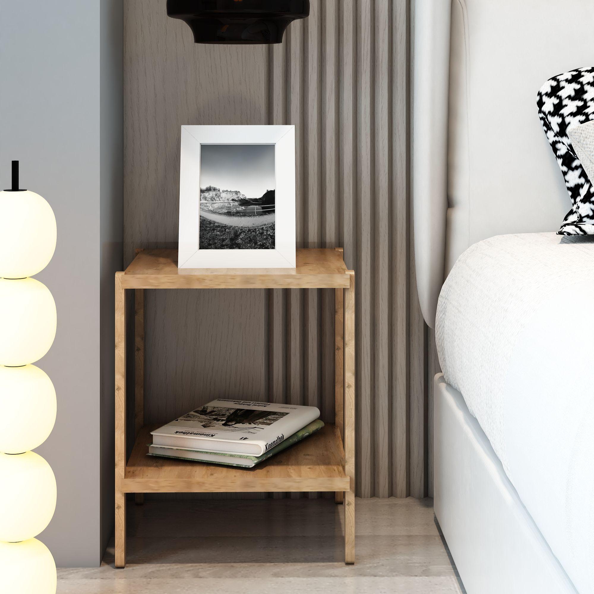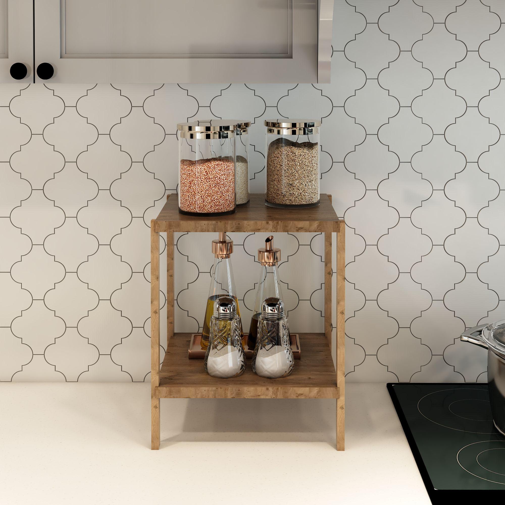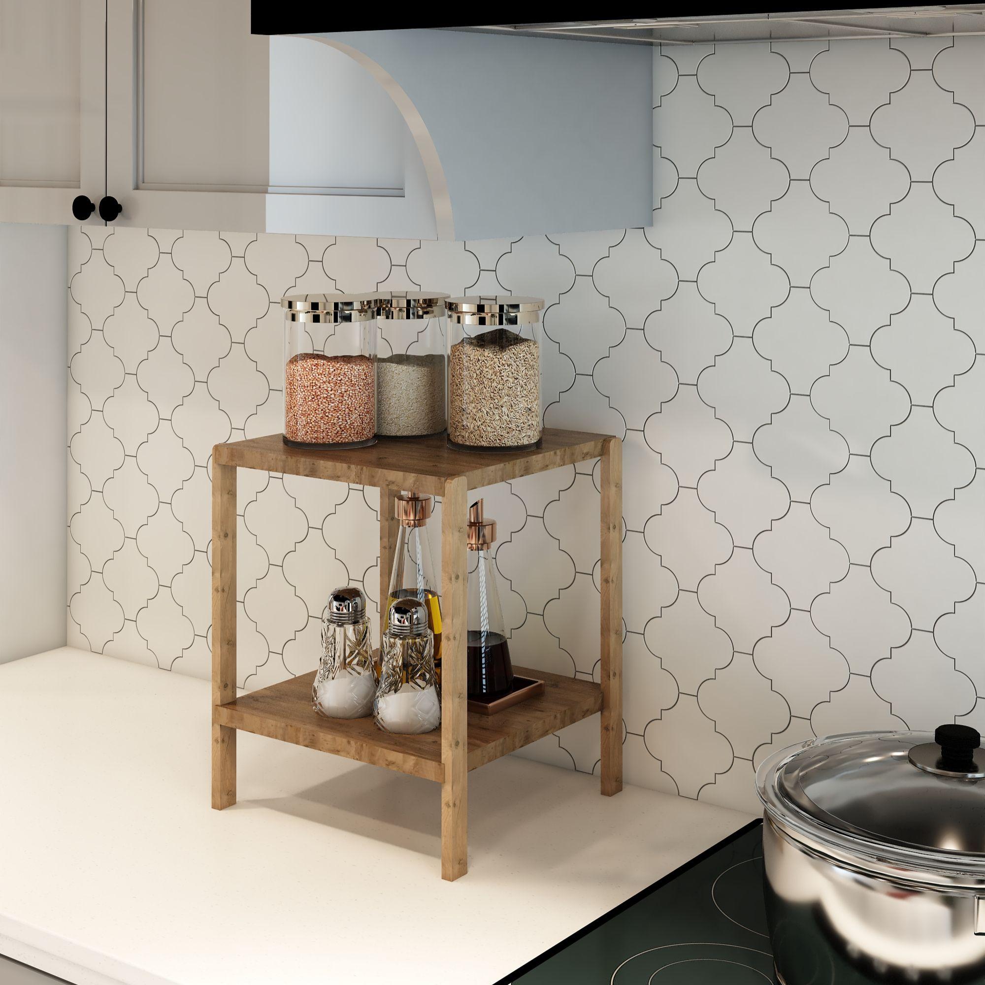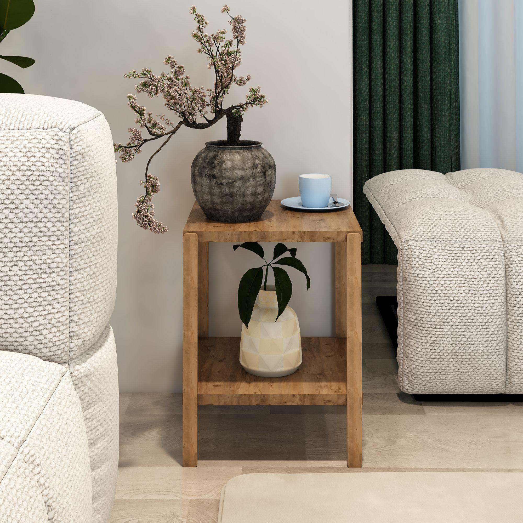 Aden 2 Katlı Atlantik Çam Ahşap Köşe Sehpası / Çok Amaçlı Dekoratif Raf, Saksı Standı, Çiçeklik / Mutfak Rafı, Baharatlık / Banyo Rafı