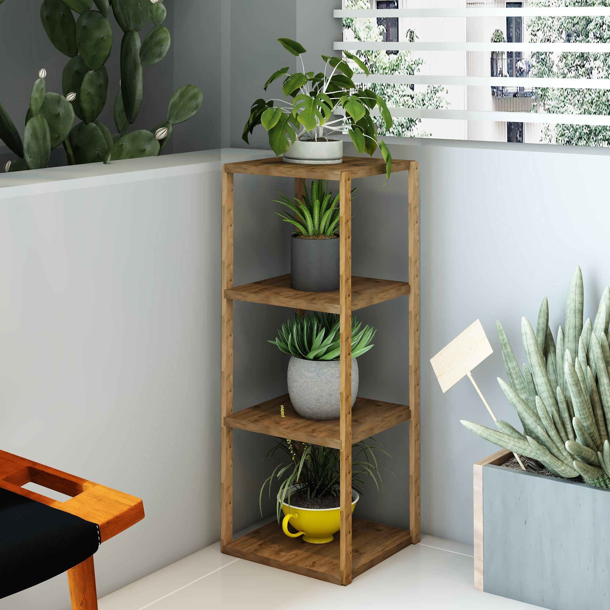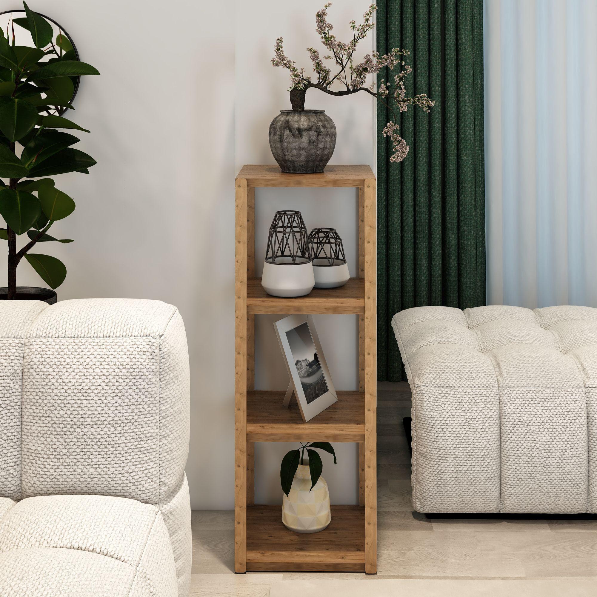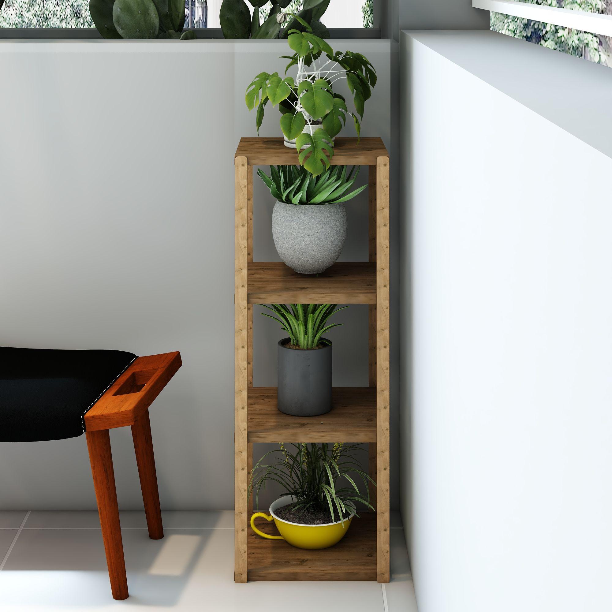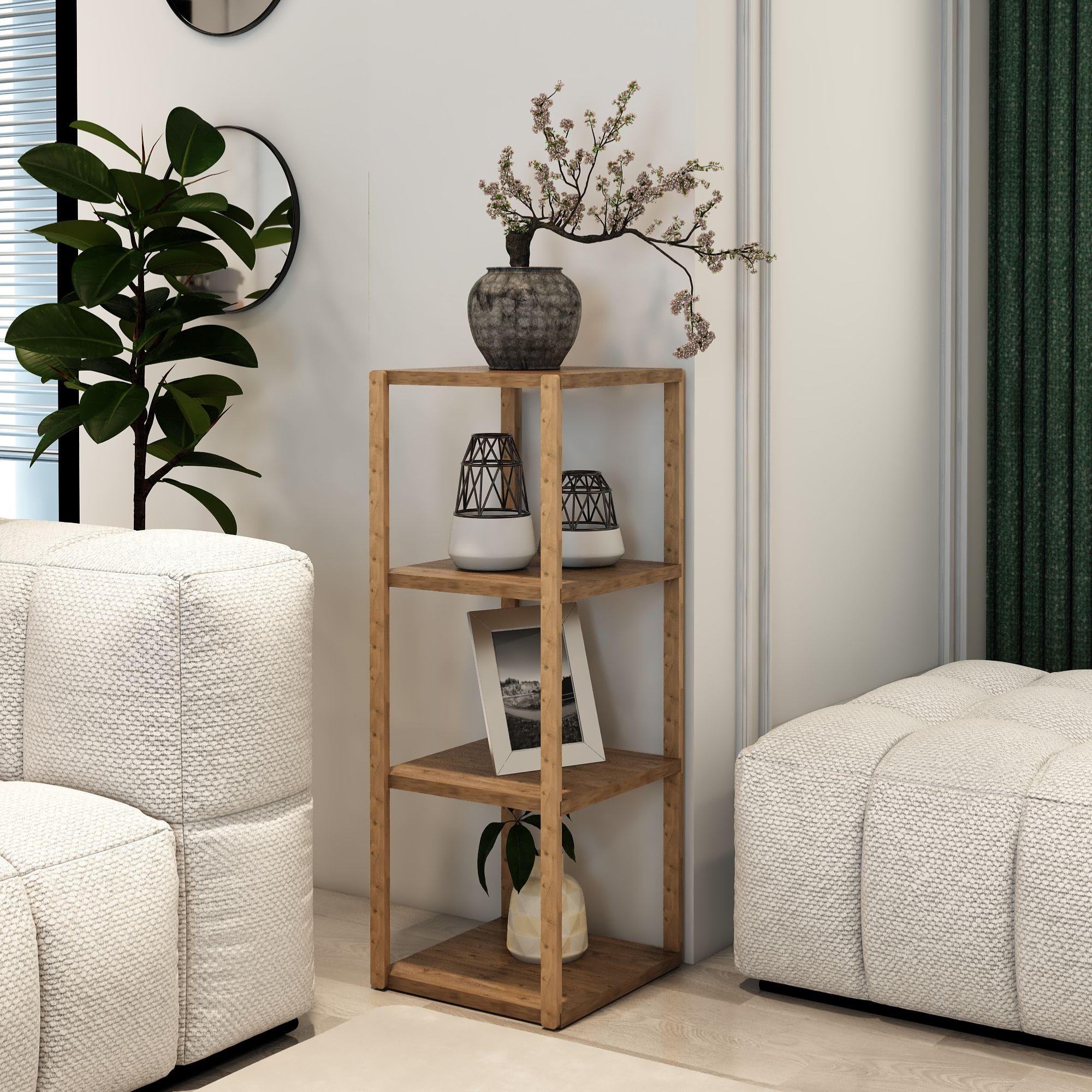 Aden 4 Katlı Atlantik Çam Ahşap Köşe Sehpası / Çok Amaçlı Dekoratif Raf, Saksı Standı, Çiçeklik / Mutfak Rafı, Baharatlık / Banyo Rafı