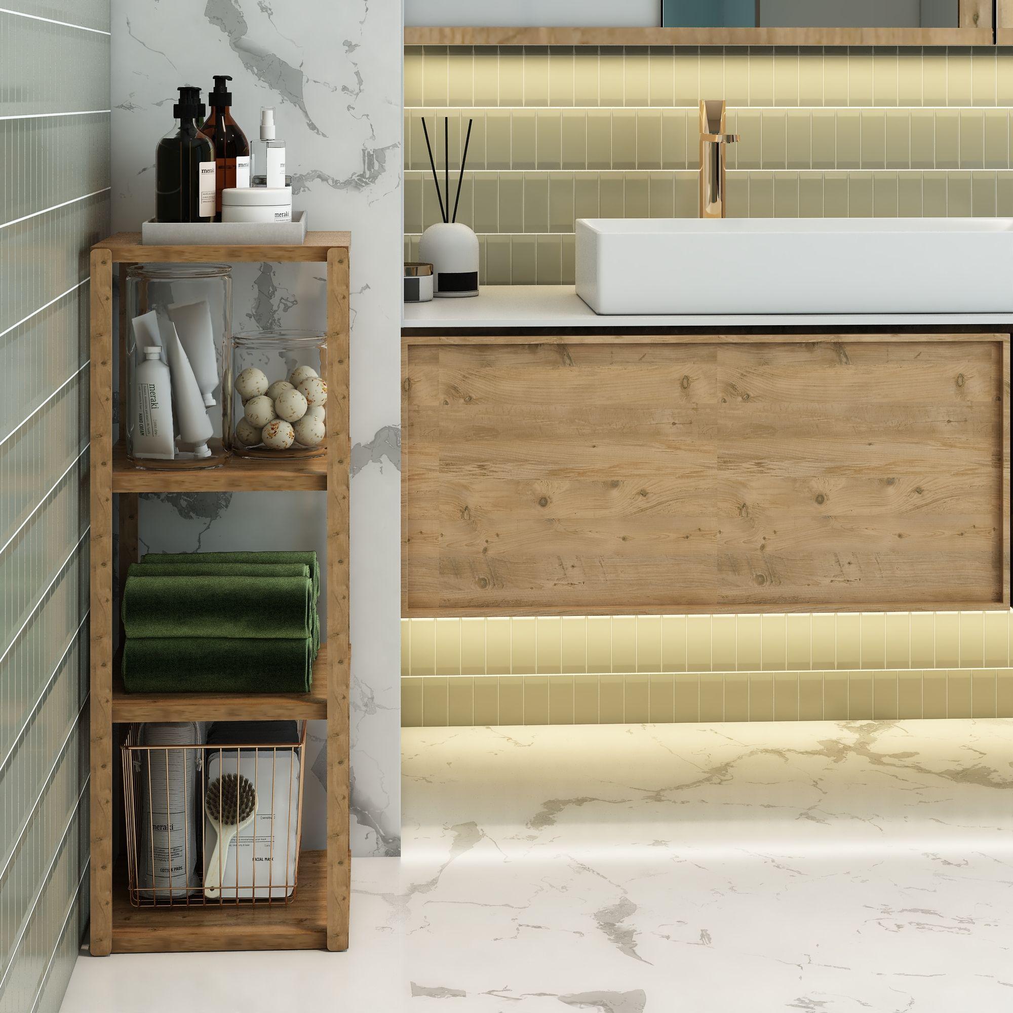 Dayanıklı gövde yapısı uzun süreli kullanım için idealdir. Doğal görünümlü ahşap ayakları ve sade Atlantik Çam raf yüzeyleriyle her dekorasyon tarzına kolayca uyum sağlar.
