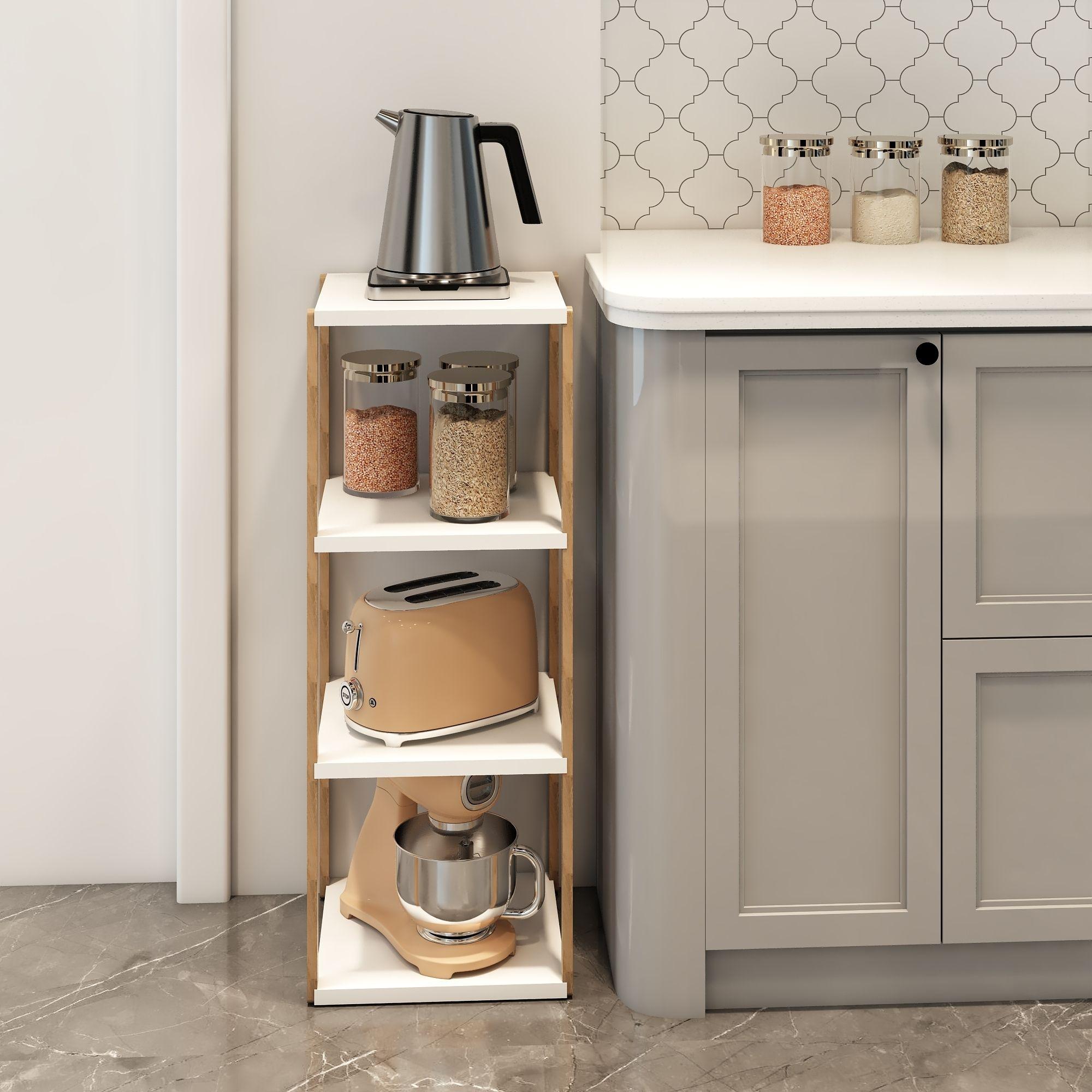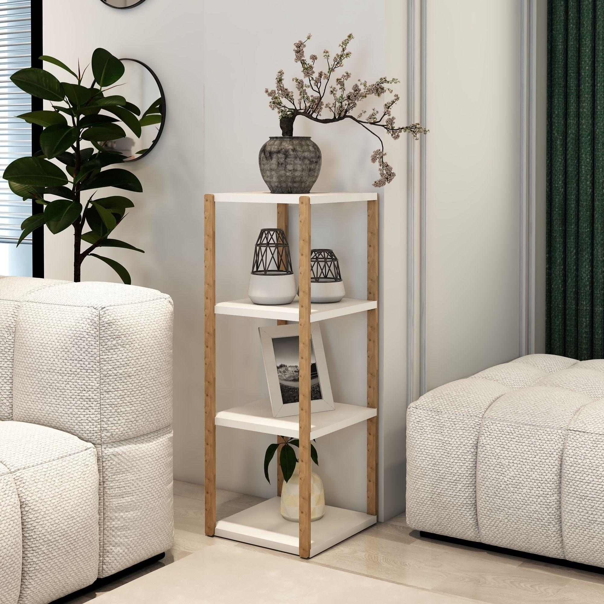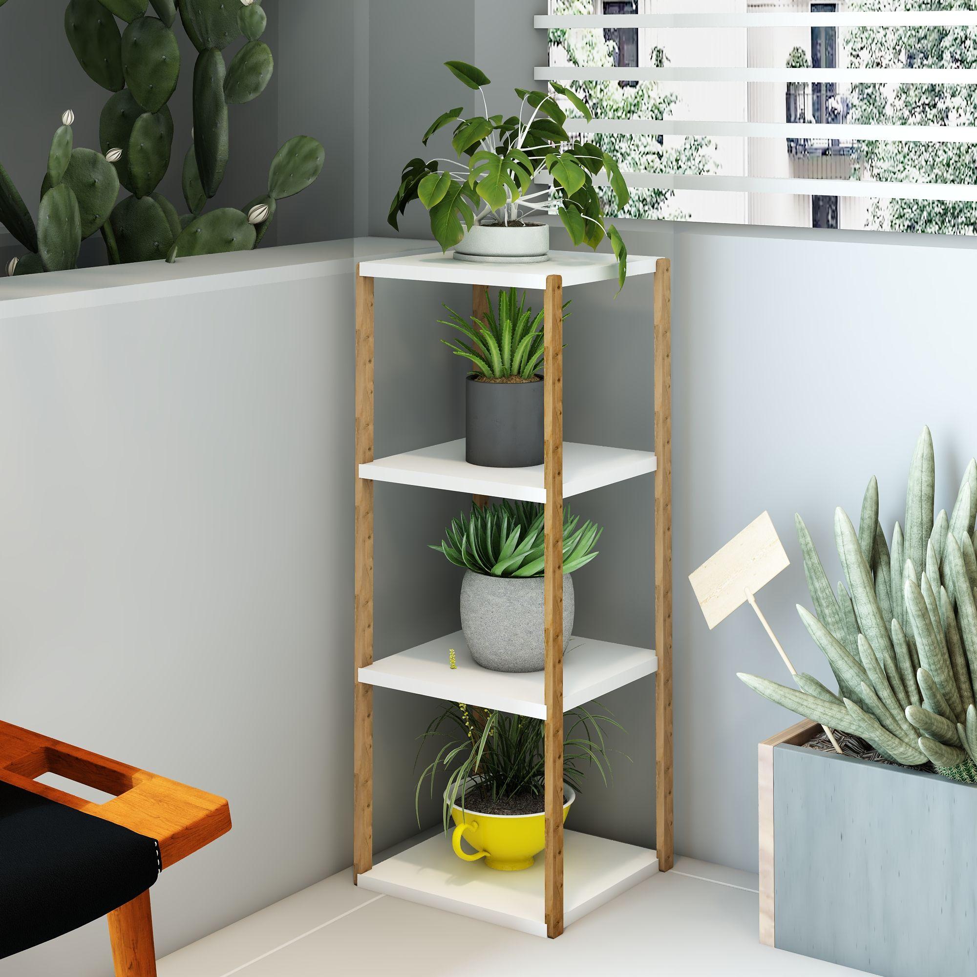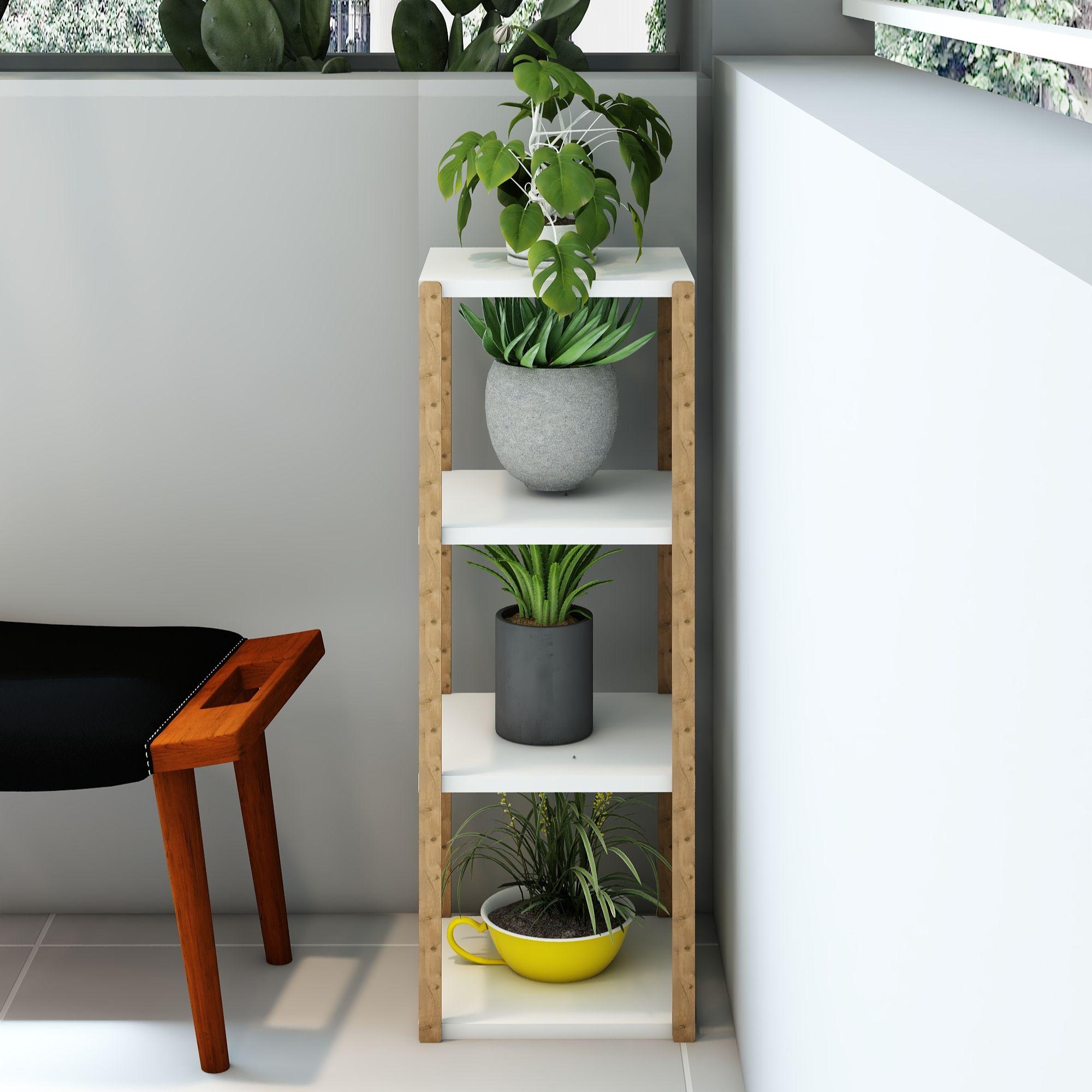Aden 4 Katlı Beyaz Ahşap Köşe Sehpası / Çok Amaçlı Dekoratif Raf, Saksı Standı, Çiçeklik / Mutfak Rafı, Baharatlık / Banyo Rafı