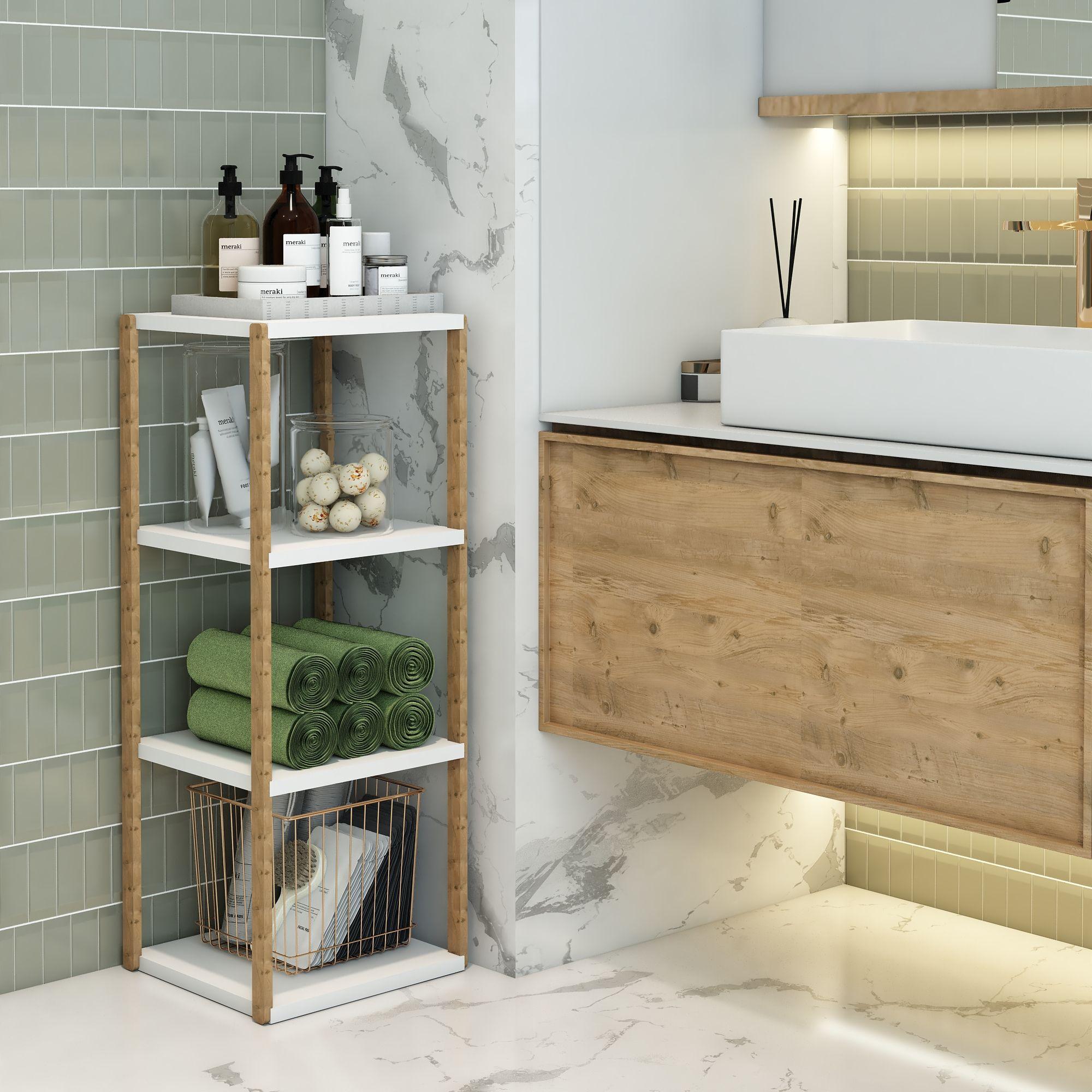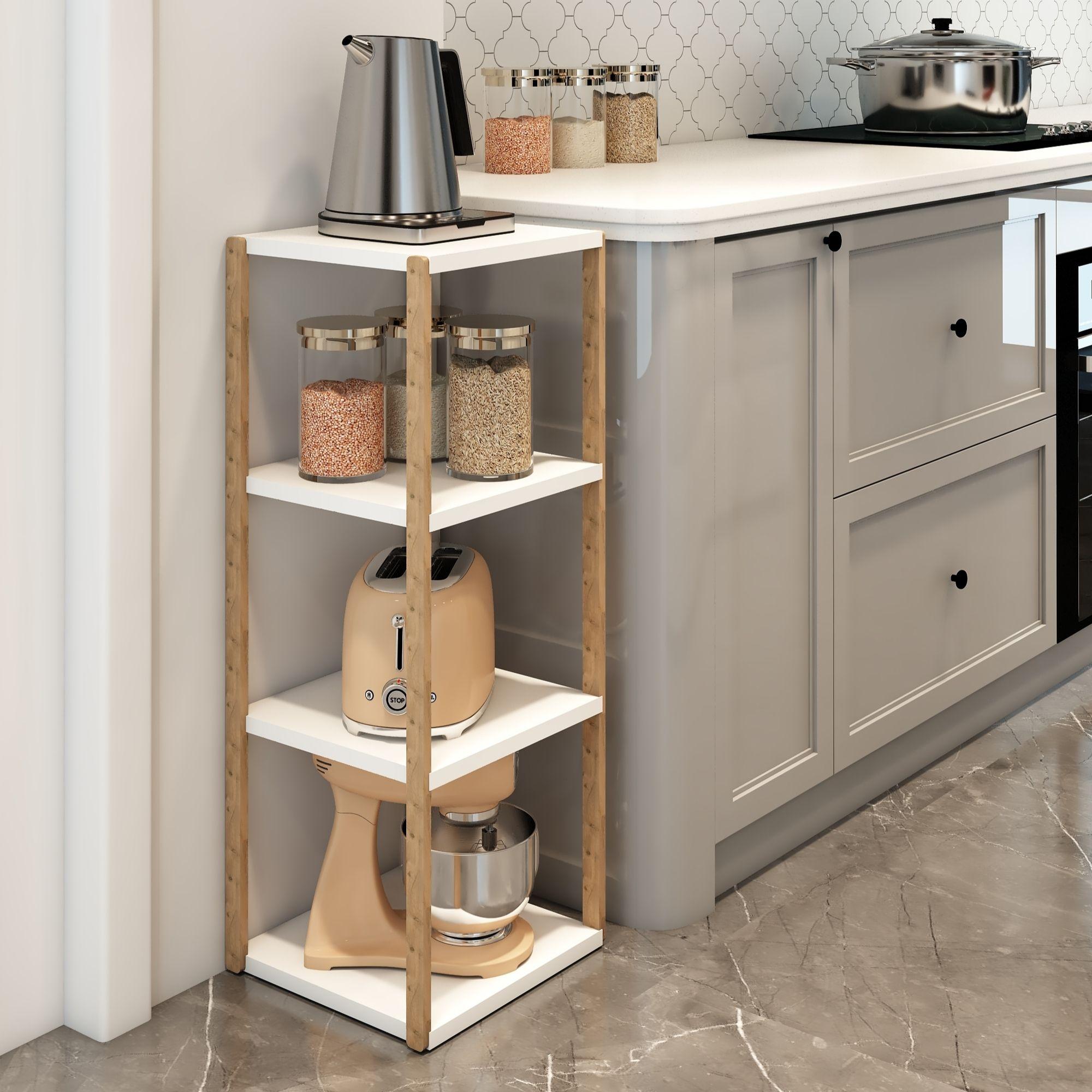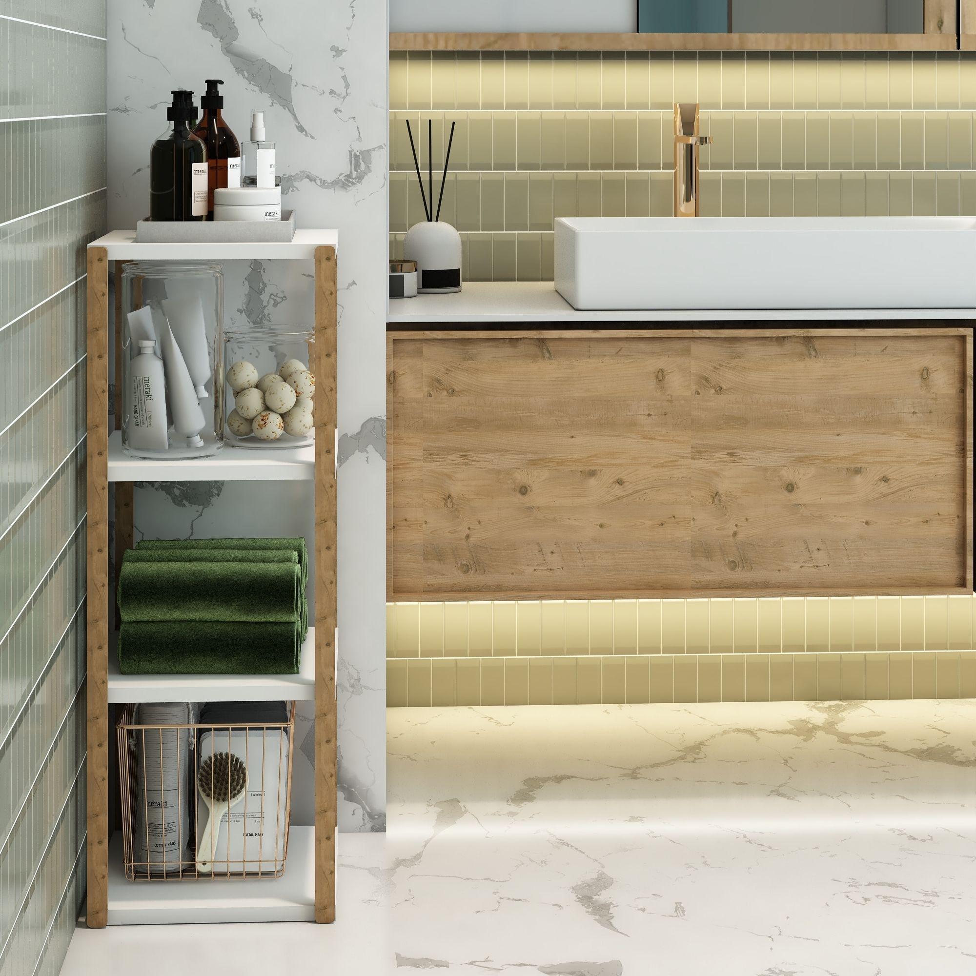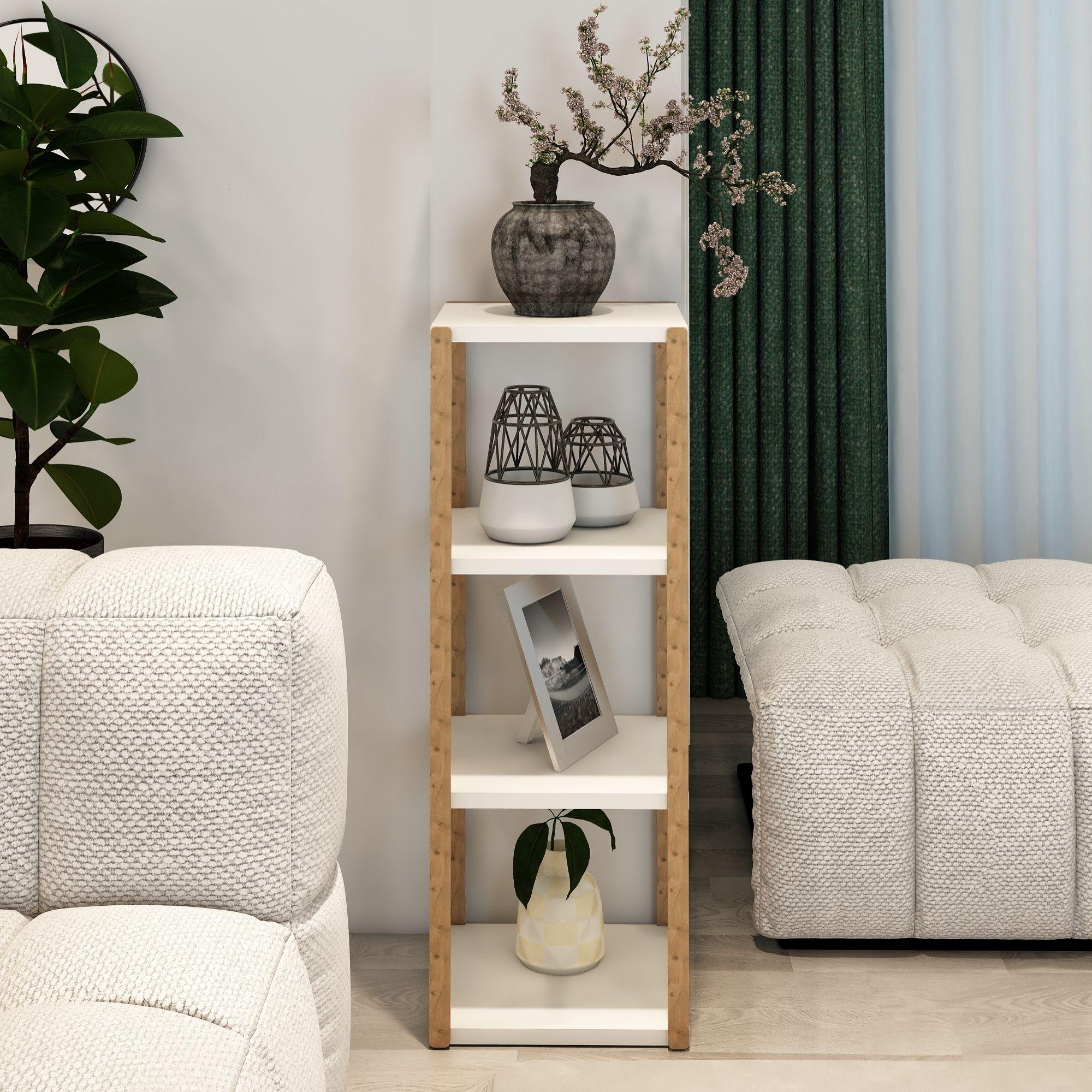 Dayanıklı gövde yapısı uzun süreli kullanım için idealdir. Doğal görünümlü ahşap ayakları ve sade Beyaz raf yüzeyleriyle her dekorasyon tarzına kolayca uyum sağlar.