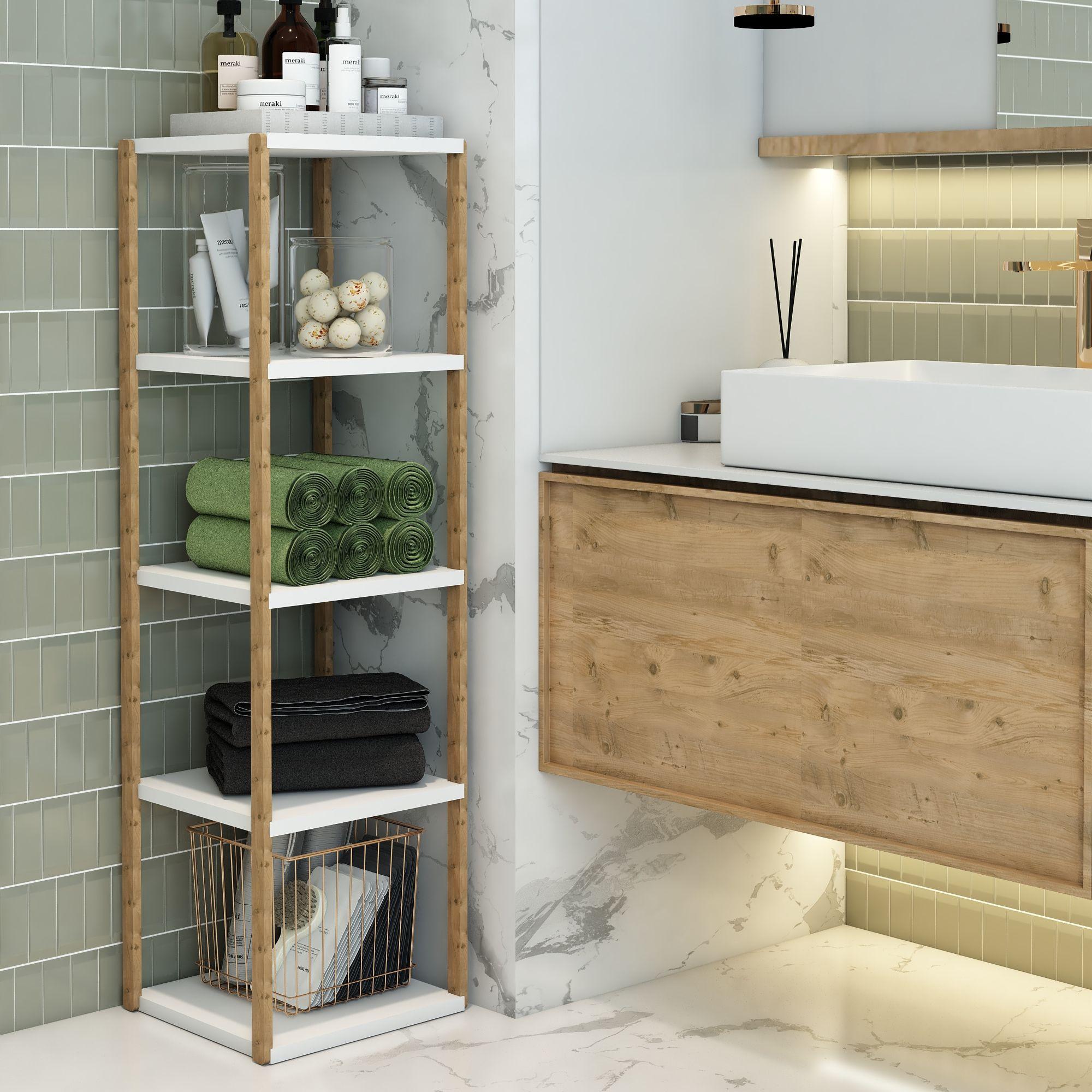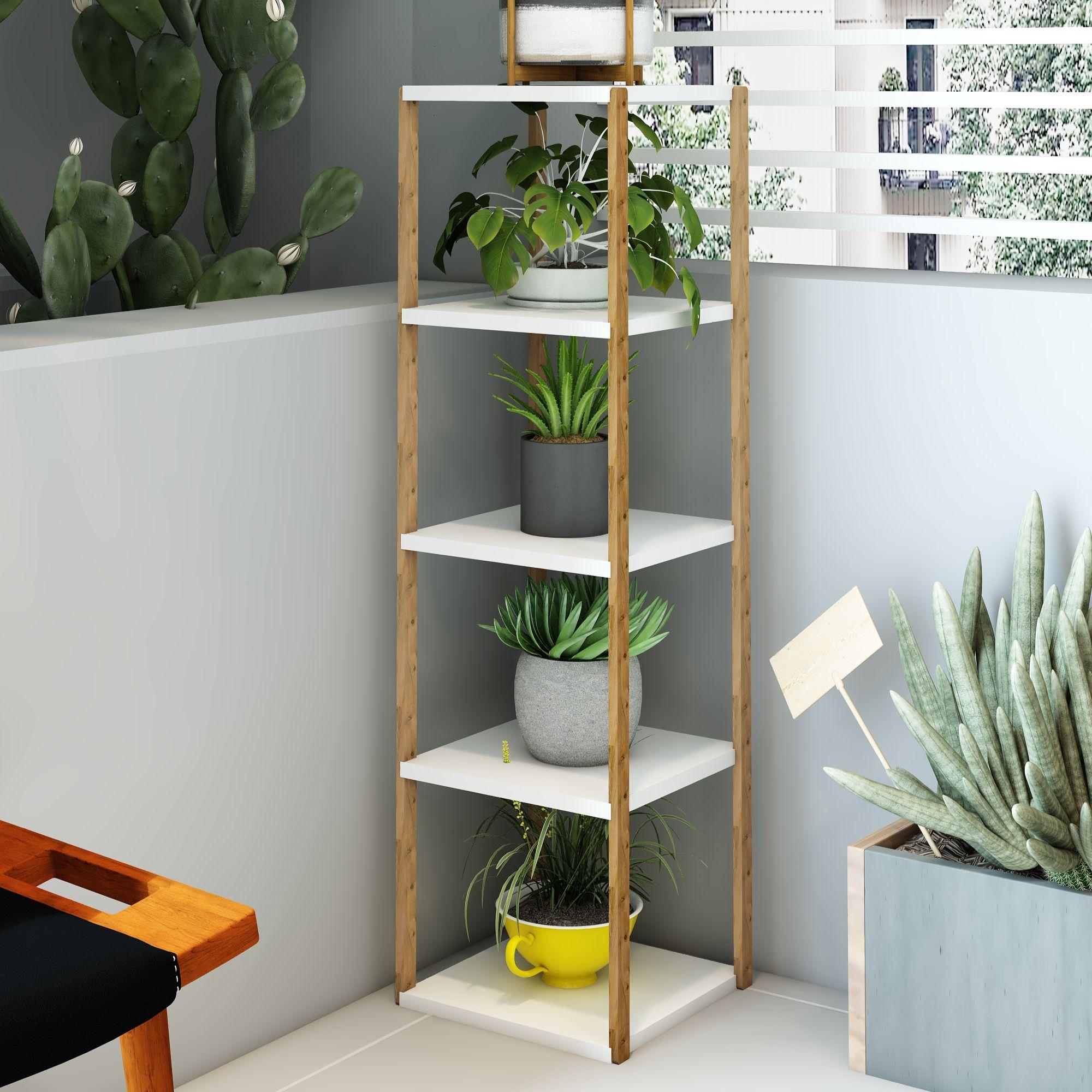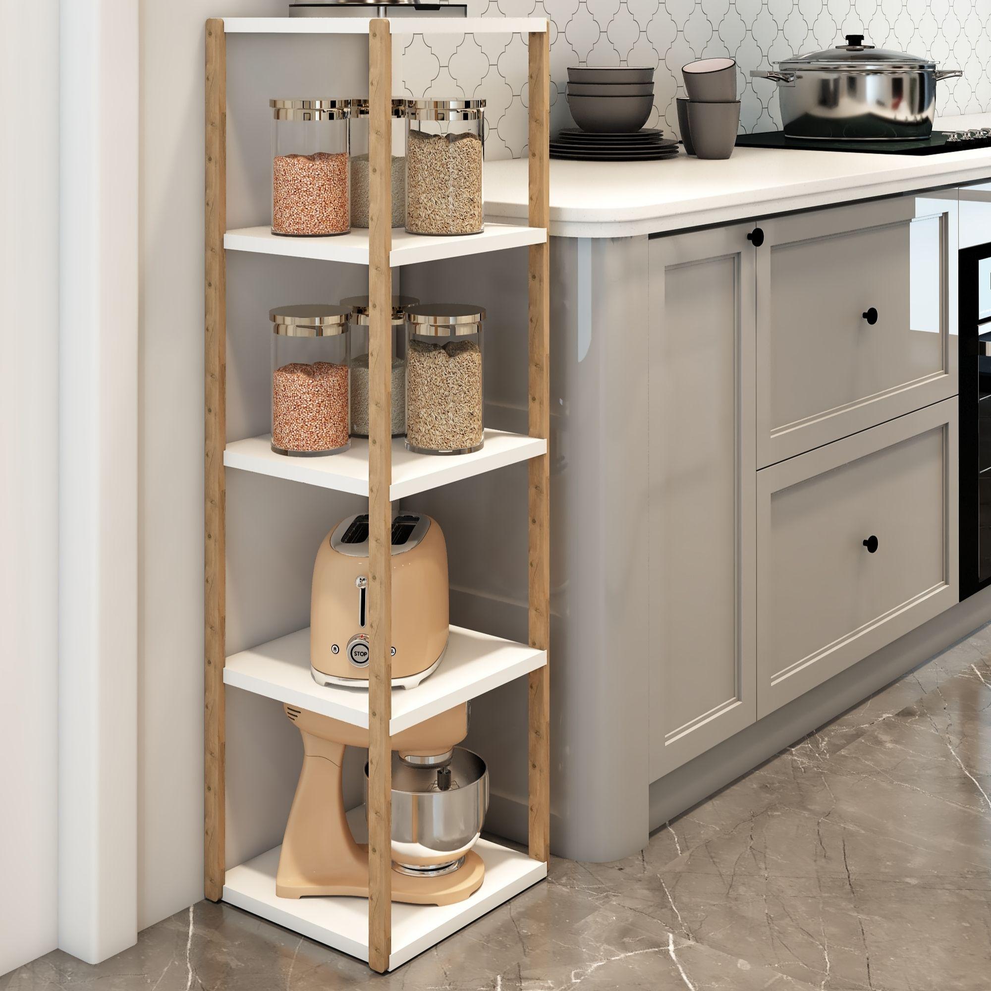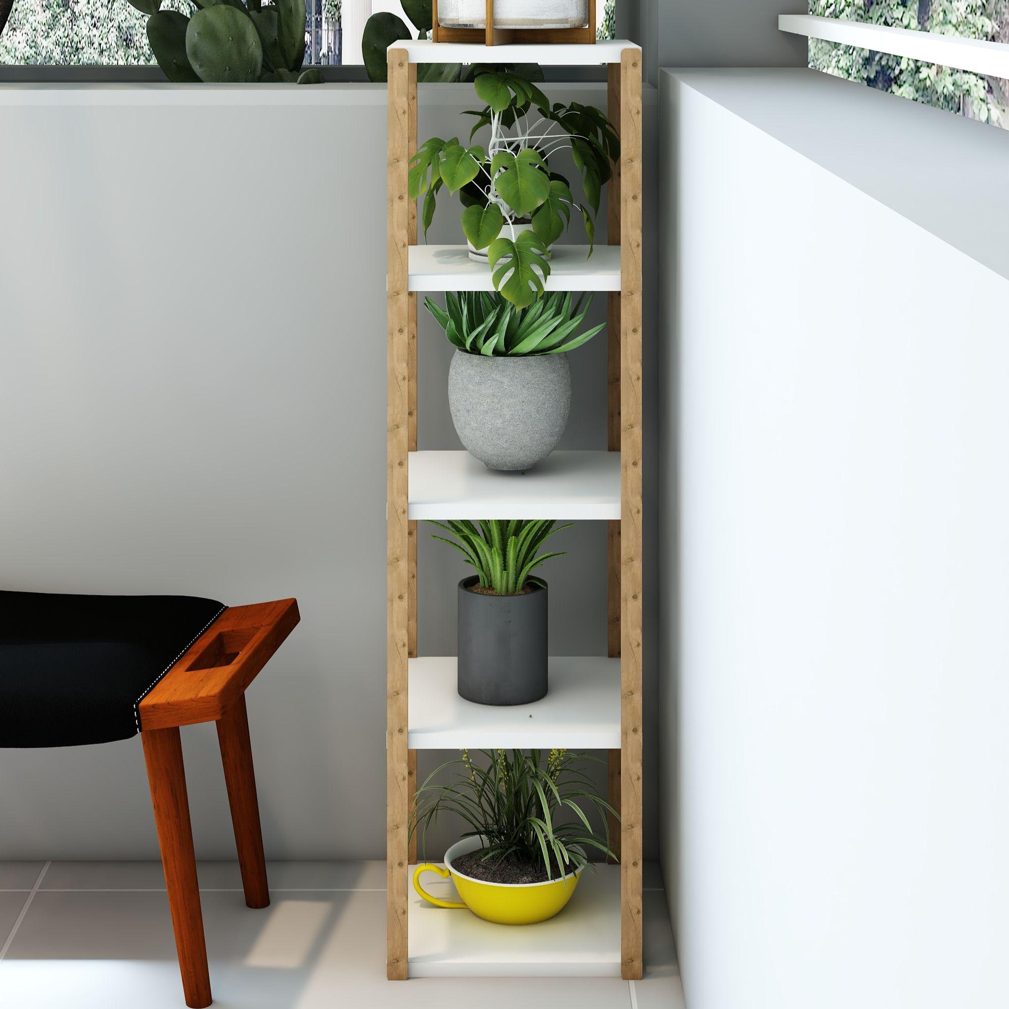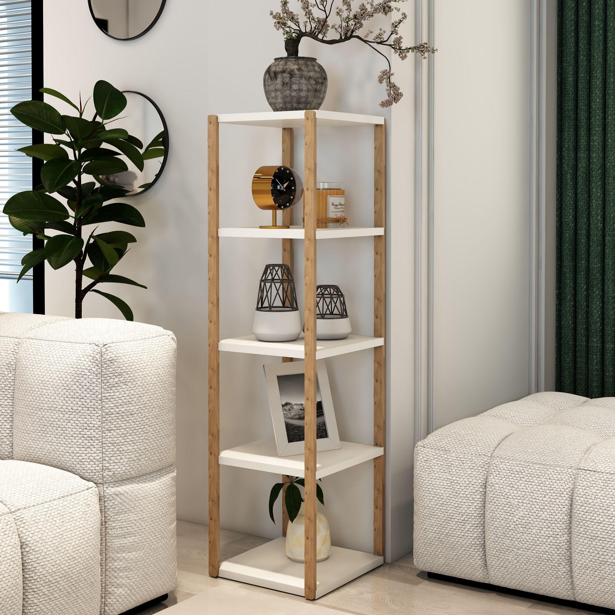 Aden 5 Katlı Beyaz Ahşap Köşe Sehpası / Çok Amaçlı Dekoratif Raf, Saksı Standı, Çiçeklik / Mutfak Rafı, Baharatlık / Banyo Rafı