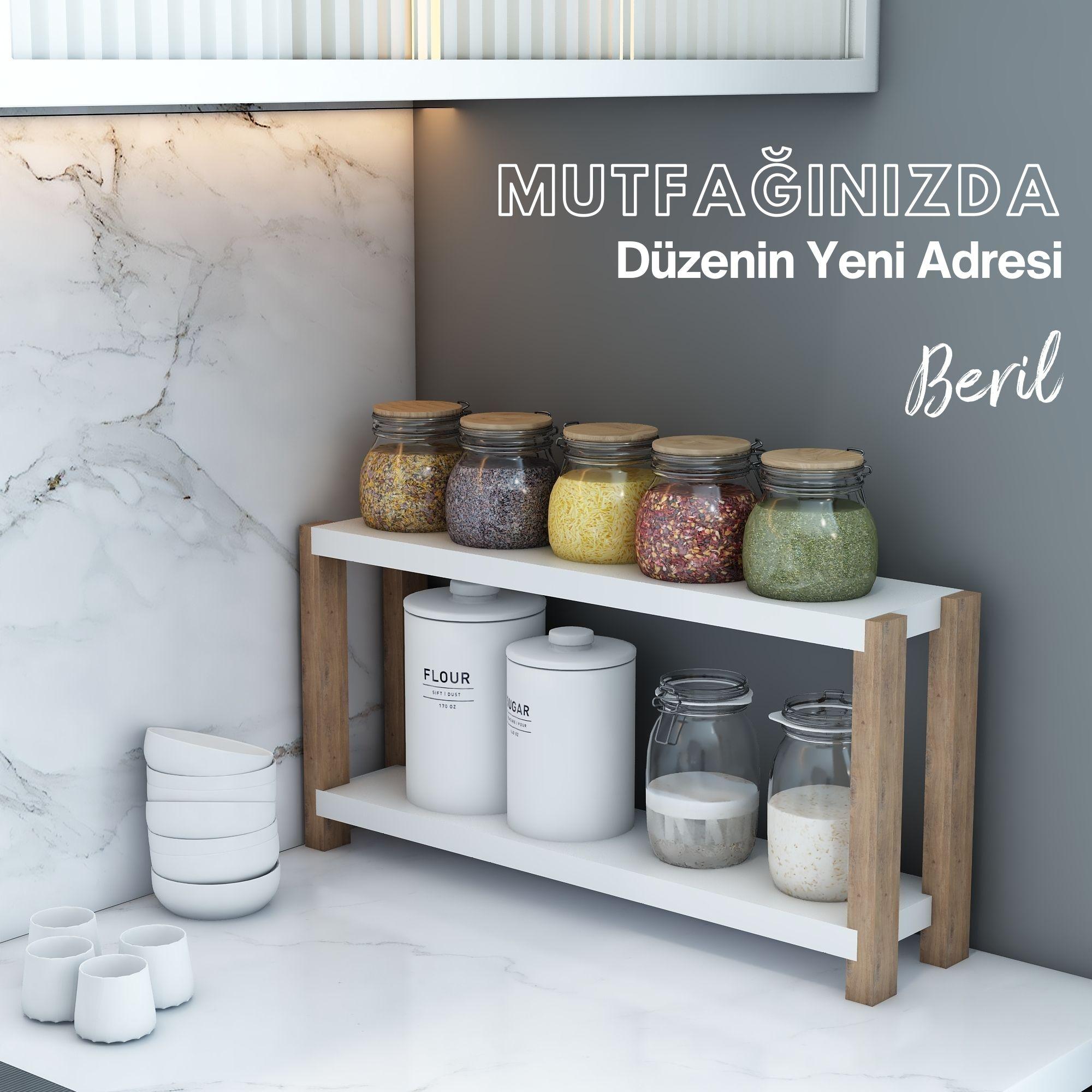 Jest Dekor Konsept Beril Çok Amaçlı 2 Katlı Ahşap Mutfak Rafı,mutfaklarınızda baharatlık olarak kullanabileceğiniz gibi, banyolarınızda havlu ve kozmetik düzenleyici olarak, ofislerinizde organizer olarak, oturma odalarınızda dekoratif raf olarak kullanılabilir.