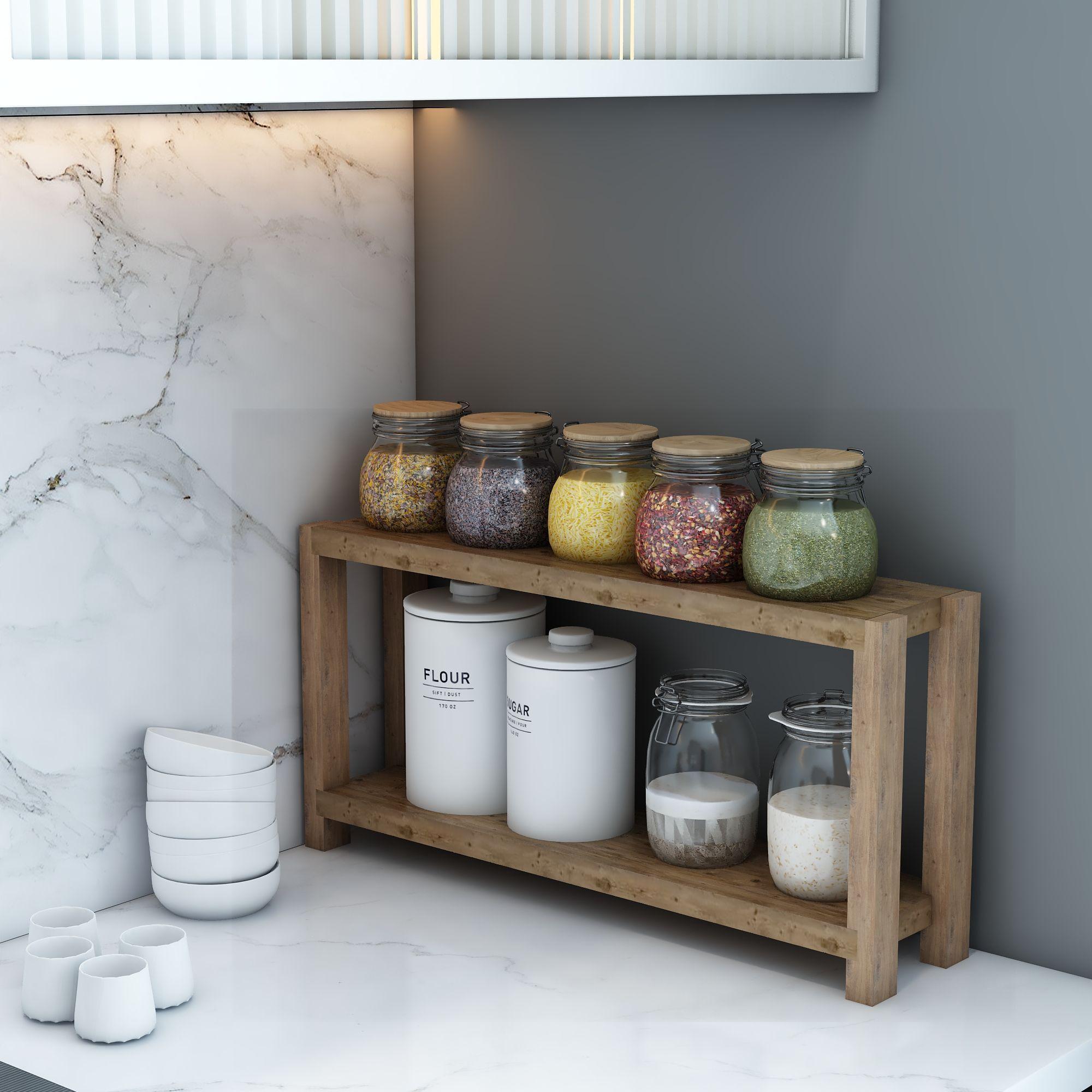 Beril 2 Katlı Ahşap Yan Sehpa / Mutfak Rafı, Baharatlık / Banyo Rafı / Çok Amaçlı Dekoratif Raf, Organizer / Demonte ve Kolay Montaj