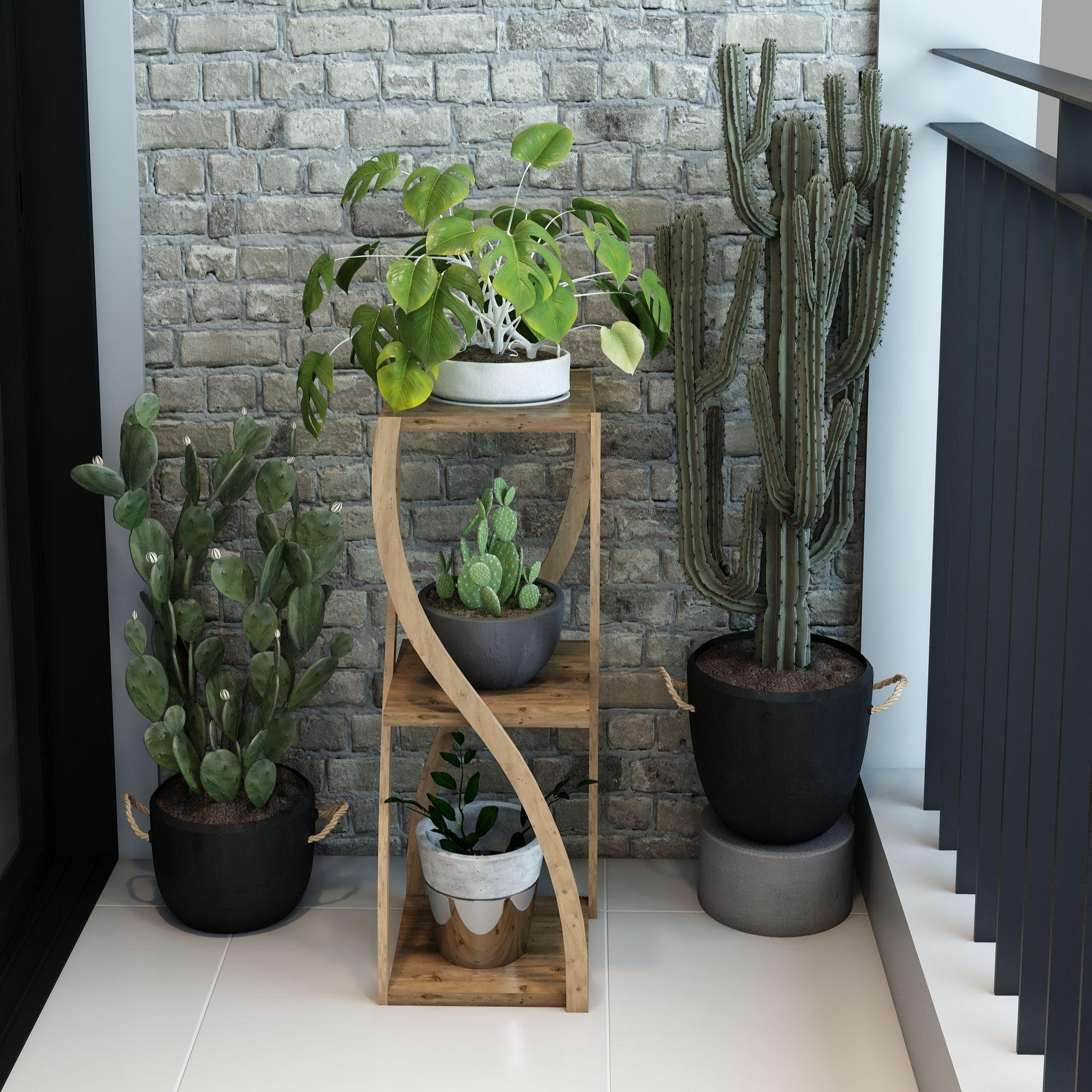 Bukle Atlantik Çam 3 Katlı Ahşap Sehpa / Dekoratif & Çok Amaçlı Kullanım