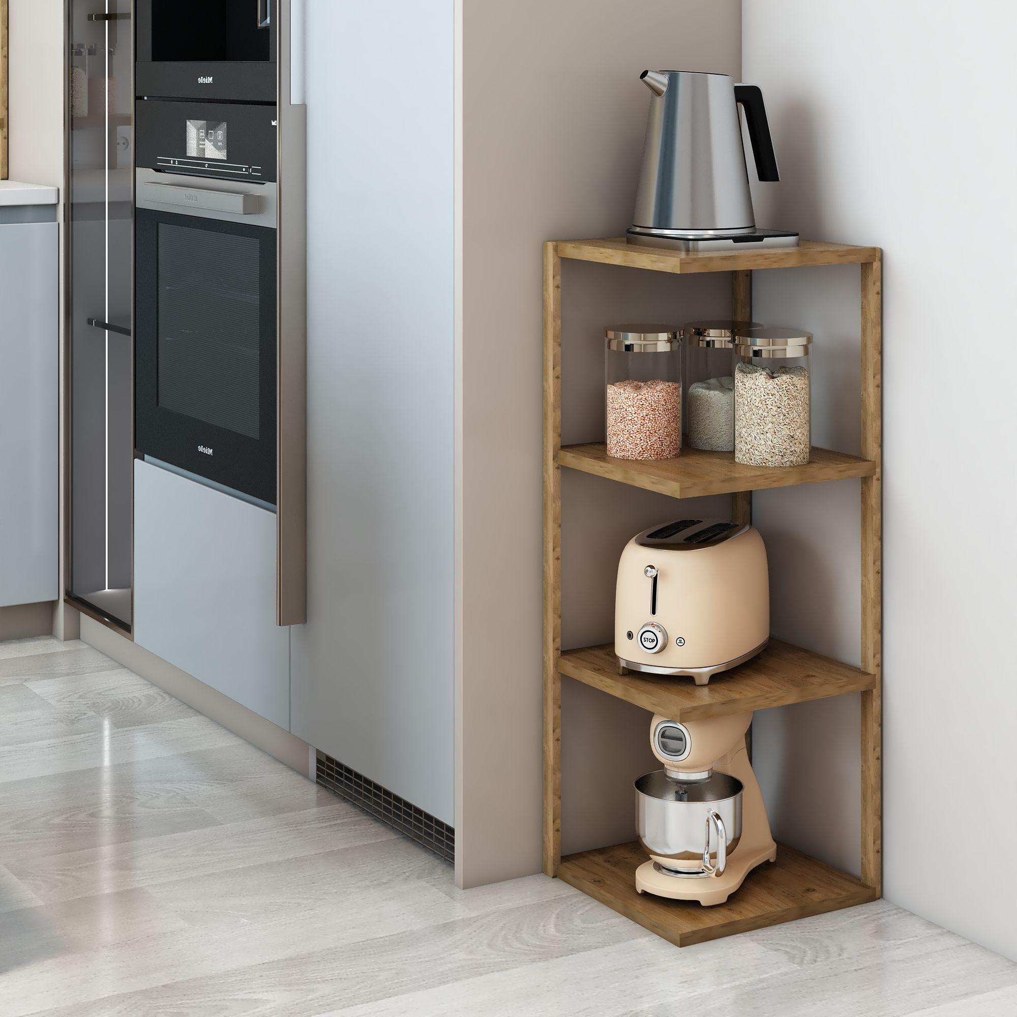 Mutfak: Kavanozlar, makineler veya baharatlıklar için pratik depolama