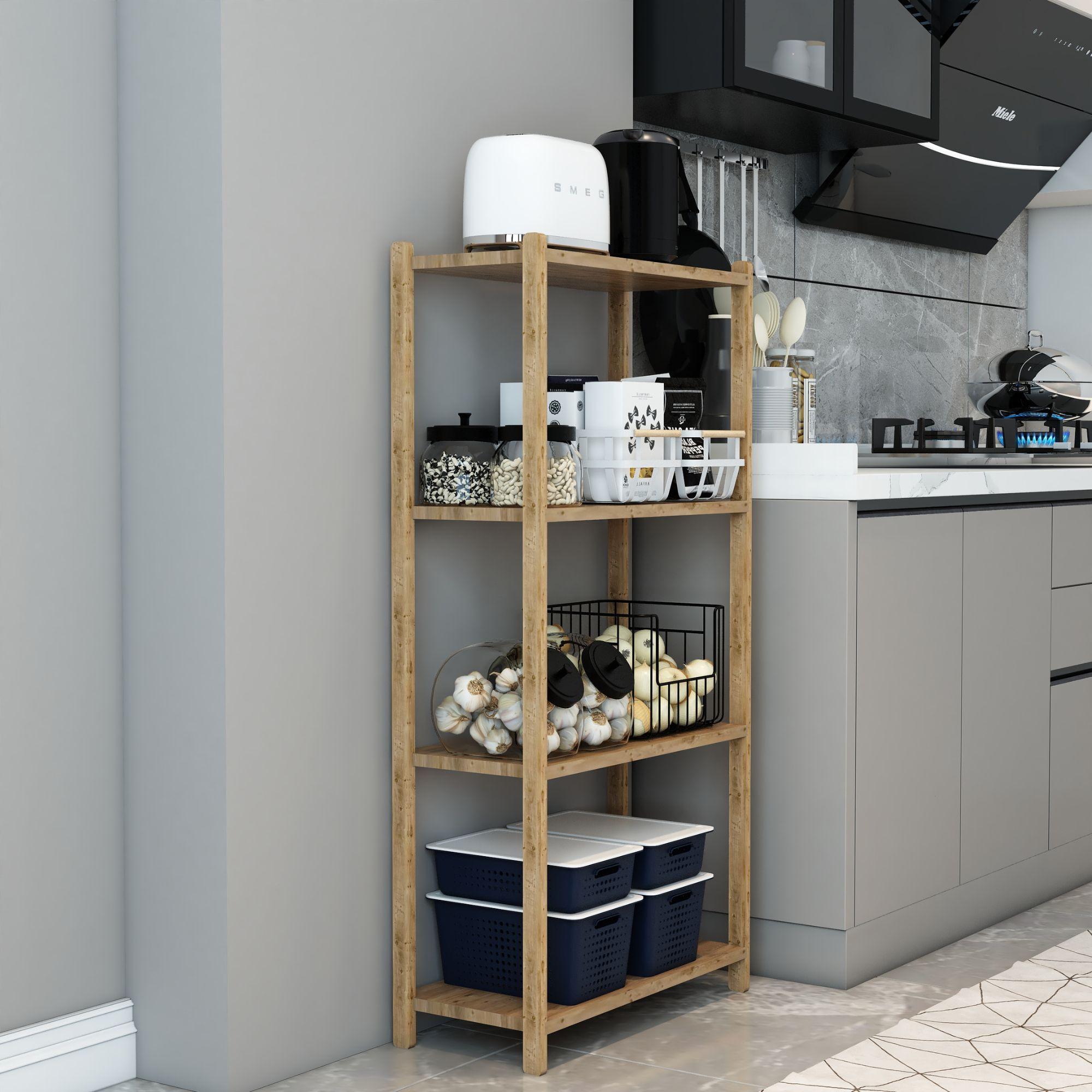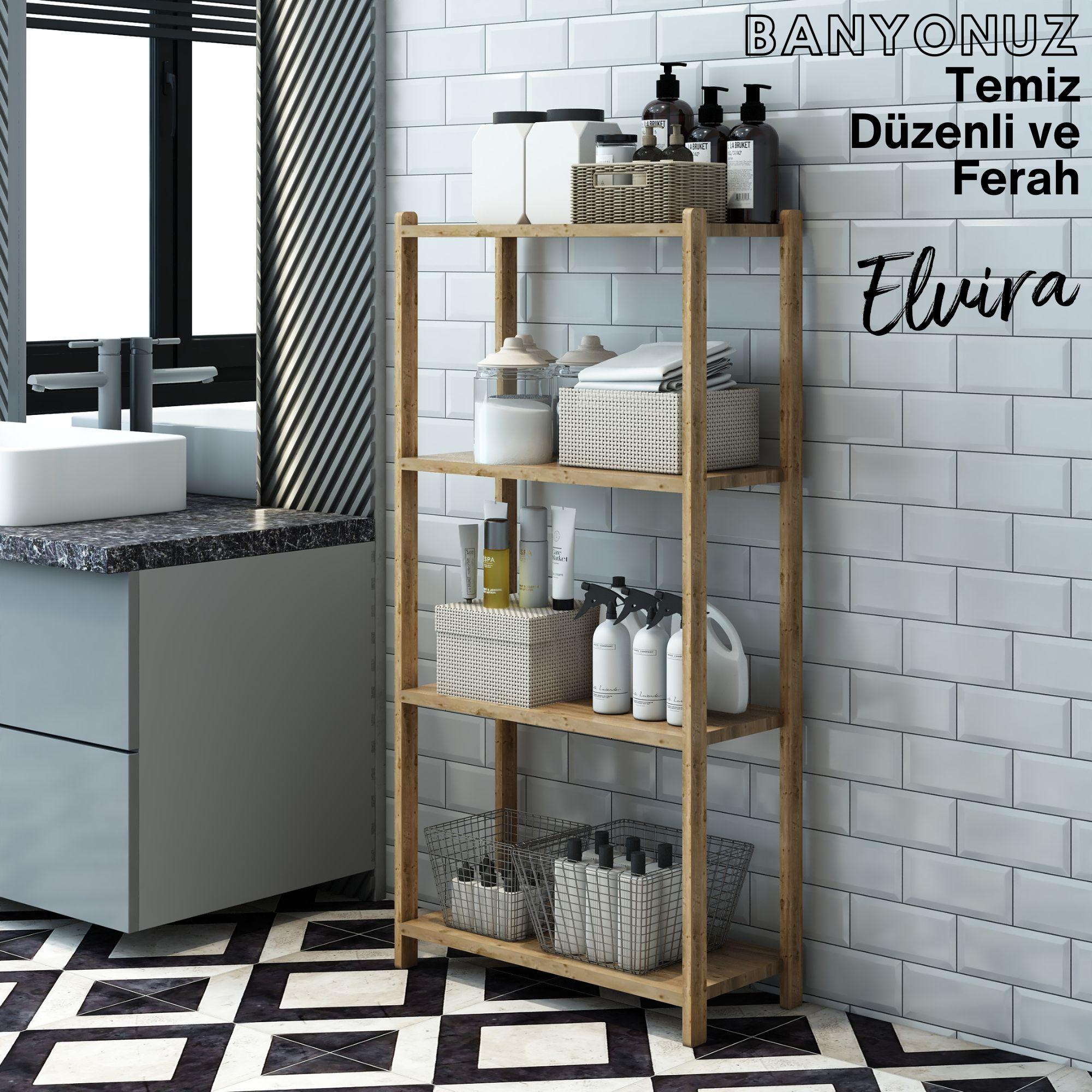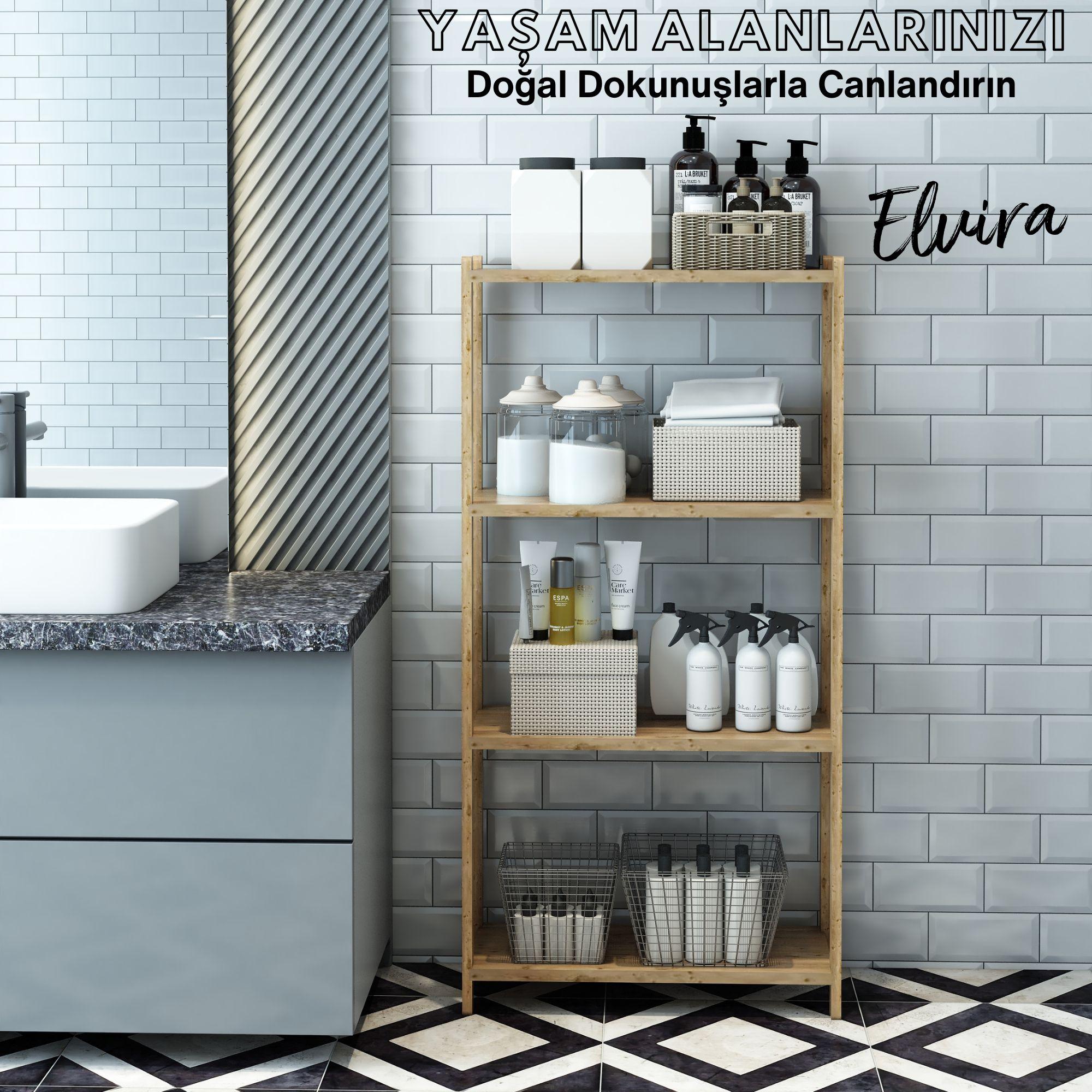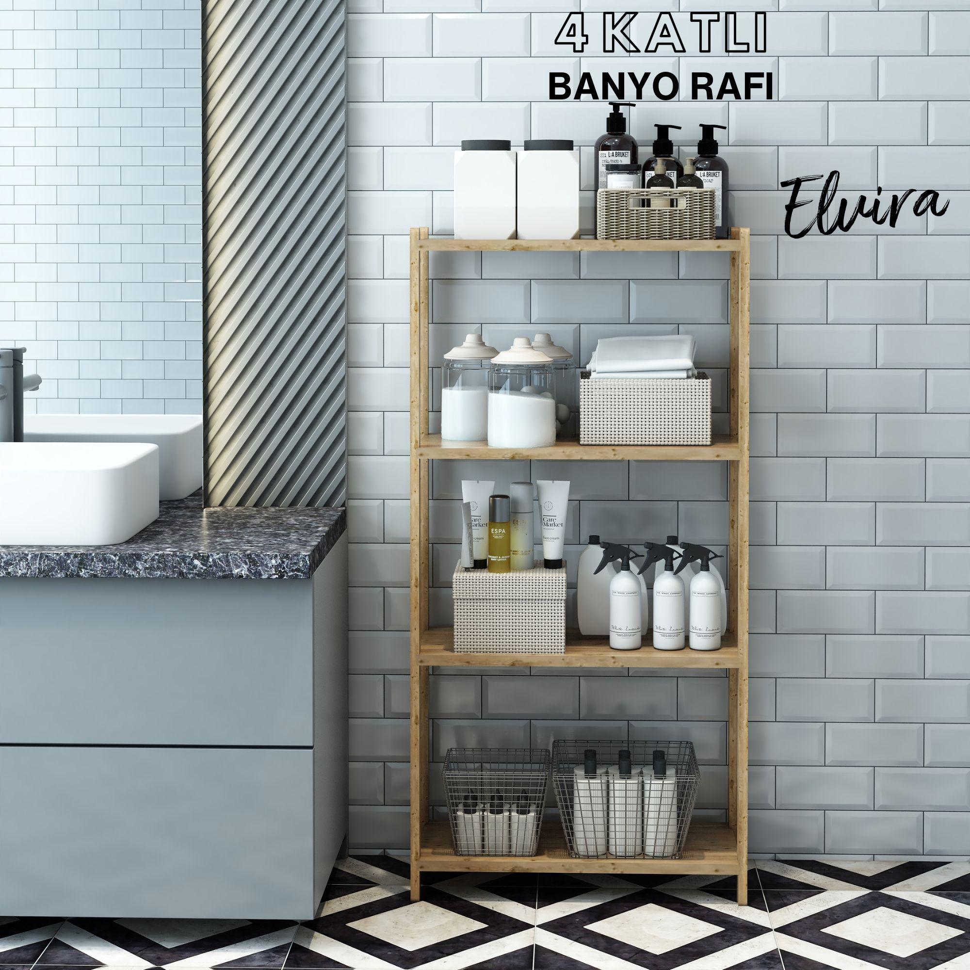 Elvira Ahşap 4 Katlı Banyo Rafı / Dekoratif Raf / Çok Amaçlı Kullanım / Demonte ve Kolay Montaj / Modern, Şık ve Ergonomik Tasarım