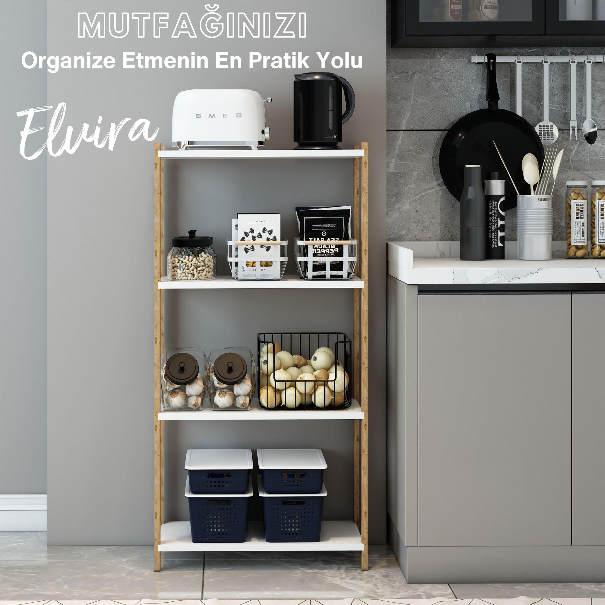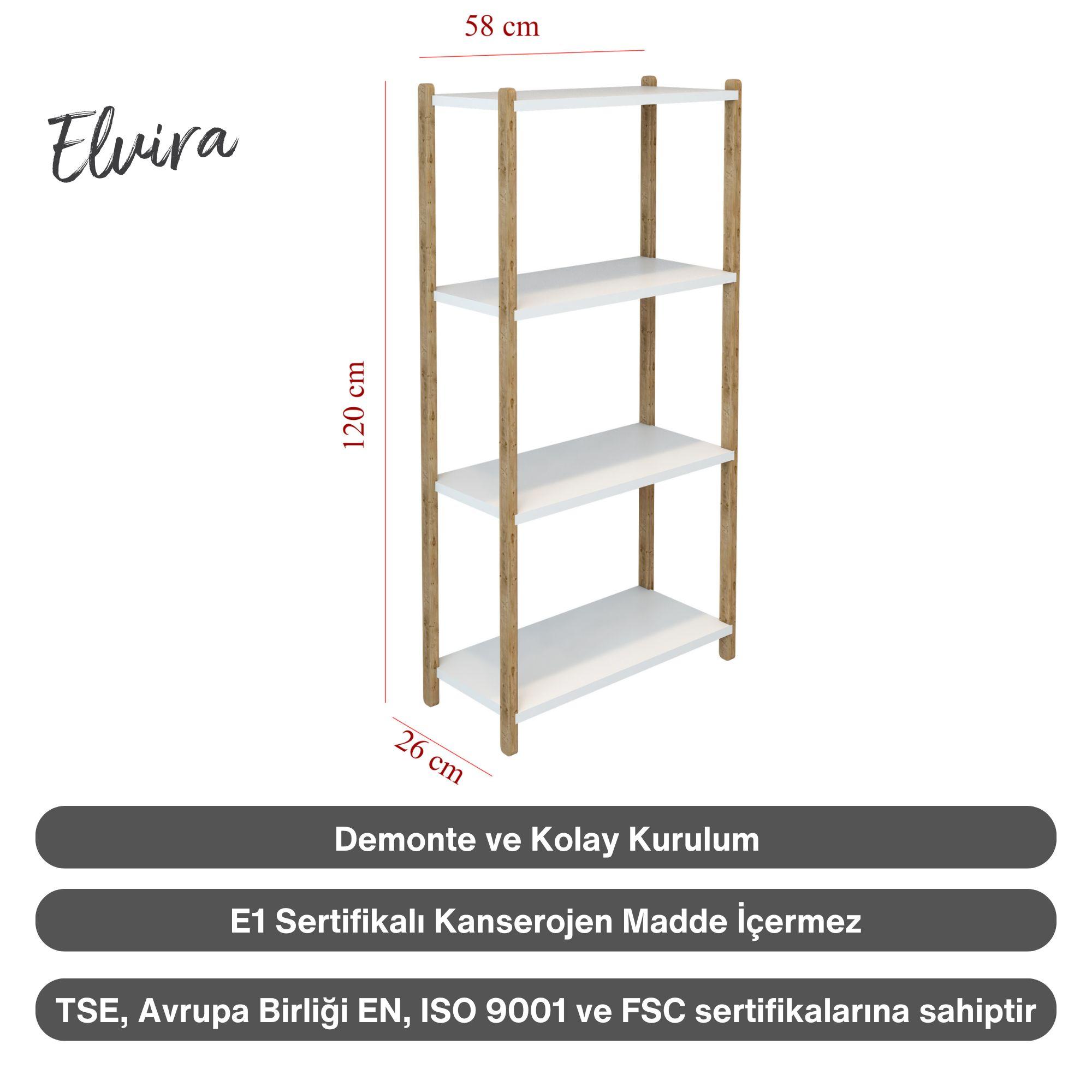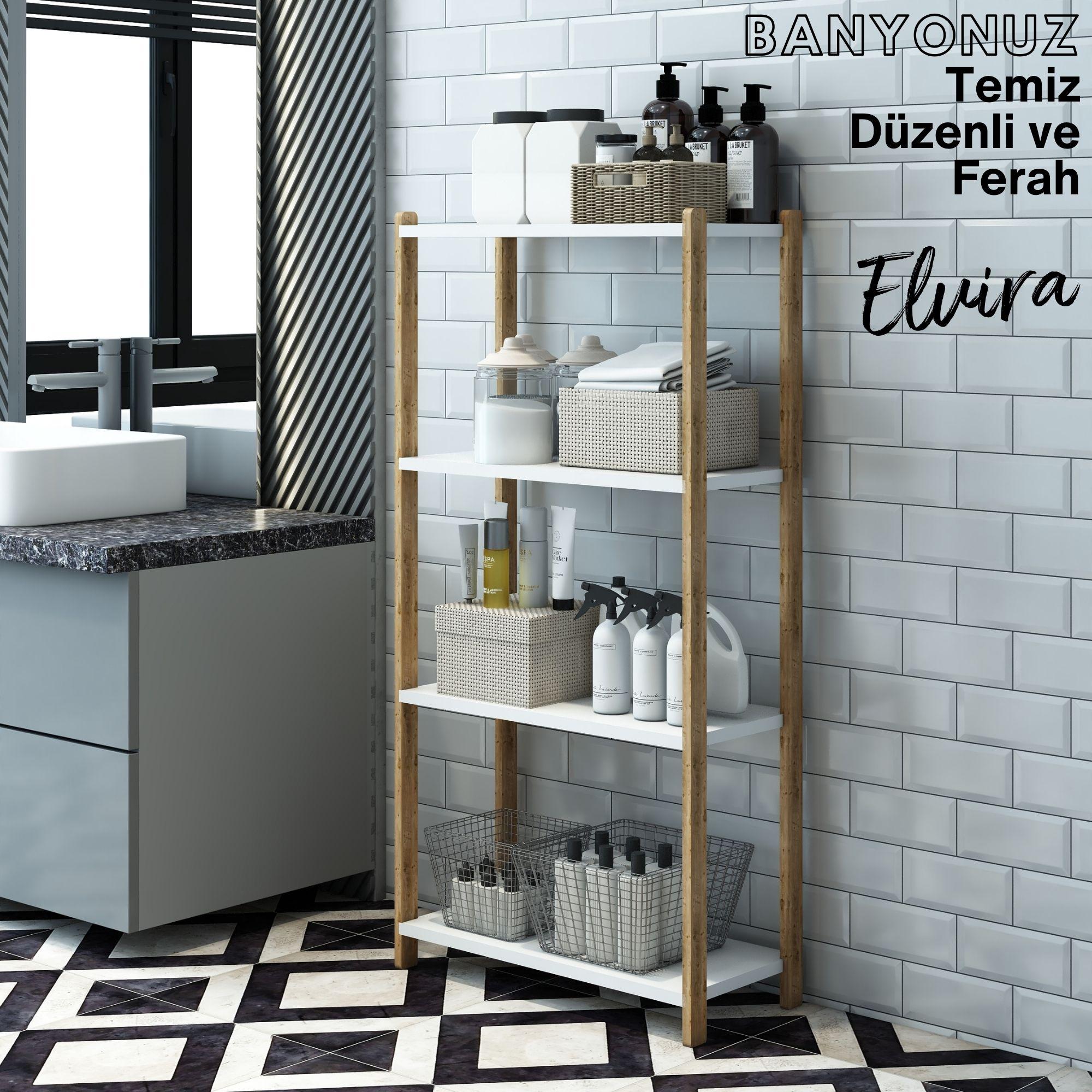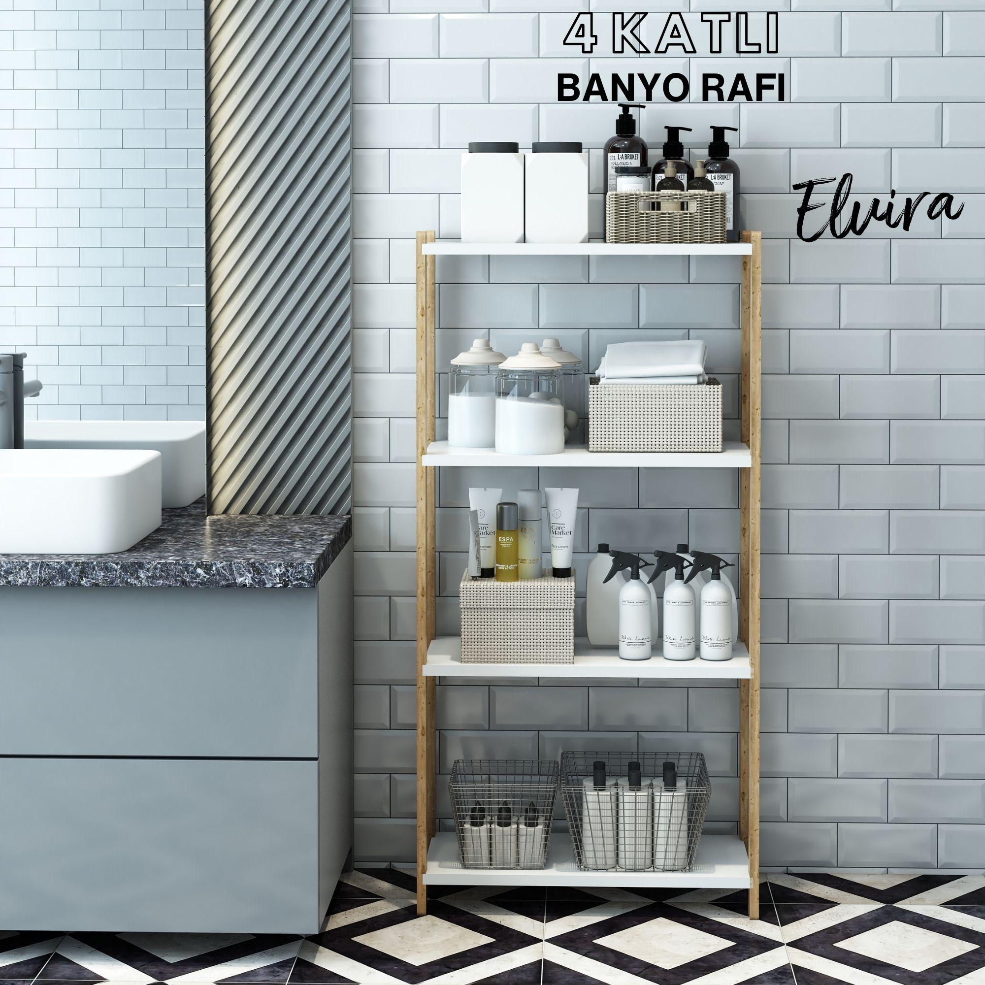 Elvira Ahşap 4 Katlı Banyo Rafı / Dekoratif Raf / Çok Amaçlı Kullanım / Demonte ve Kolay Montaj / Modern, Şık ve Ergonomik Tasarım