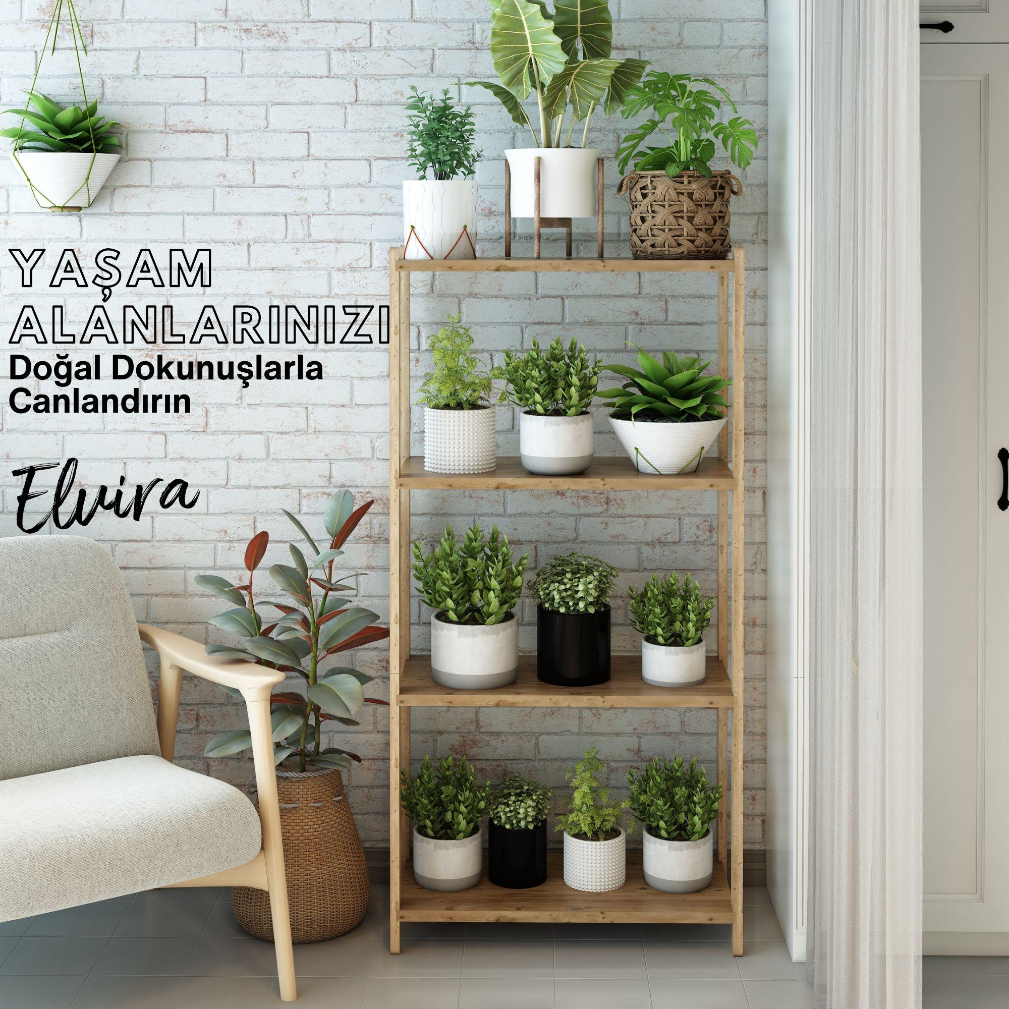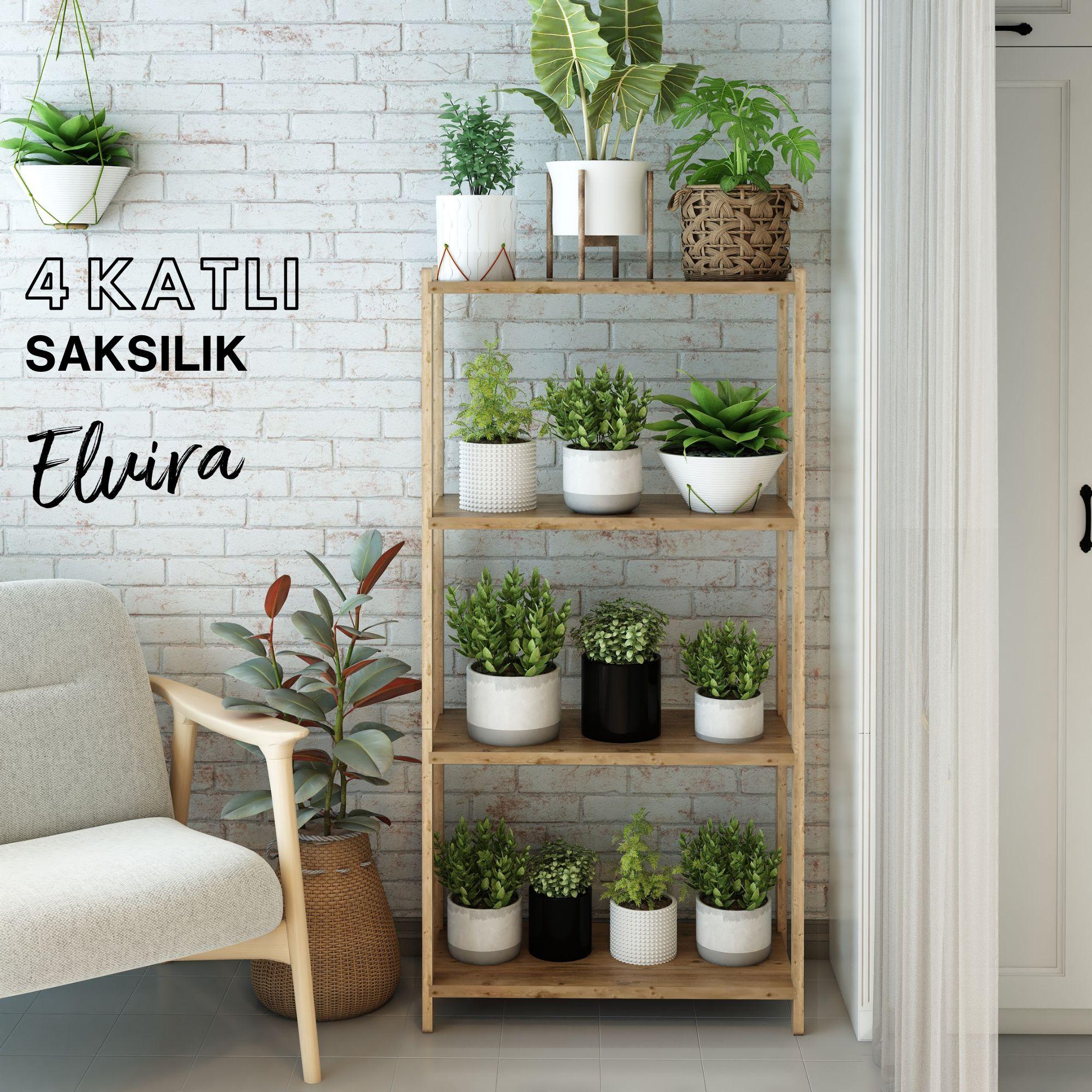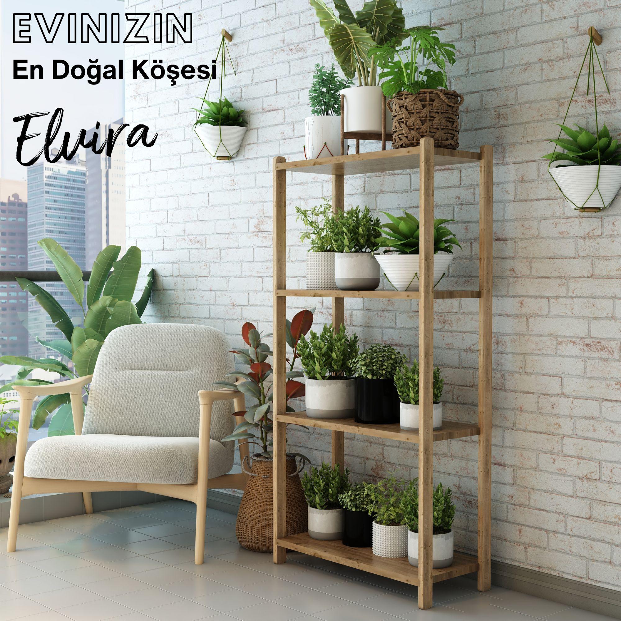 Elvira Ahşap 4 Katlı Çiçeklik, Saksılık, Çiçek Standı / Dekoratif Raf / Çok Amaçlı Kullanım / Demonte ve Kolay Montaj / Modern, Şık ve Ergonomik Tasarım