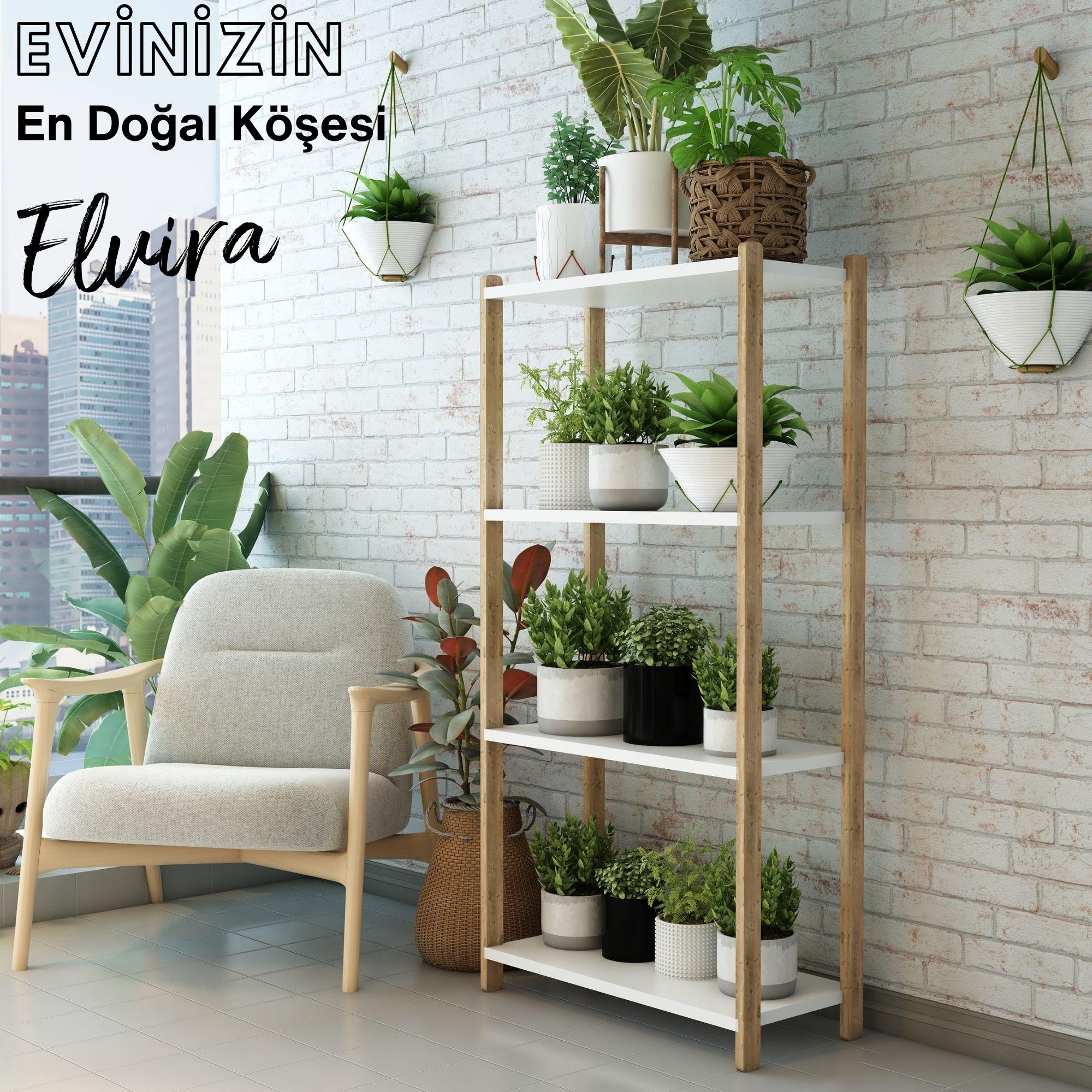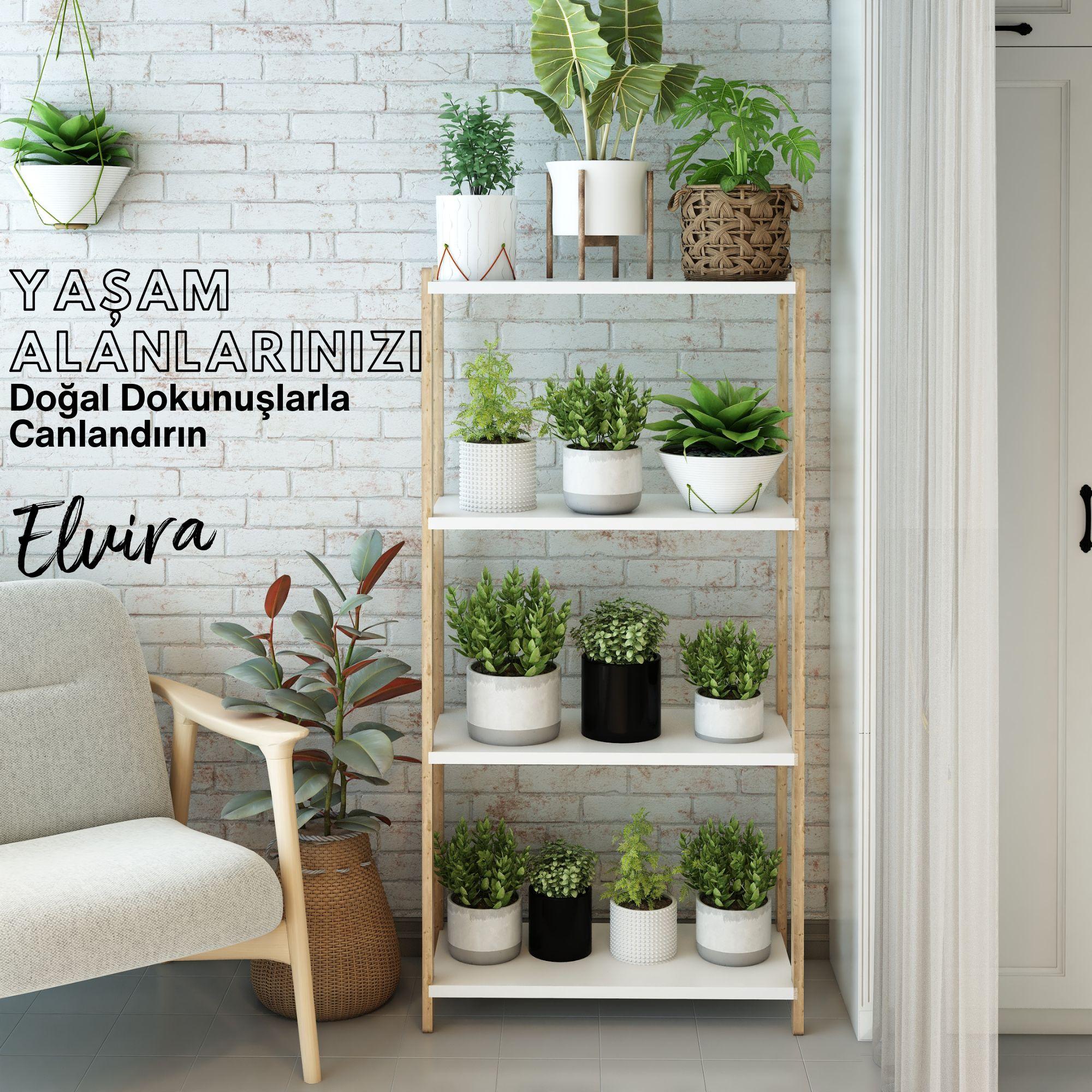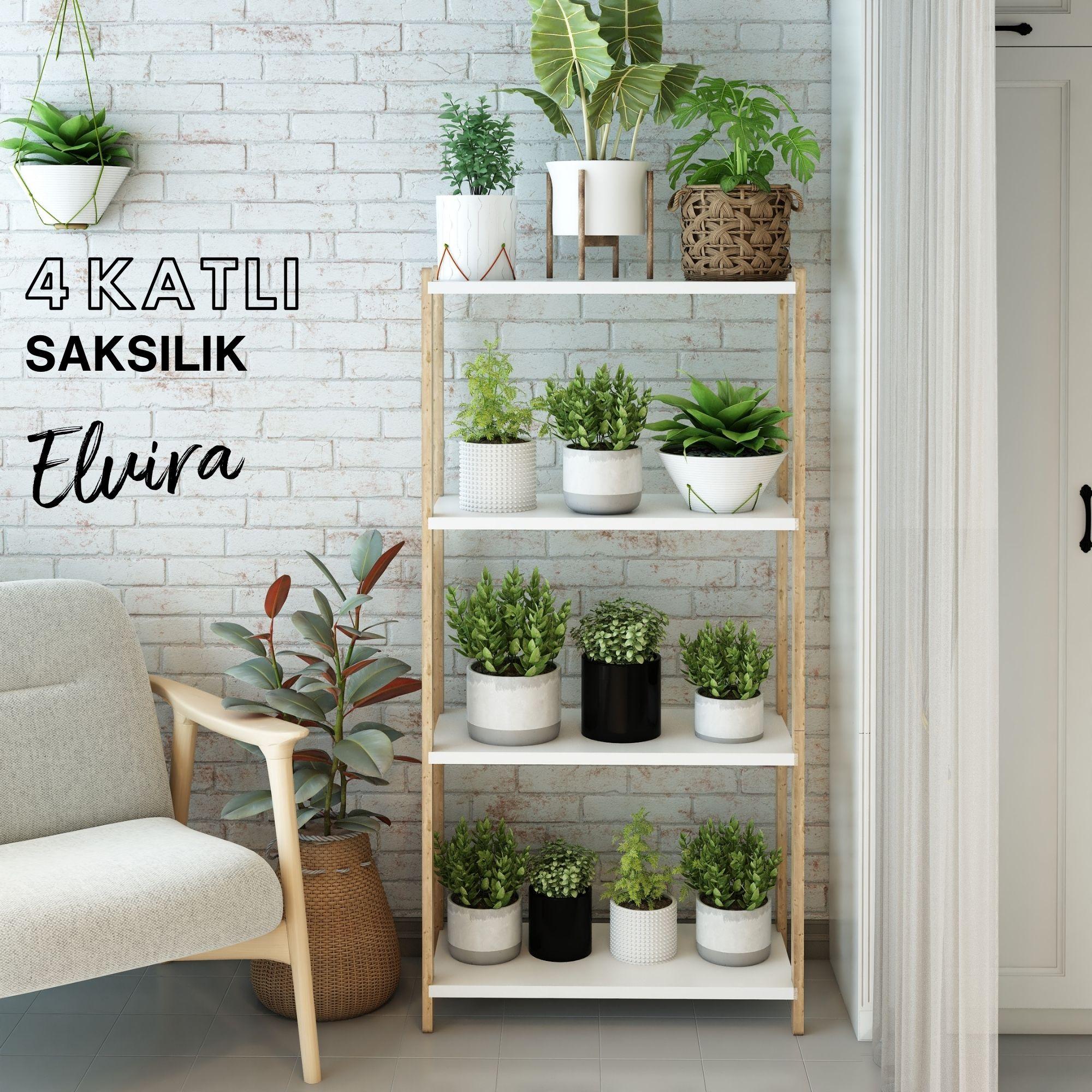 Elvira Ahşap 4 Katlı Çiçeklik, Saksılık, Çiçek Standı / Dekoratif Raf / Çok Amaçlı Kullanım / Demonte ve Kolay Montaj / Modern, Şık ve Ergonomik Tasarım