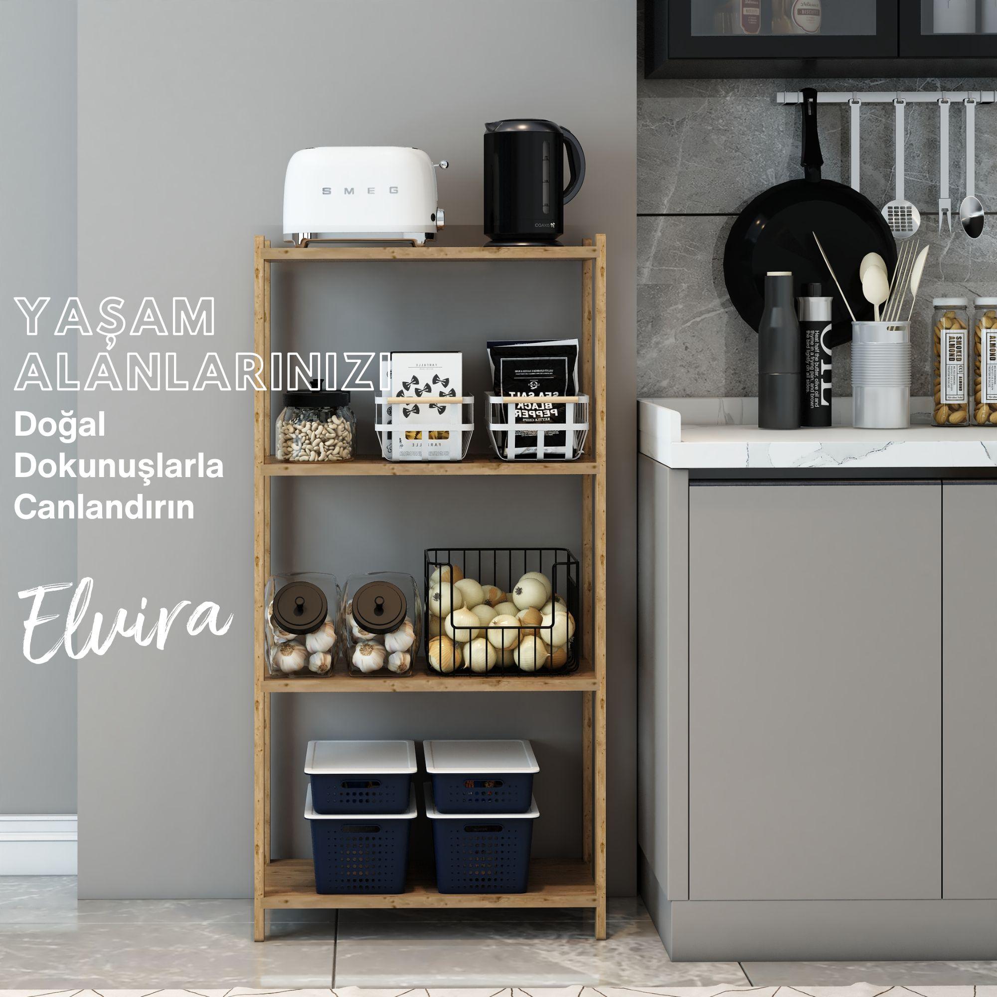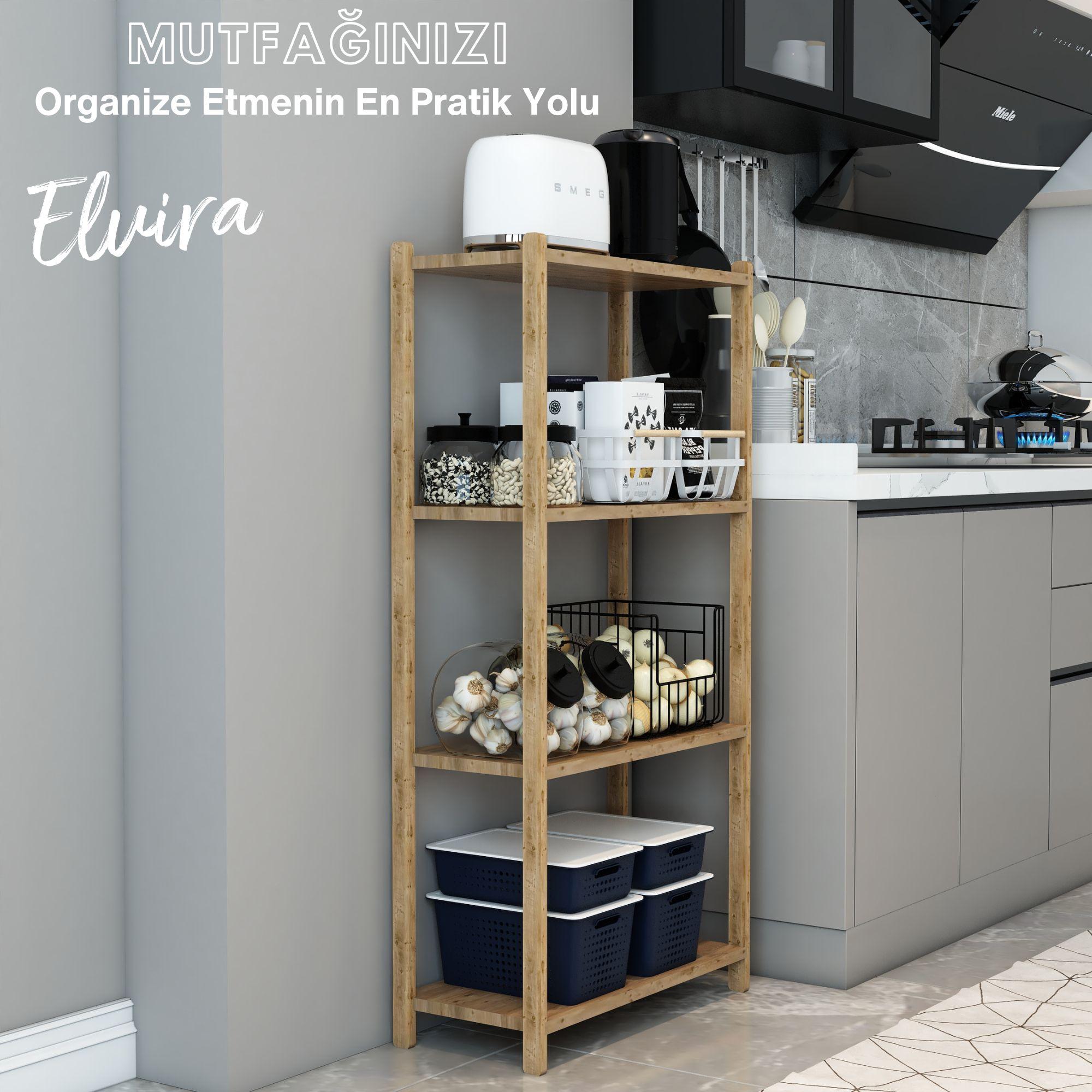 Elvira Ahşap 4 Katlı Mutfak Rafı / Baharatlık / Dekoratif Raf / Çok Amaçlı Kullanım / Demonte ve Kolay Montaj / Modern, Şık ve Ergonomik Tasarım