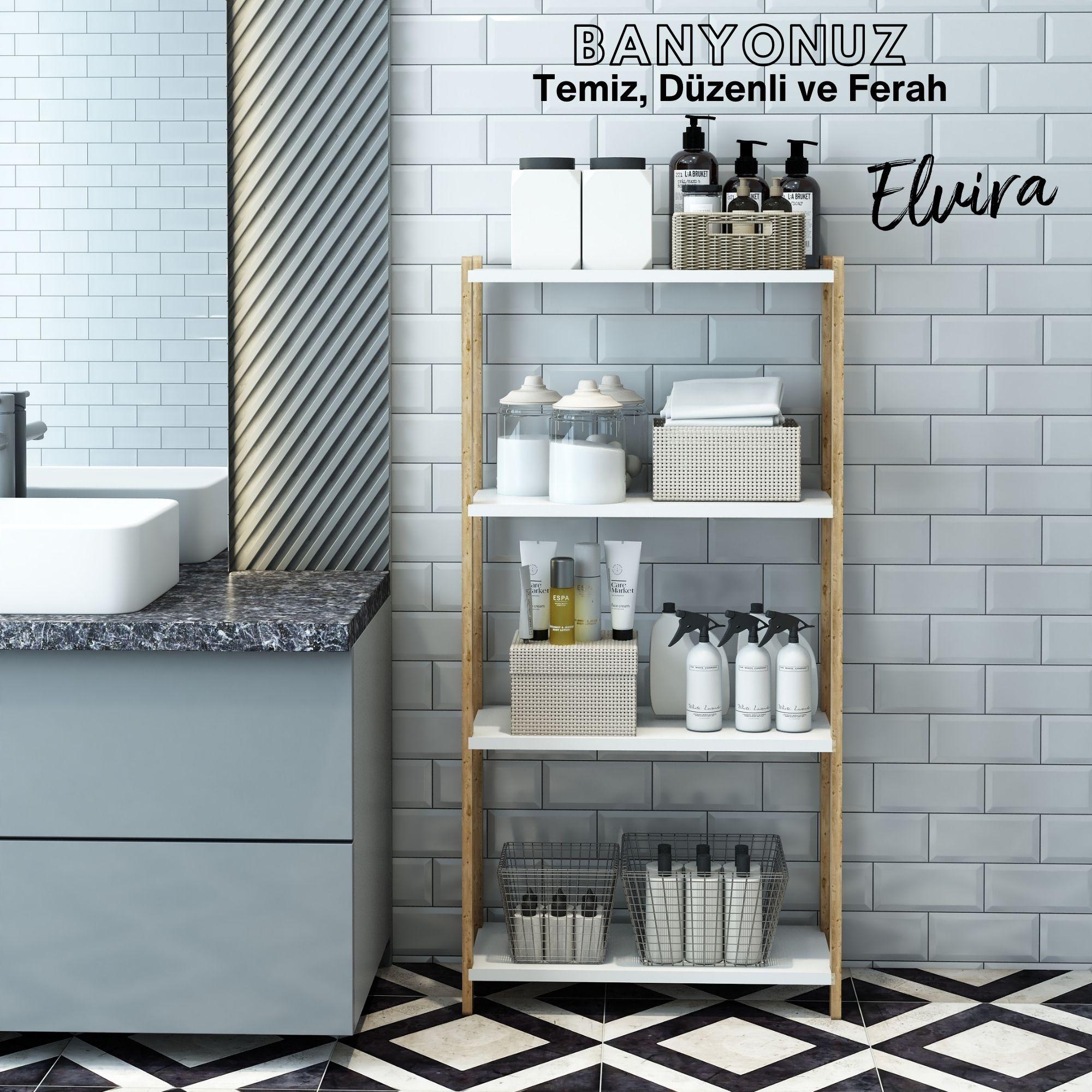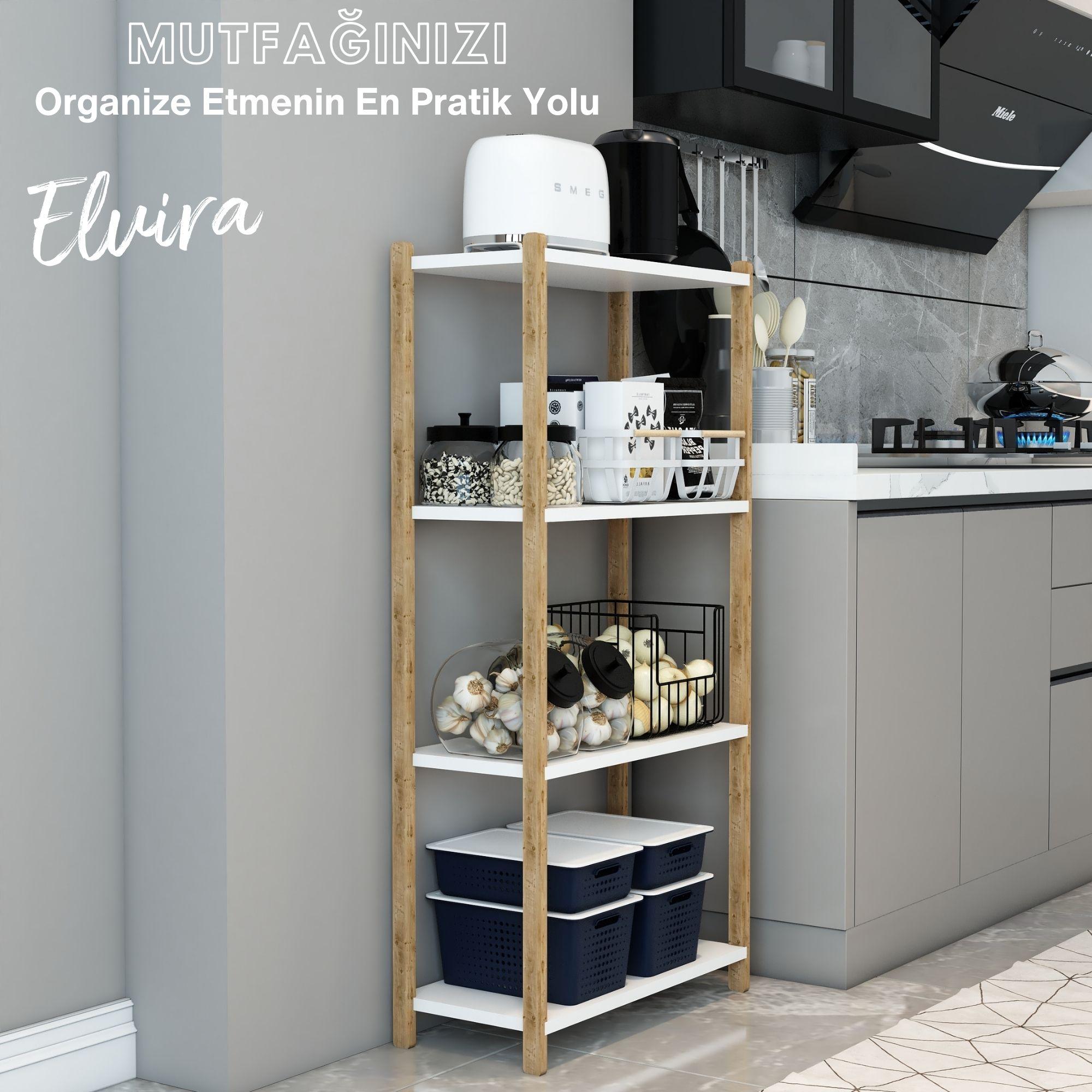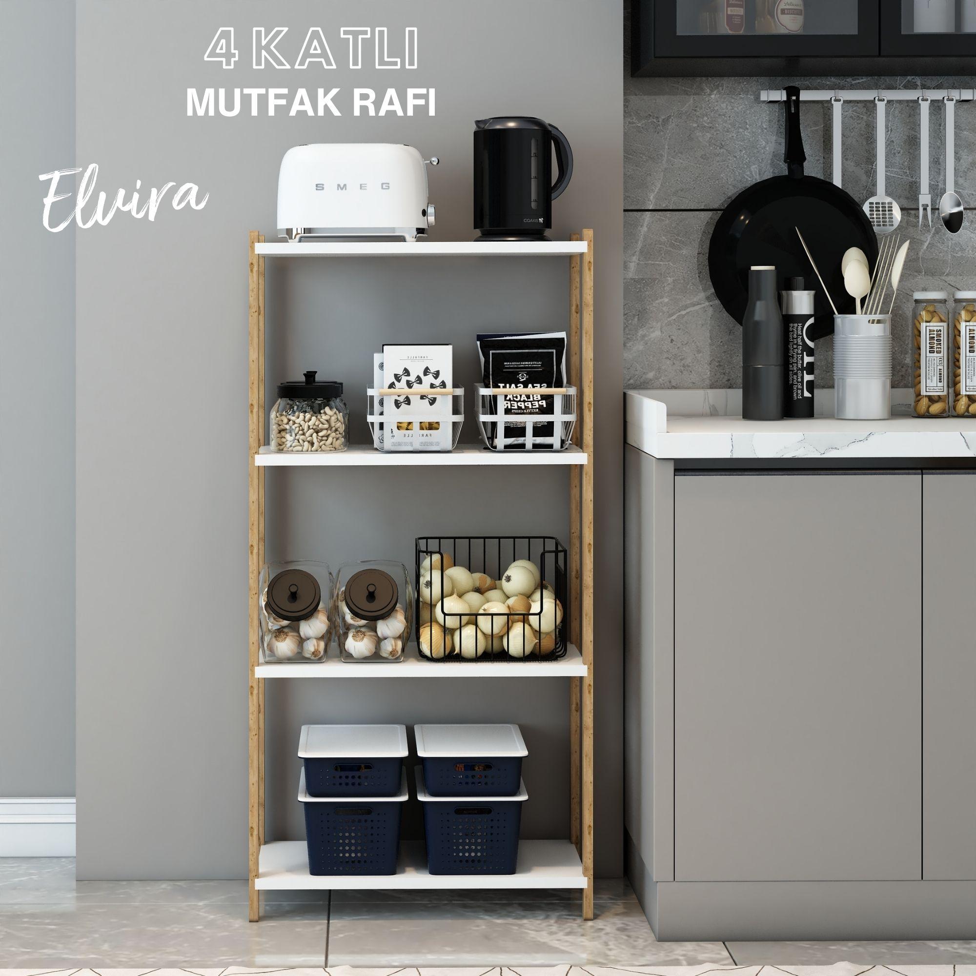Elvira Ahşap 4 Katlı Mutfak Rafı / Baharatlık / Dekoratif Raf / Çok Amaçlı Kullanım / Demonte ve Kolay Montaj / Modern, Şık ve Ergonomik Tasarım