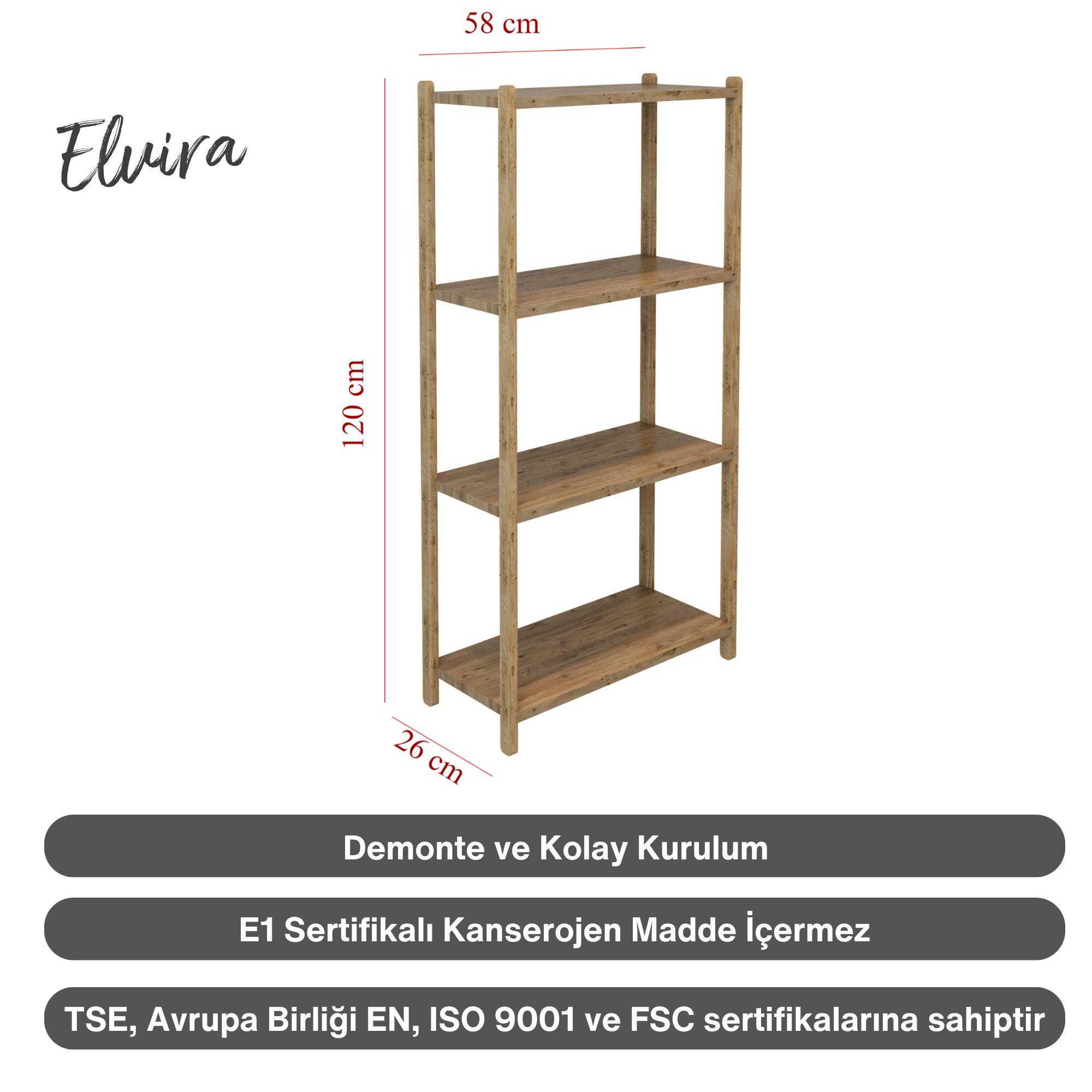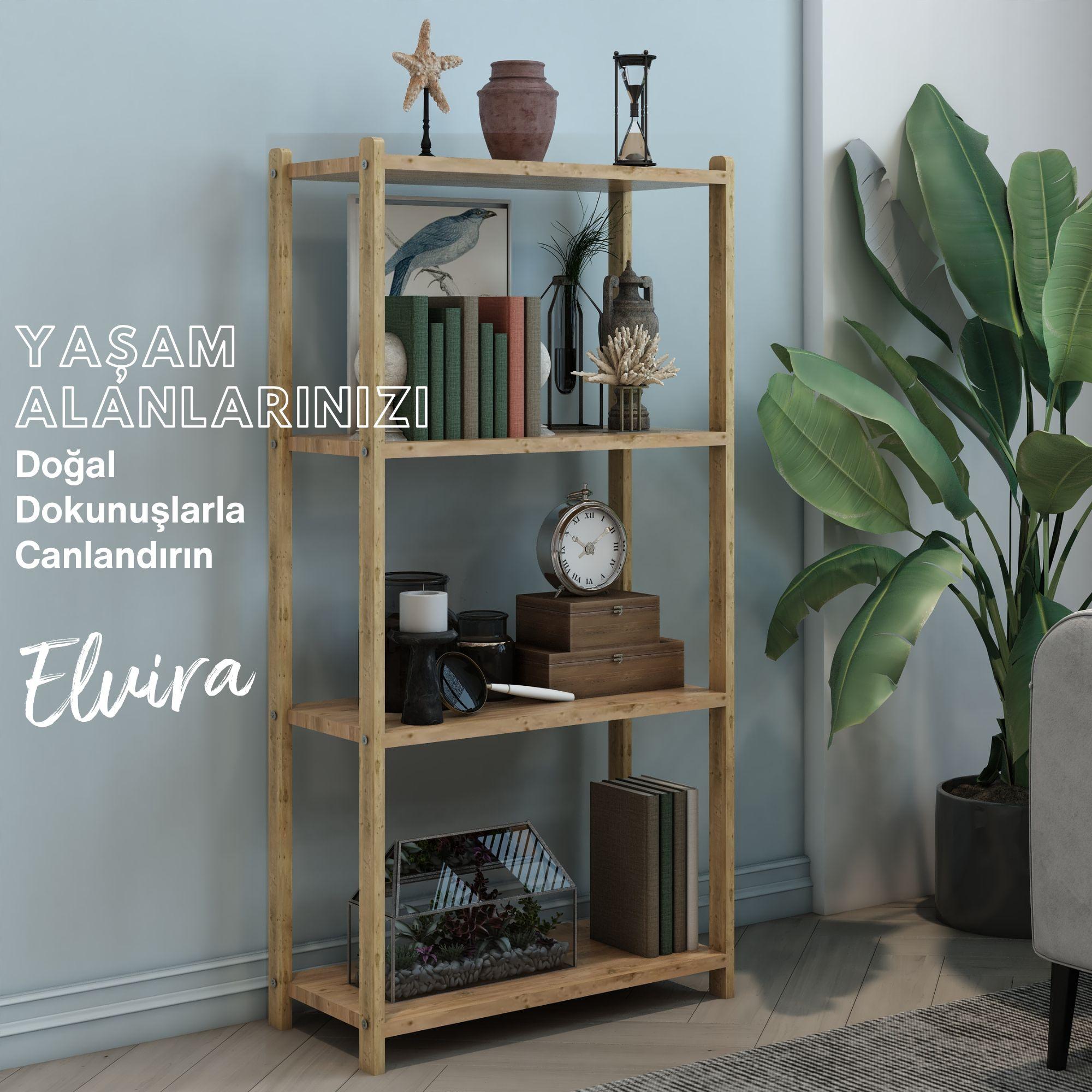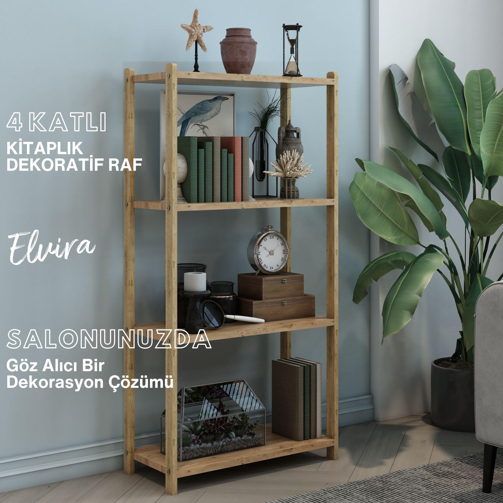 Elvira Ahşap 4 Raflı Kitaplık / Dekoratif Raf / Çok Amaçlı Kullanım / Modern Tasarım / Demonte ve Kolay Montaj / Şık ve Ergonomik Tasarım