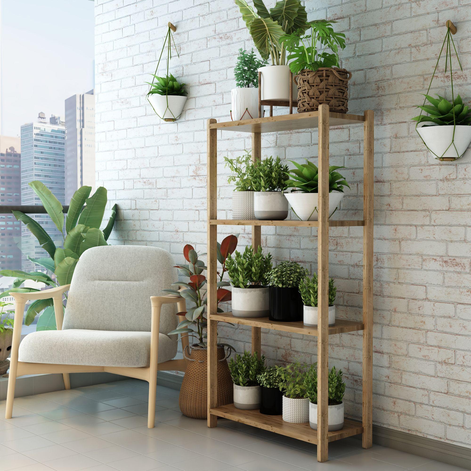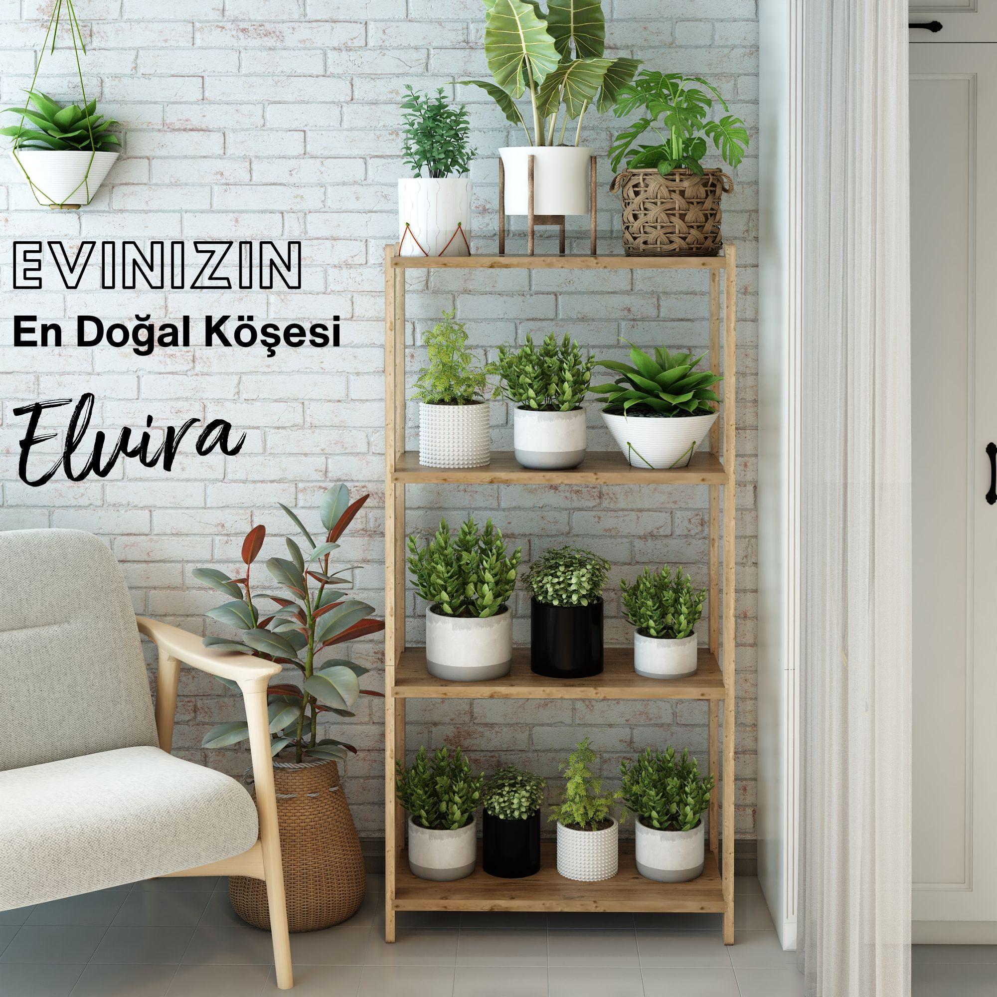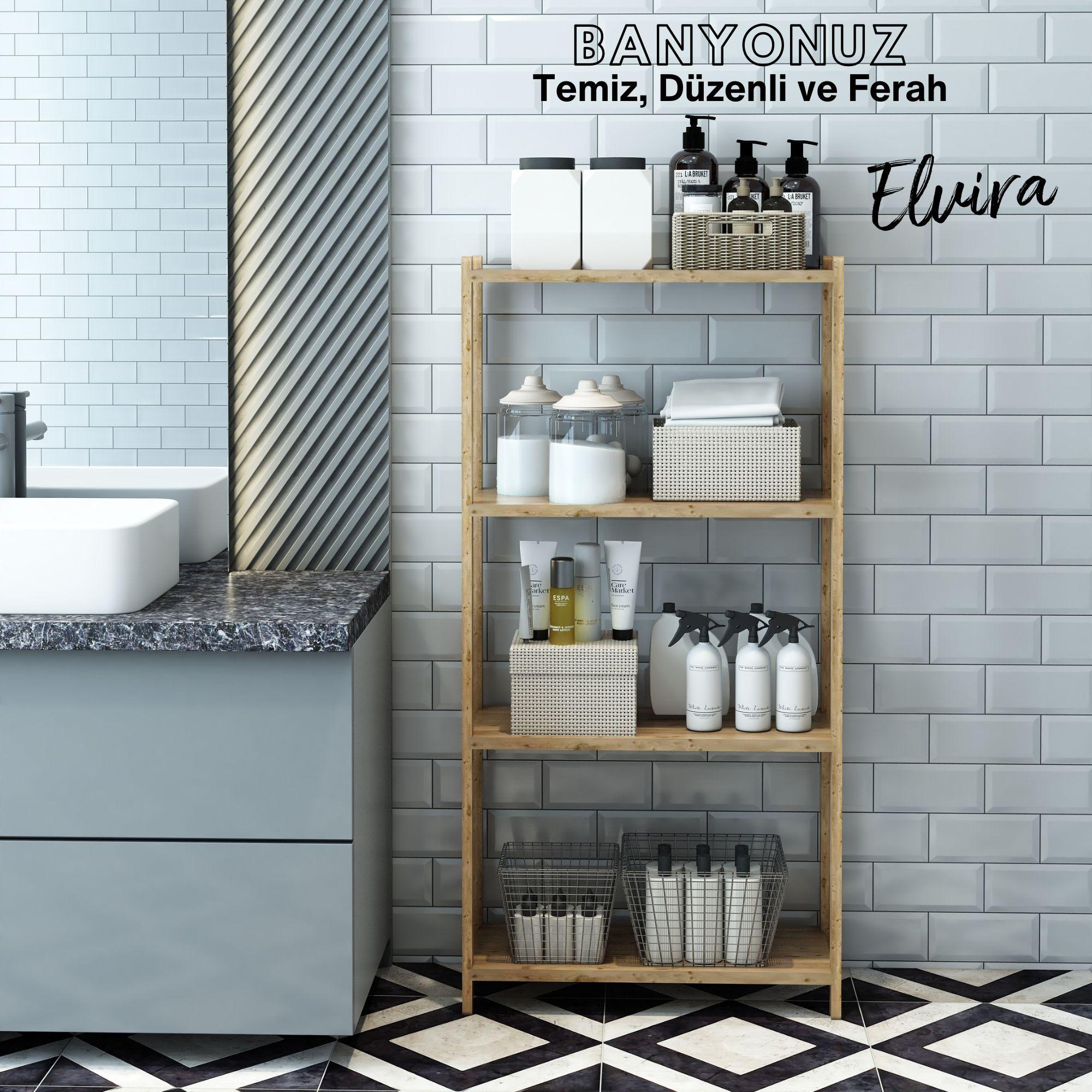 Elvira Ahşap 4 Raflı Kitaplık / Dekoratif Raf / Çok Amaçlı Kullanım / Modern Tasarım / Demonte ve Kolay Montaj / Şık ve Ergonomik Tasarım