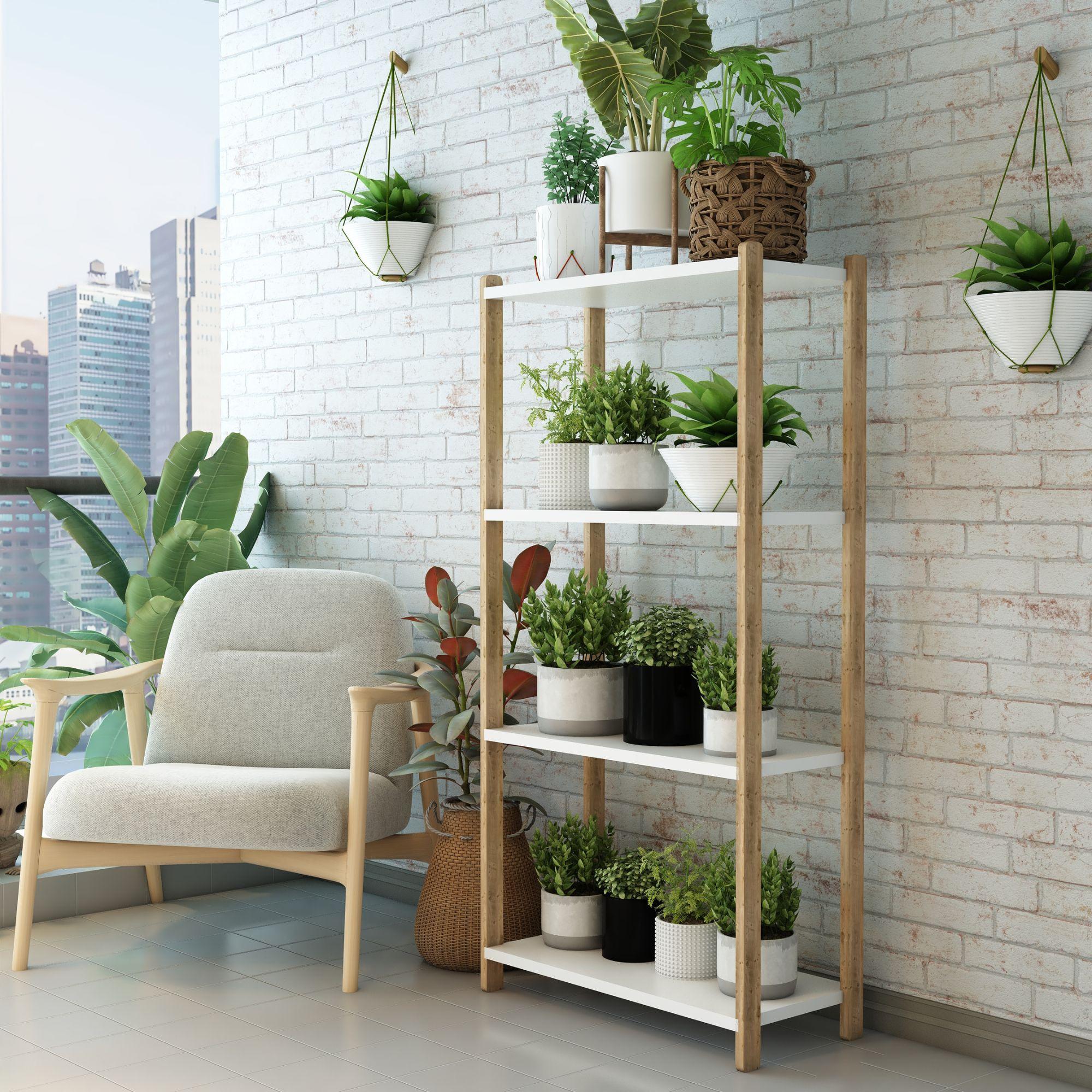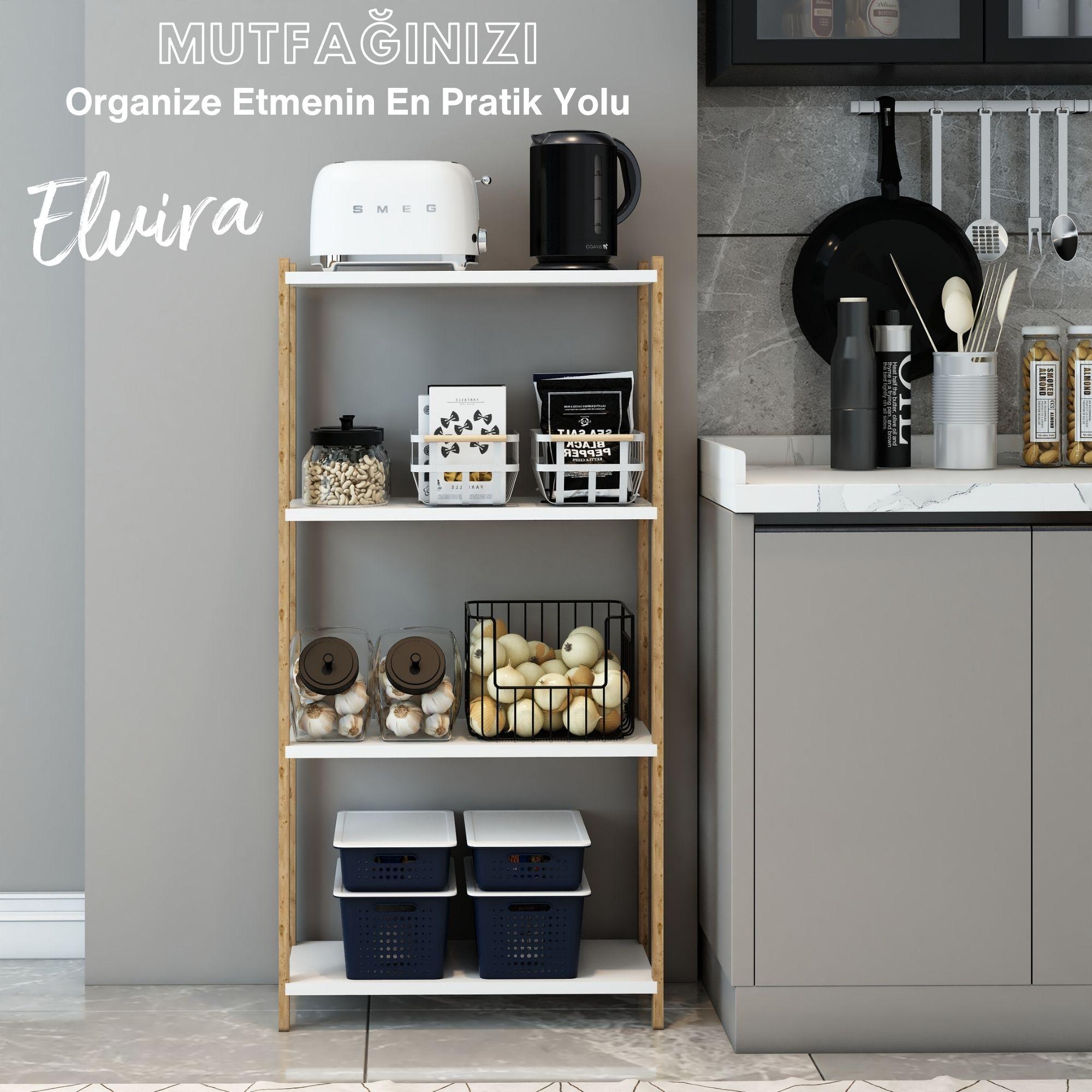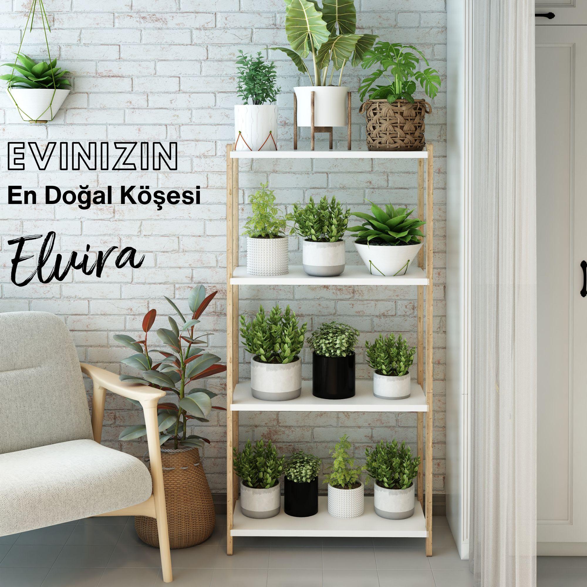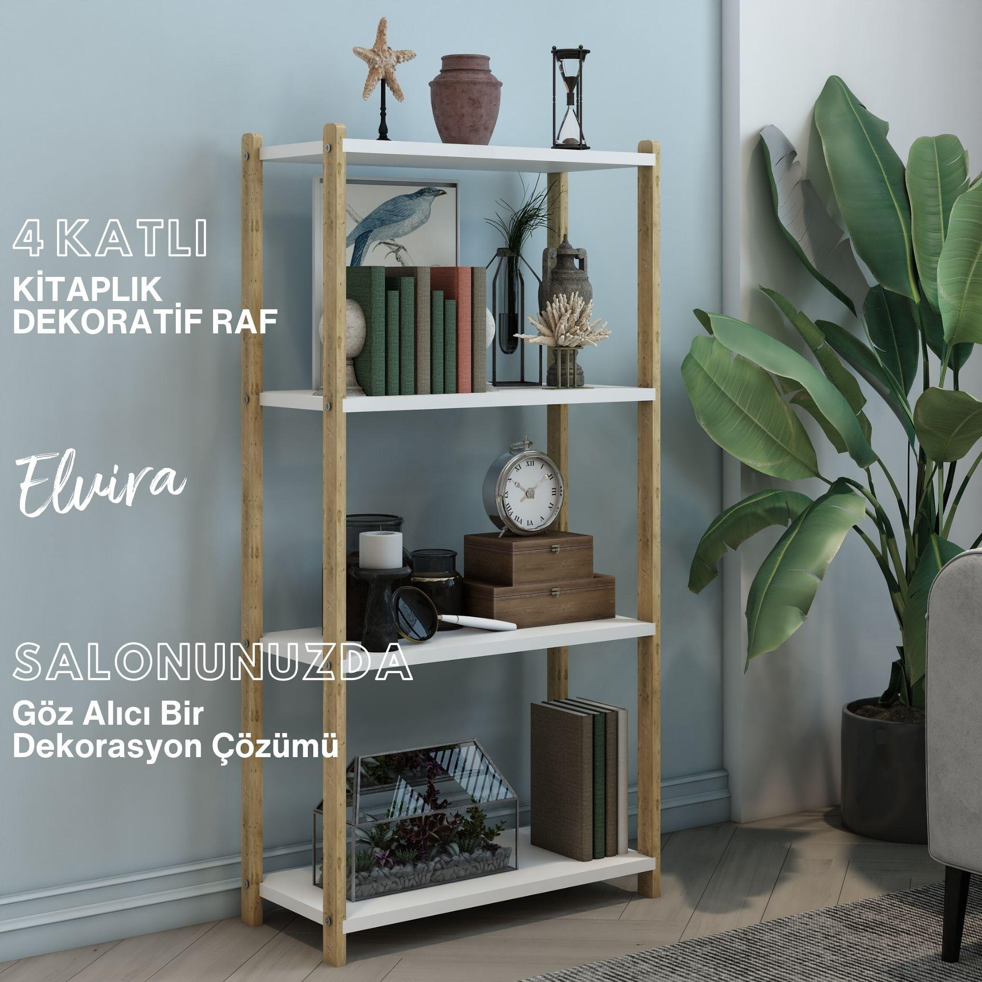 Elvira Ahşap 4 Raflı Kitaplık / Dekoratif Raf / Çok Amaçlı Kullanım / Modern Tasarım / Demonte ve Kolay Montaj / Şık ve Ergonomik Tasarım