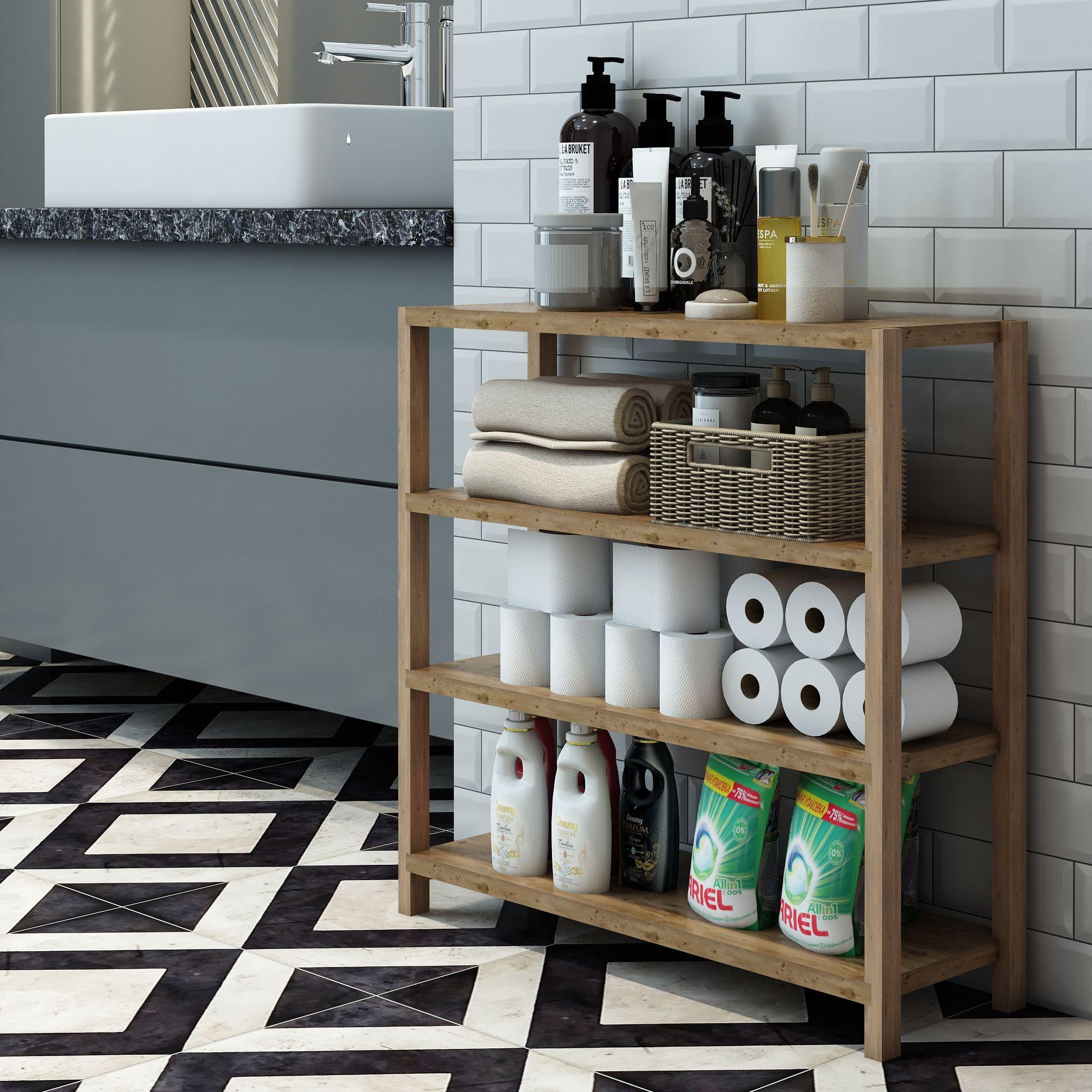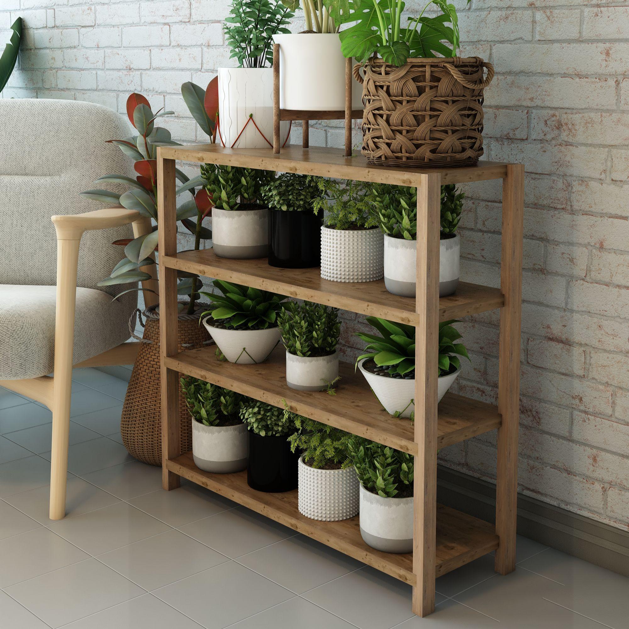 Jest Dekor Konsept Helsa 4 Raflı Ahşap Ayakkabılık / Banyo Rafı / Mutfak Rafı, Baharatlık / Saksılık / Çok Amaçlı Dekoratif Raf, Organizer / Demonte ve Kolay Montaj