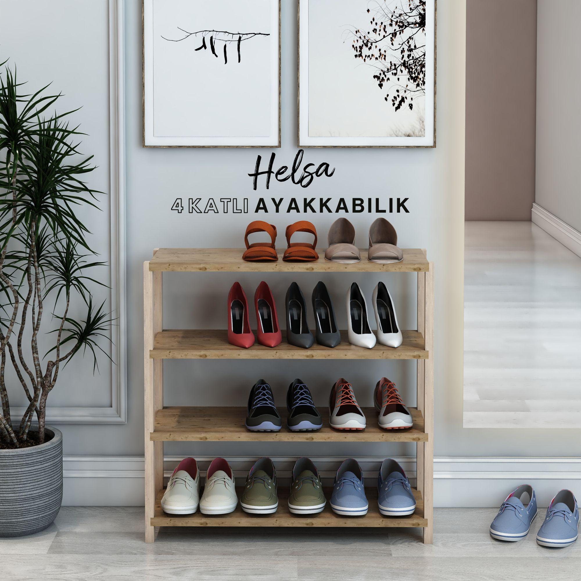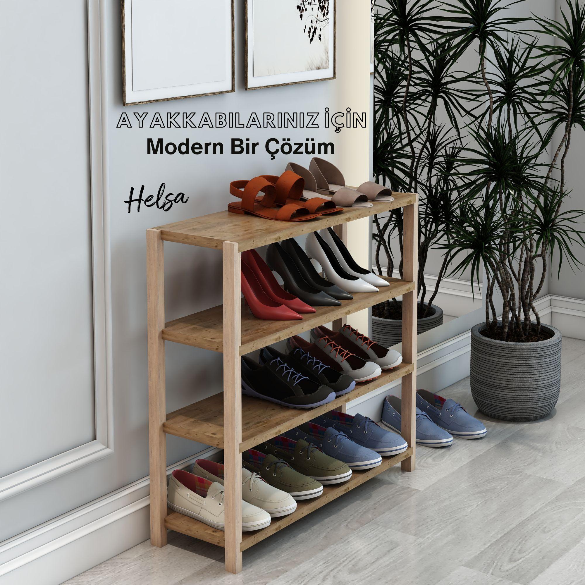 Jest Dekor Konsept Helsa 4 Raflı Ahşap Ayakkabılık, ayakkabılarınızı düzenlemenin yanı sıra, kitaplık, banyo düzenleyici, mutfak rafı ve ofis organizatörü olarak da kullanılabilecek çok amaçlı bir üründür.