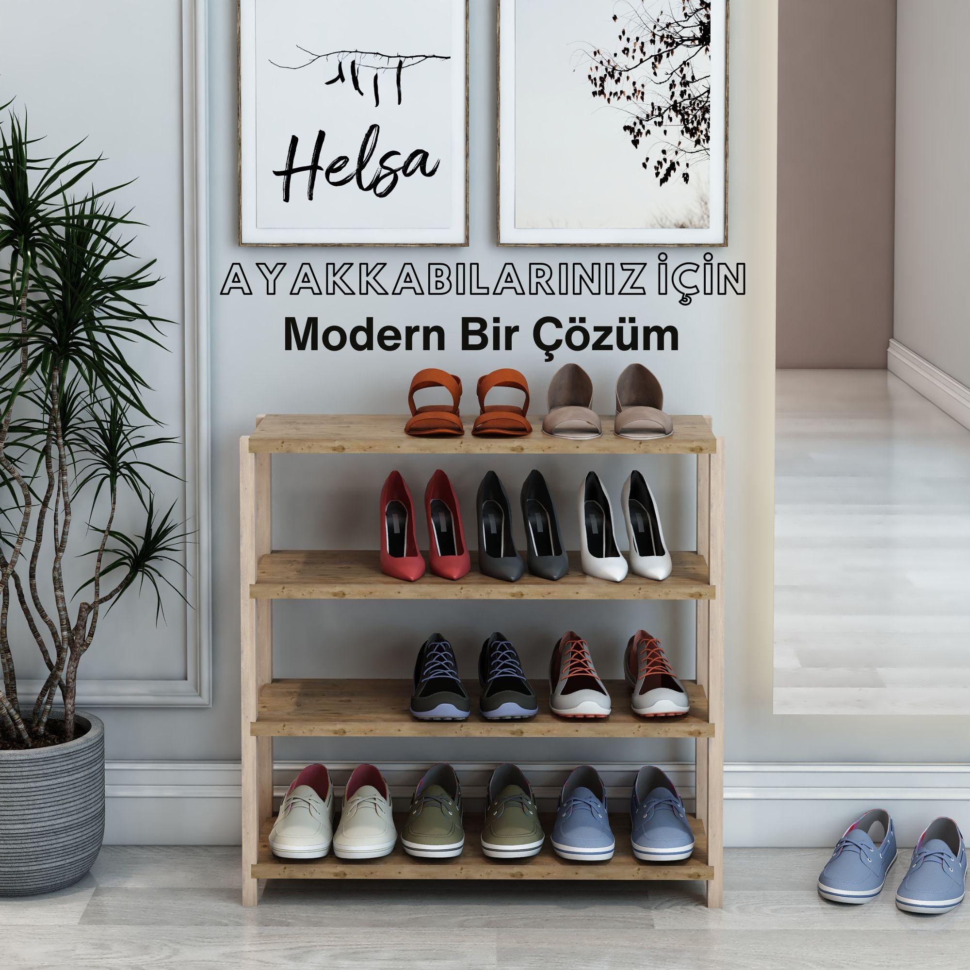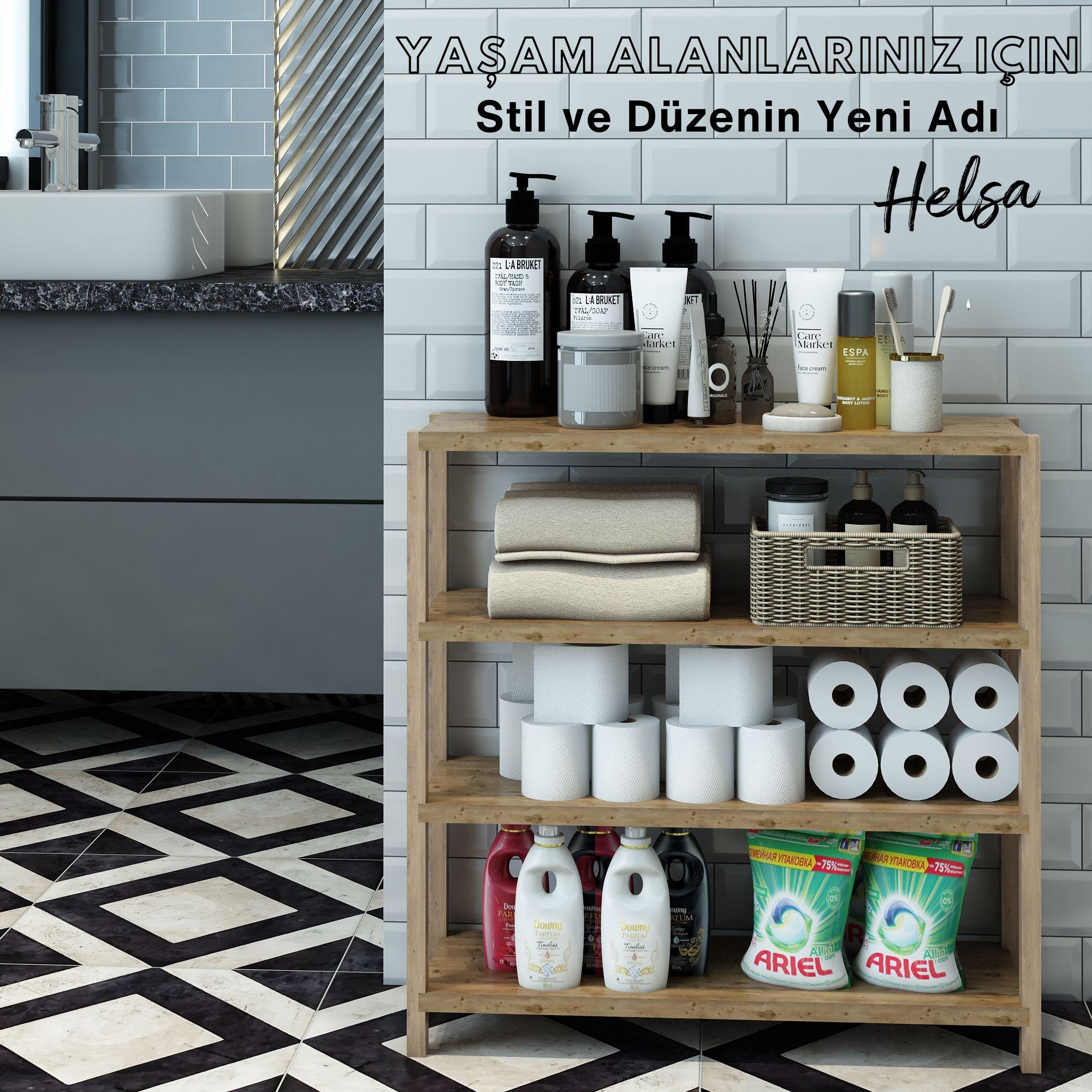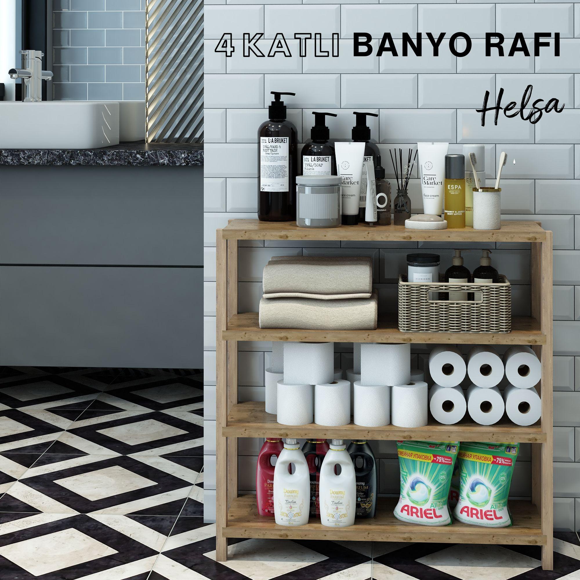 Jest Dekor Konsept Helsa 4 Raflı Ahşap Banyo Rafı, Banya gereçlerinizi düzenlemenin yanı sıra, kitaplık, ayakkabılık, mutfak rafı ve ofis organizeri olarak da kullanılabilecek çok amaçlı bir üründür.