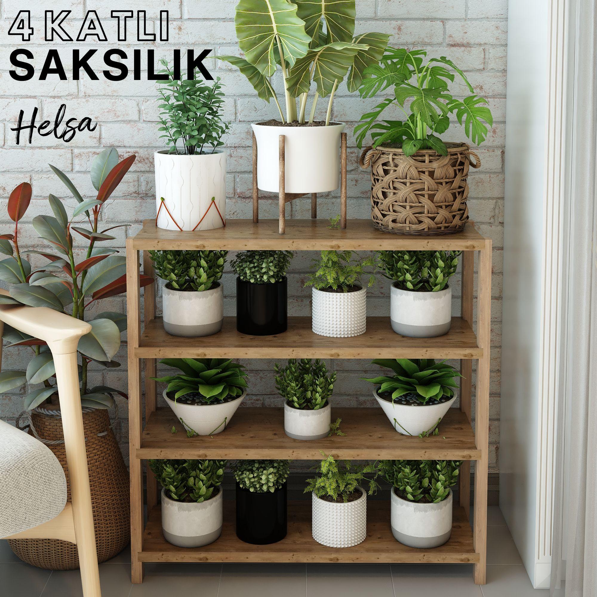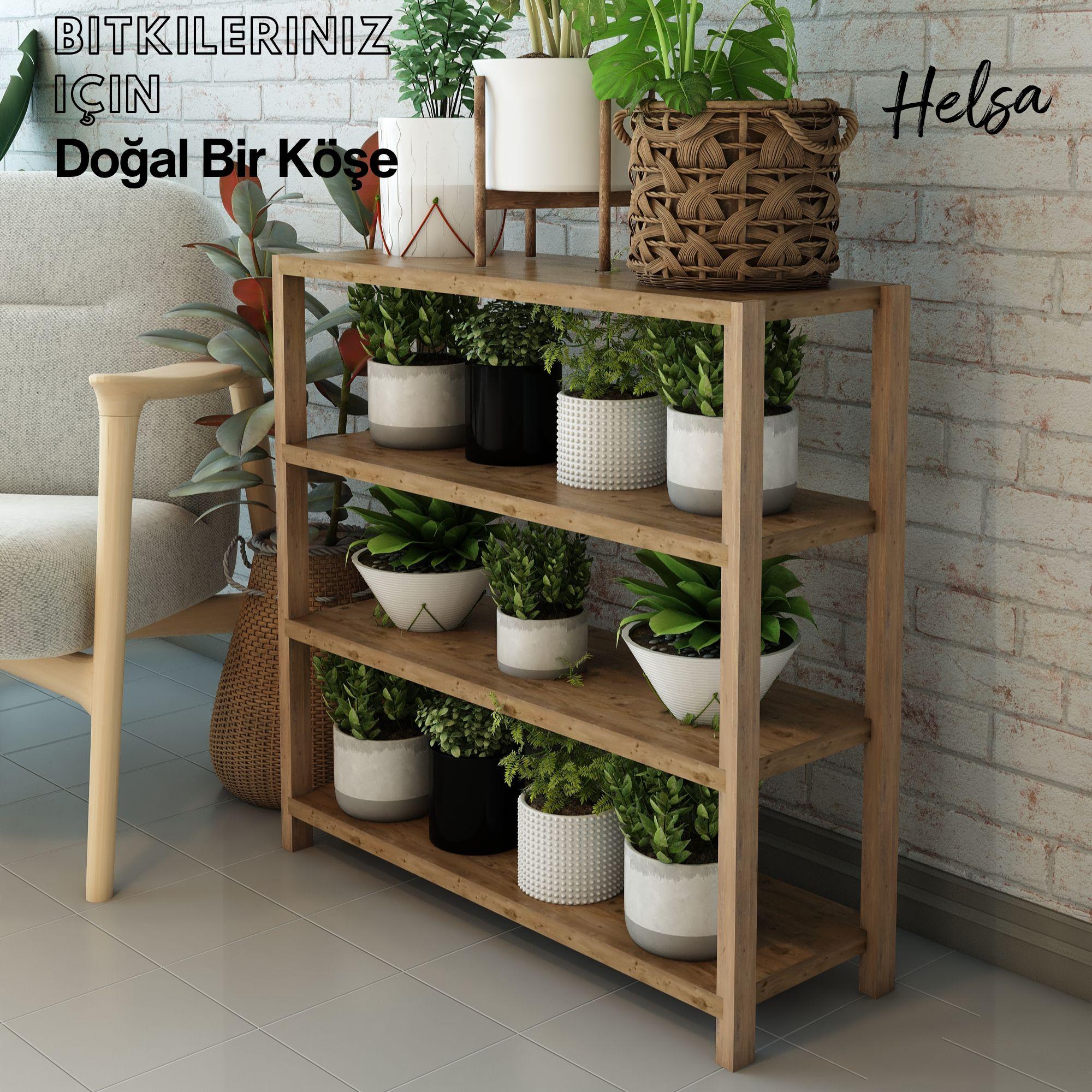 Jest Dekor Konsept Helsa 4 Raflı Ahşap Saksılık, Çiçeklerinize yeniden hayat vermesinin yanı sıra, Kitaplık, Banyo Düzenleyici, Mutfak Rafı Yan Sehpa ve Ofis Organizeri olarak da kullanılabilecek çok amaçlı bir üründür.