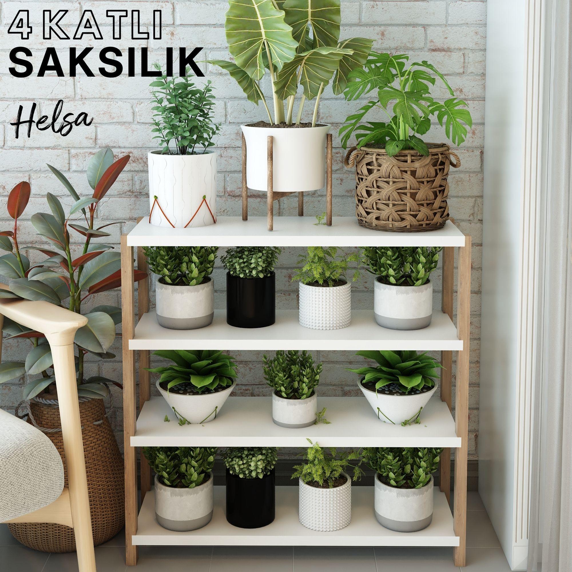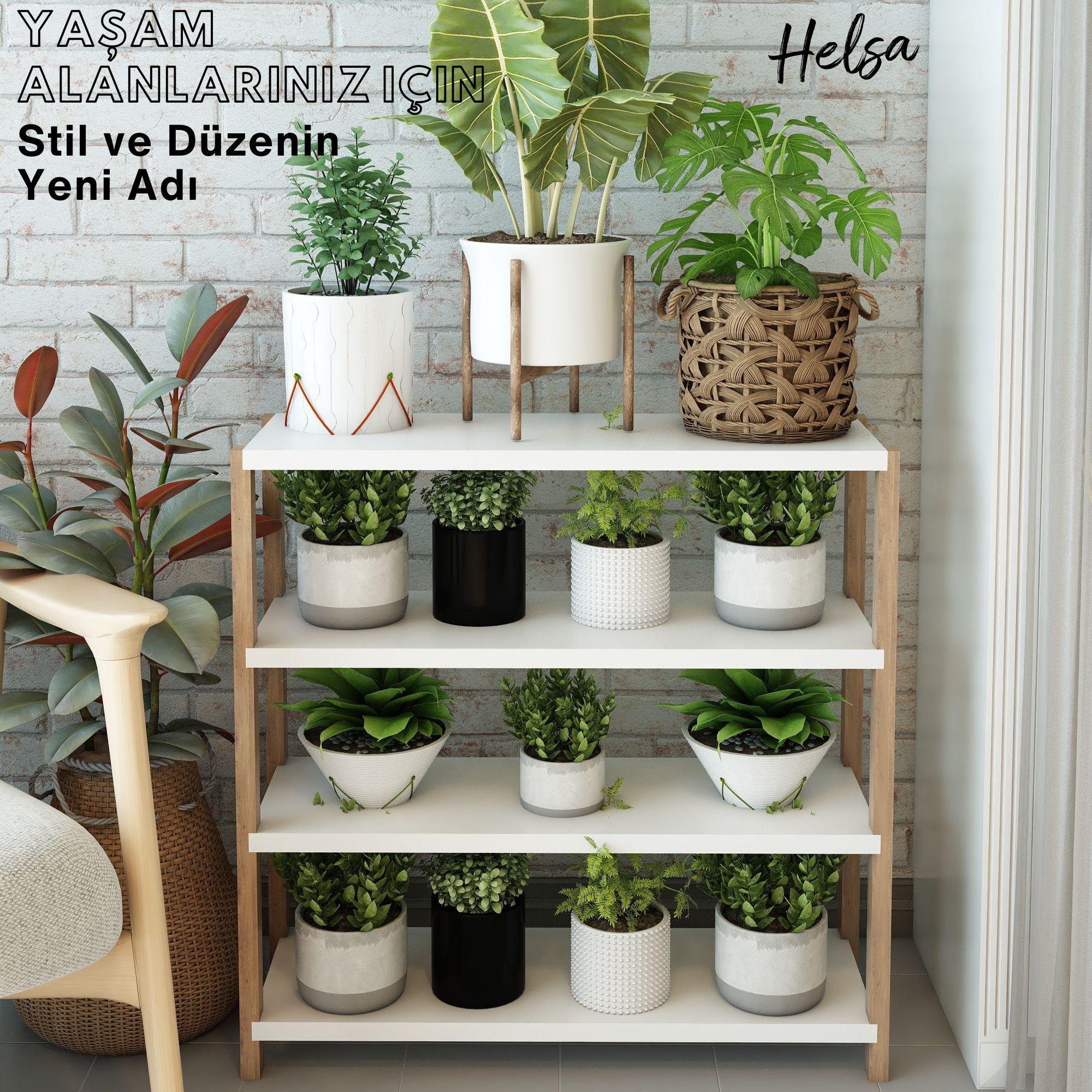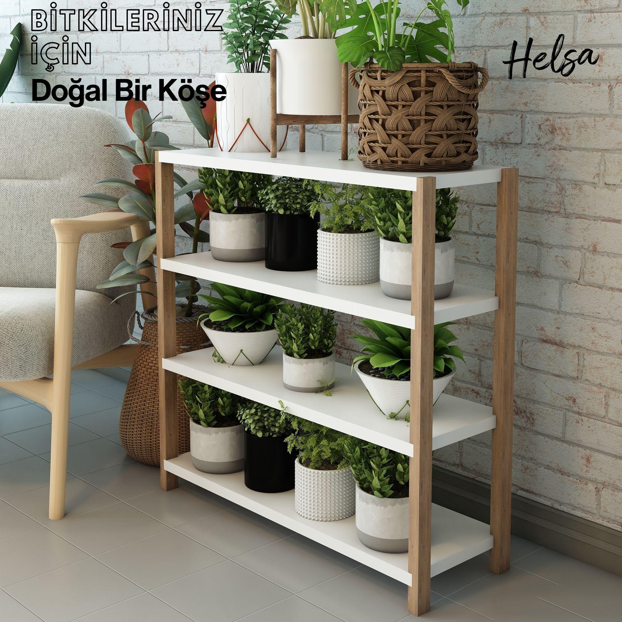 Jest Dekor Konsept Helsa 4 Raflı Ahşap Saksılık, Çiçeklerinize yeniden hayat vermesinin yanı sıra, Kitaplık, Banyo Düzenleyici, Mutfak Rafı Yan Sehpa ve Ofis Organizeri olarak da kullanılabilecek çok amaçlı bir üründür.