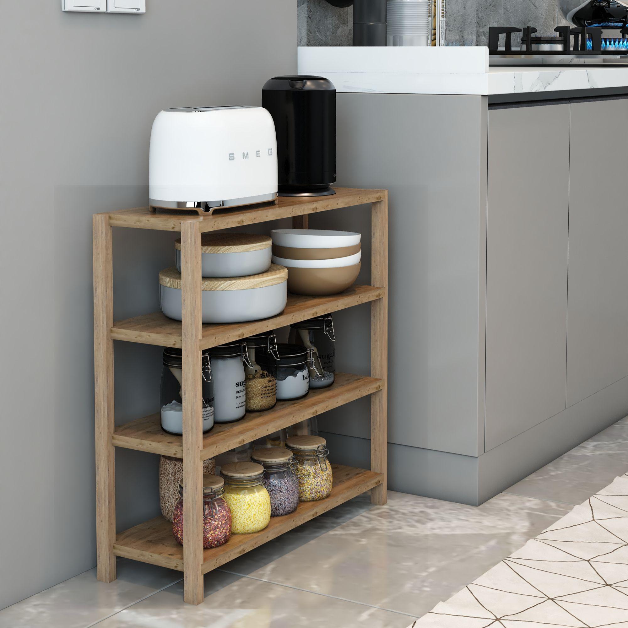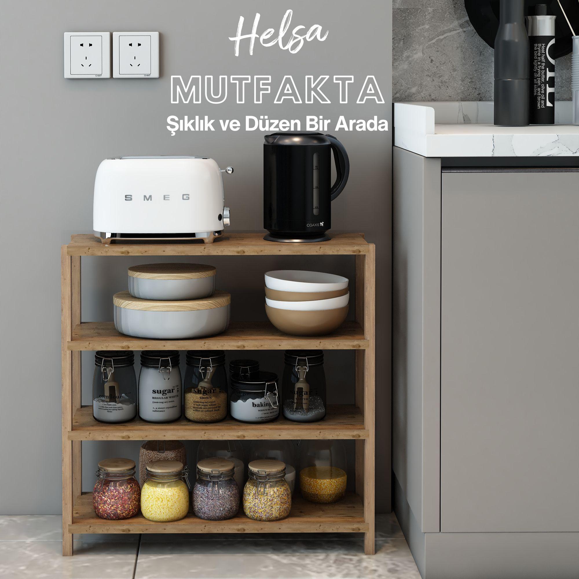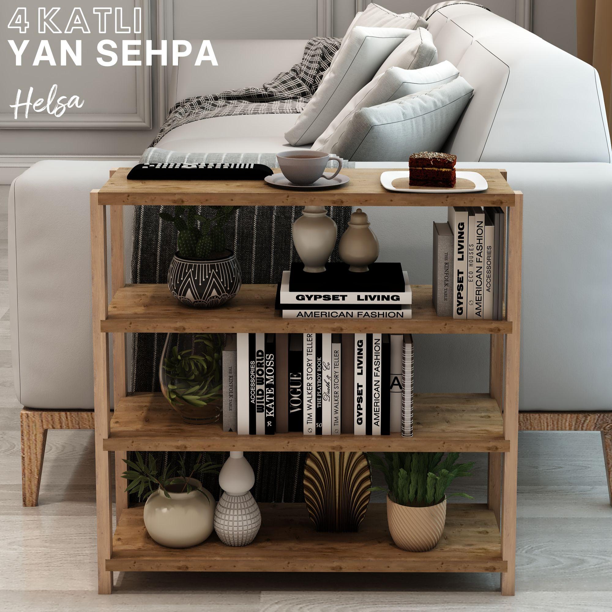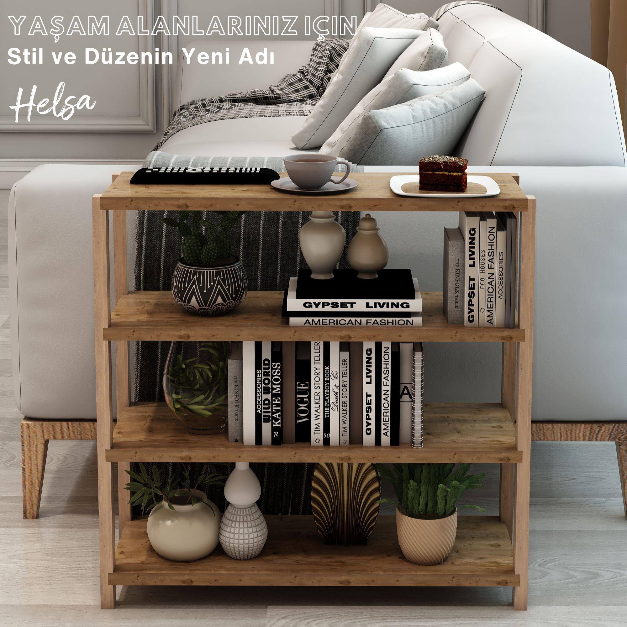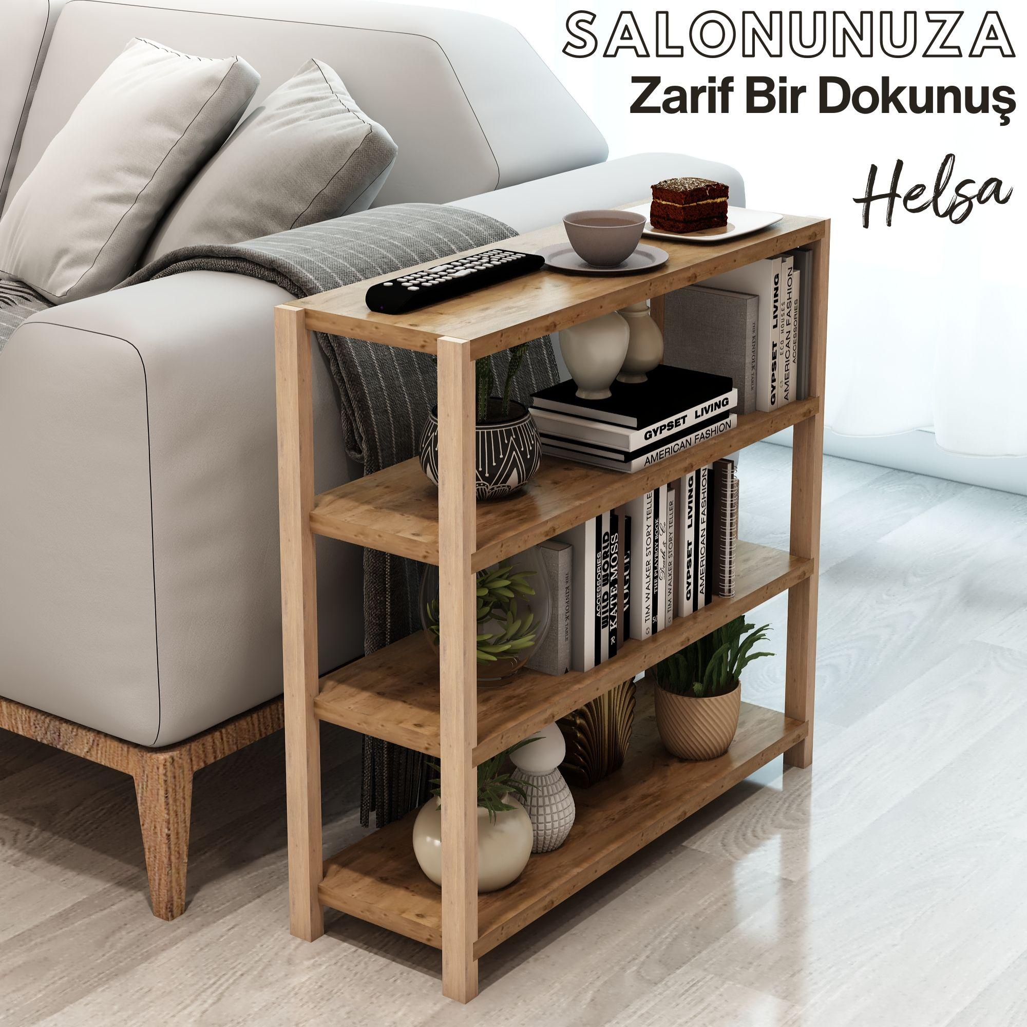 Jest Dekor Konsept Helsa 4 Raflı Ahşap Yan Sehpa, İhtiyacınız olan her yerde Yan Sehpa olarak kullanabilmenizin yanı sıra, kitaplık, banyo düzenleyici, mutfak rafı ve ofis organizeri olarak da kullanılabilecek çok amaçlı bir üründür.