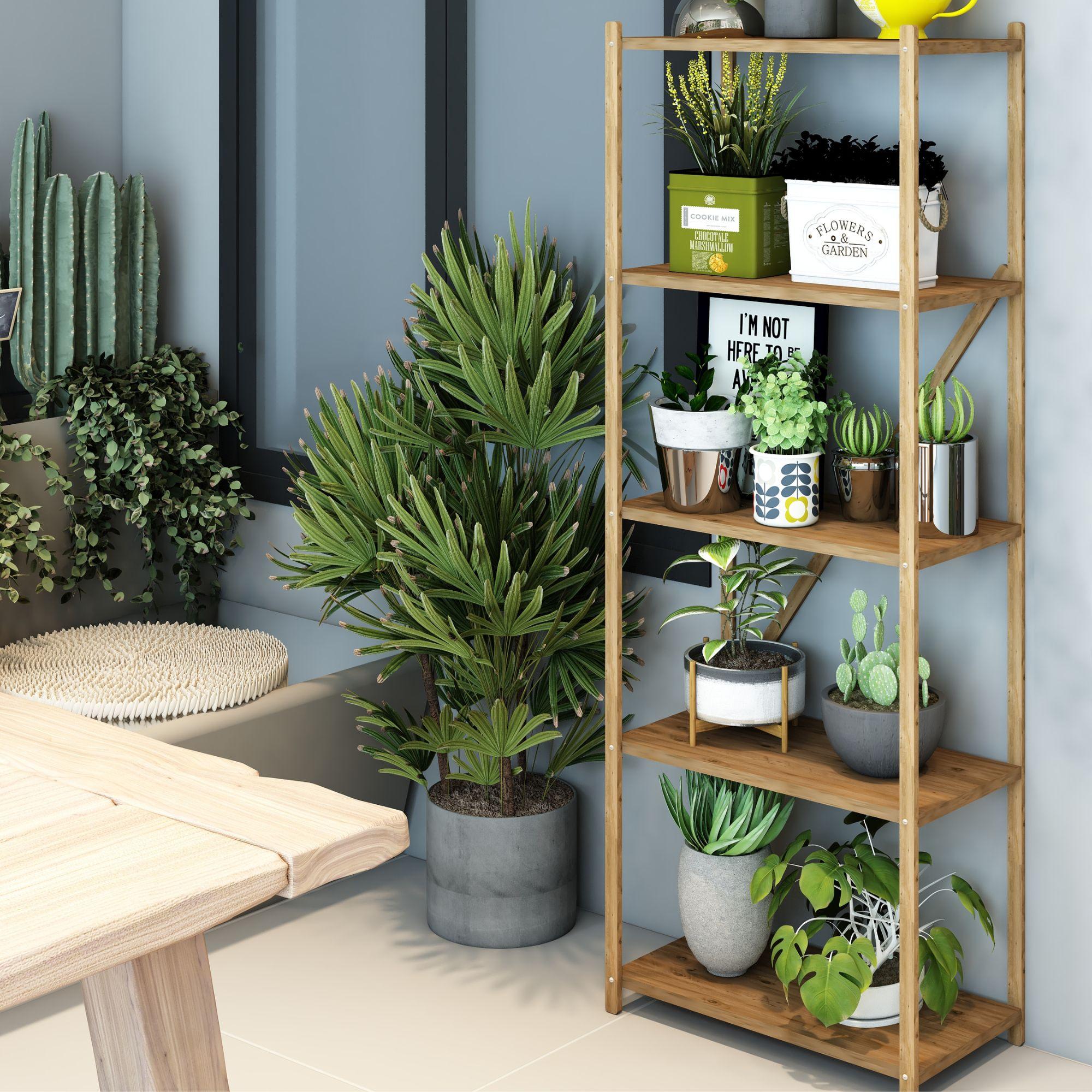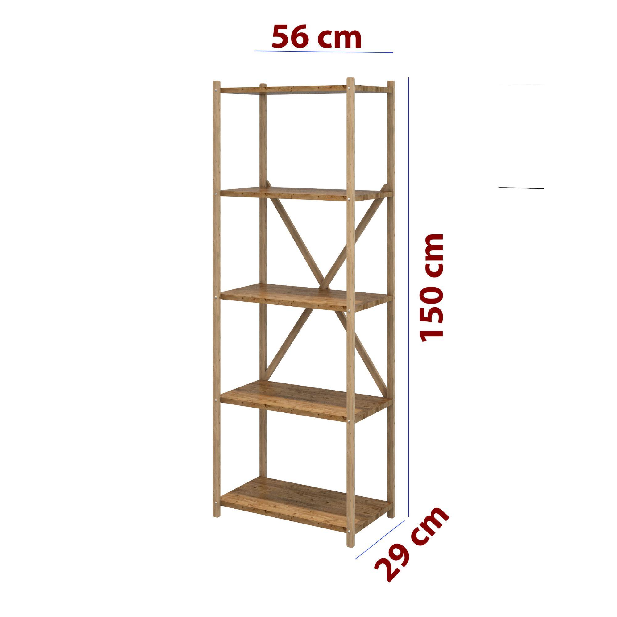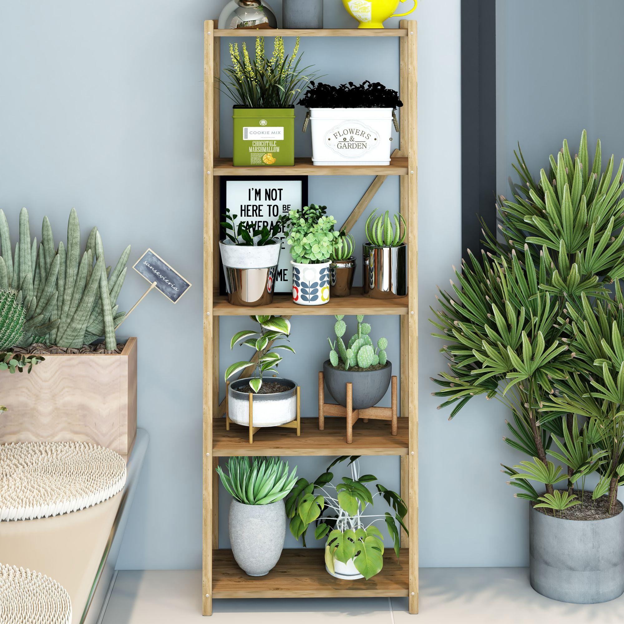 Karmen Atlantik Çam 5 Katlı Çok Amaçlı Ahşap Dekoratif Raf / Kitaplık & Düzenleyici & Saksı Standı, Çiçeklik