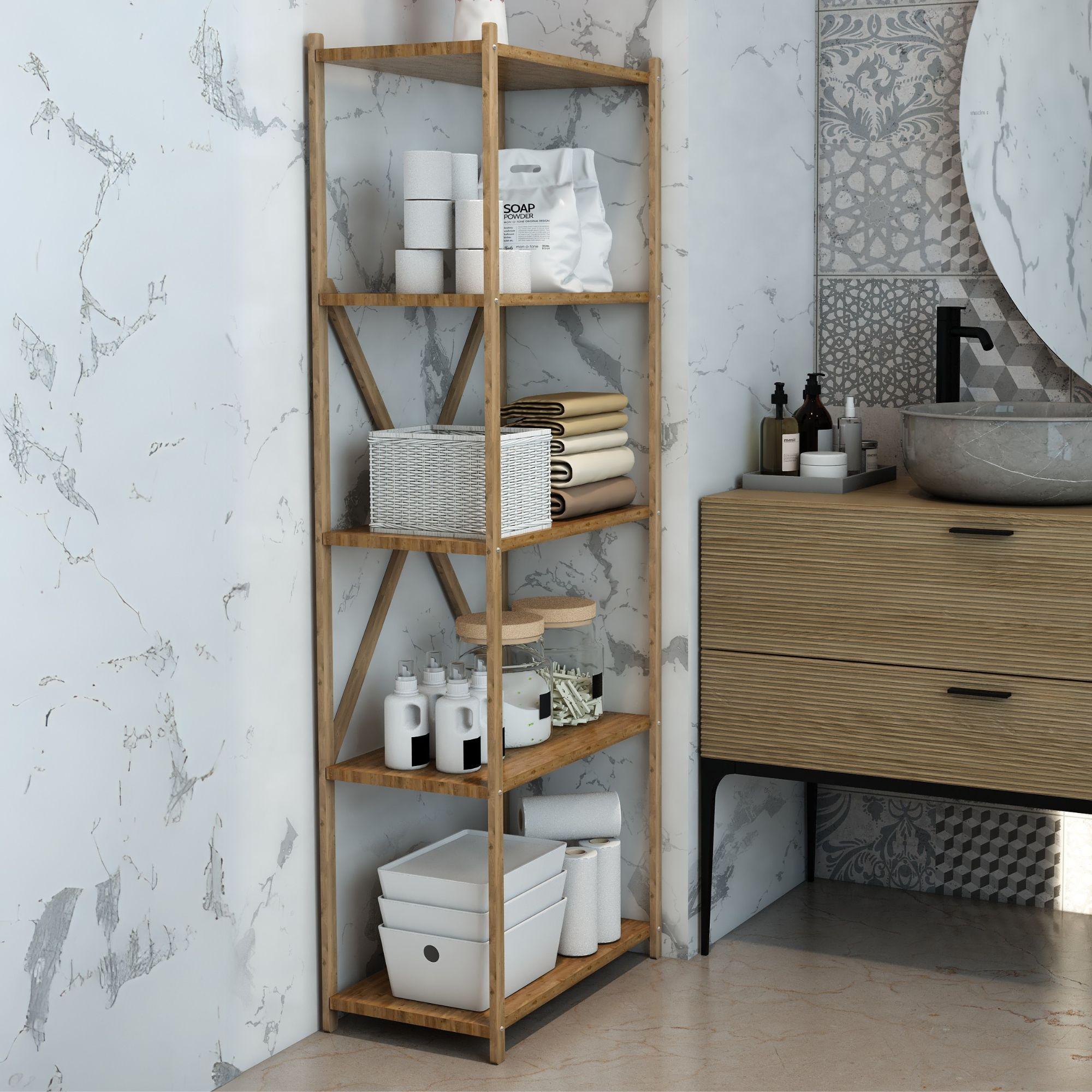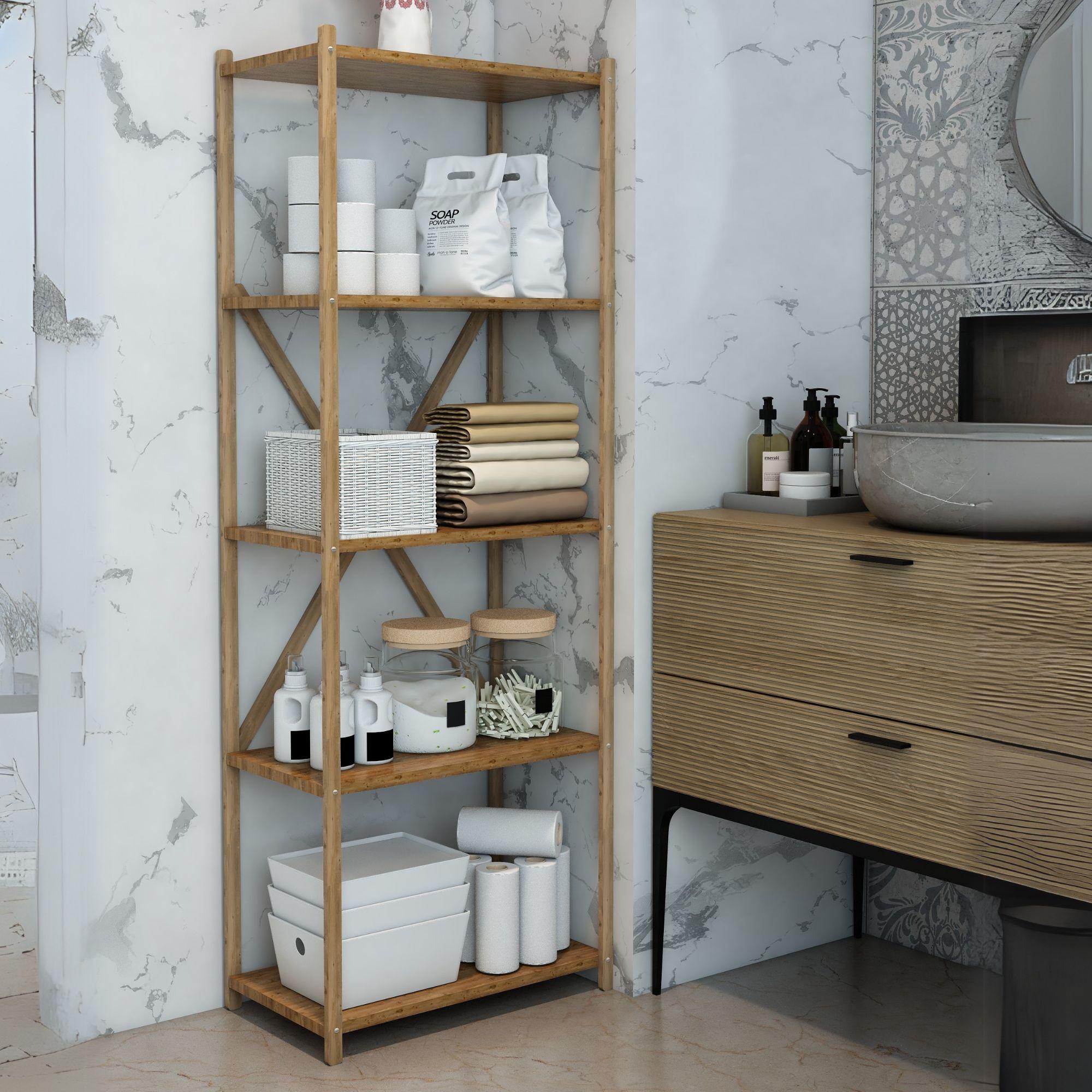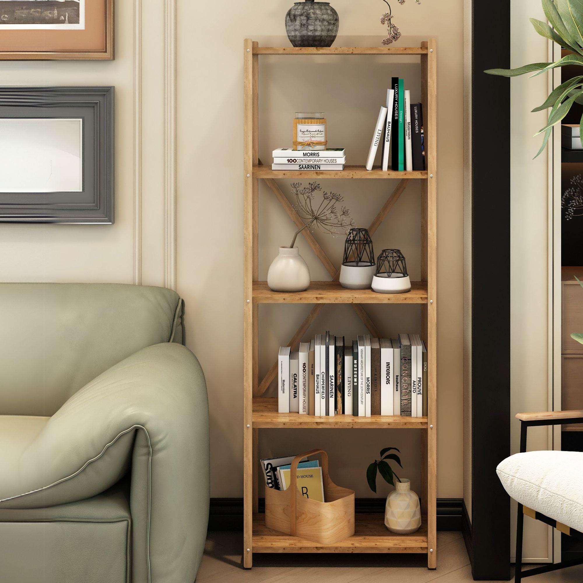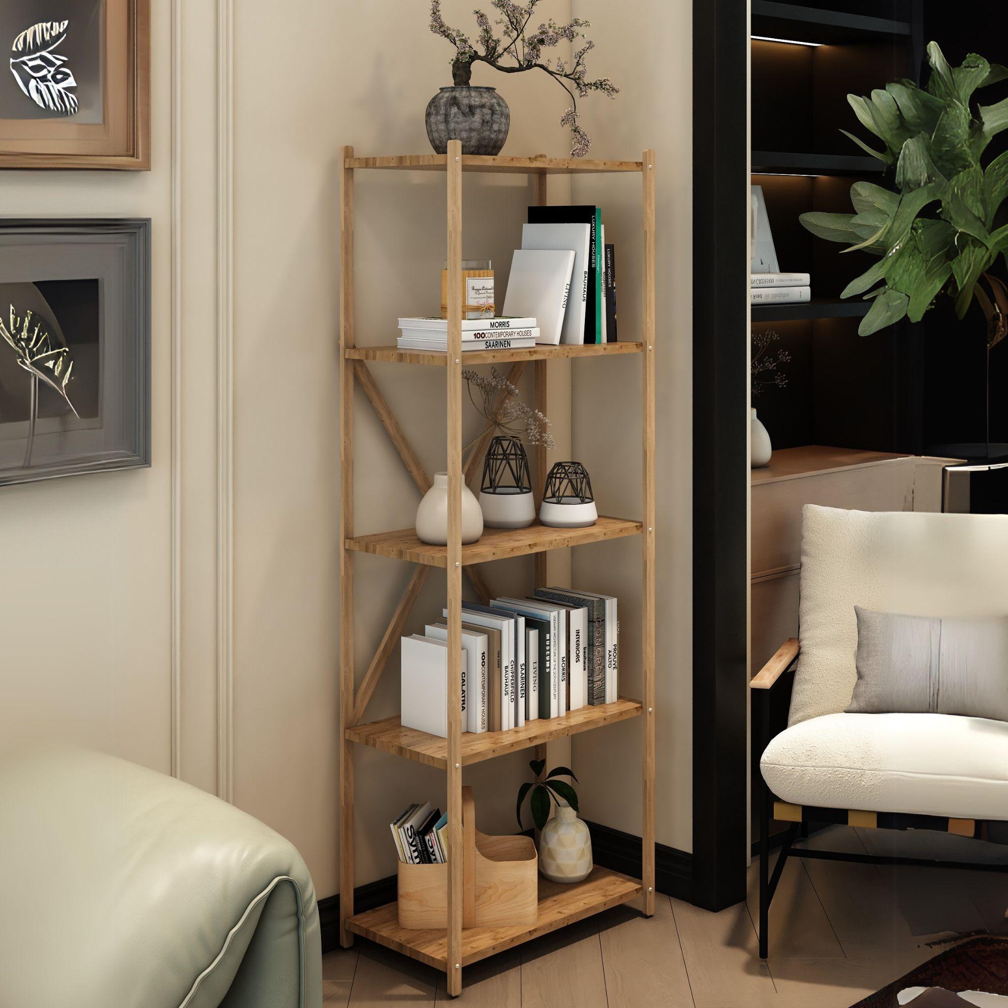 Karmen Atlantik Çam 5 Katlı Çok Amaçlı Ahşap Dekoratif Raf / Kitaplık & Düzenleyici & Saksı Standı, Çiçeklik
