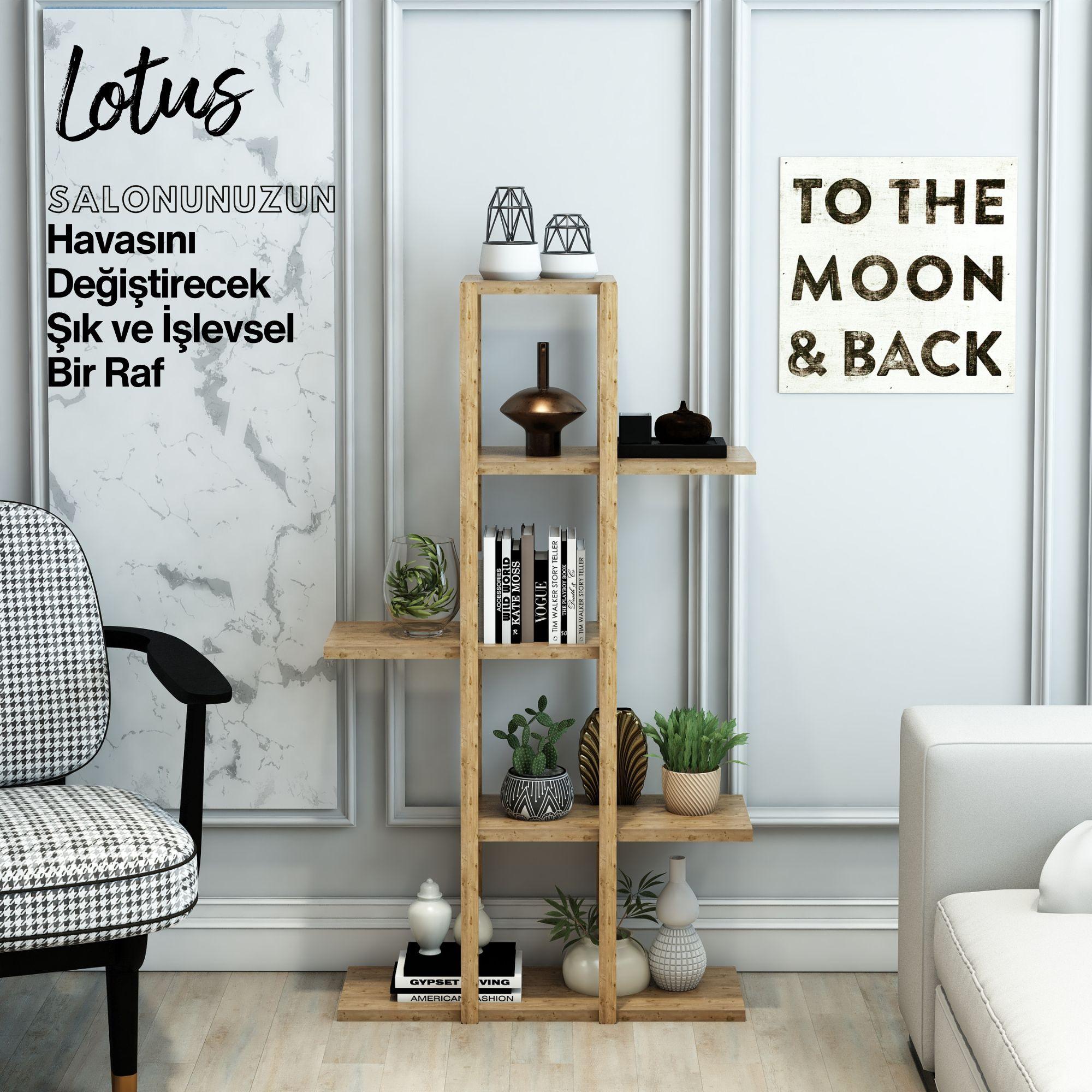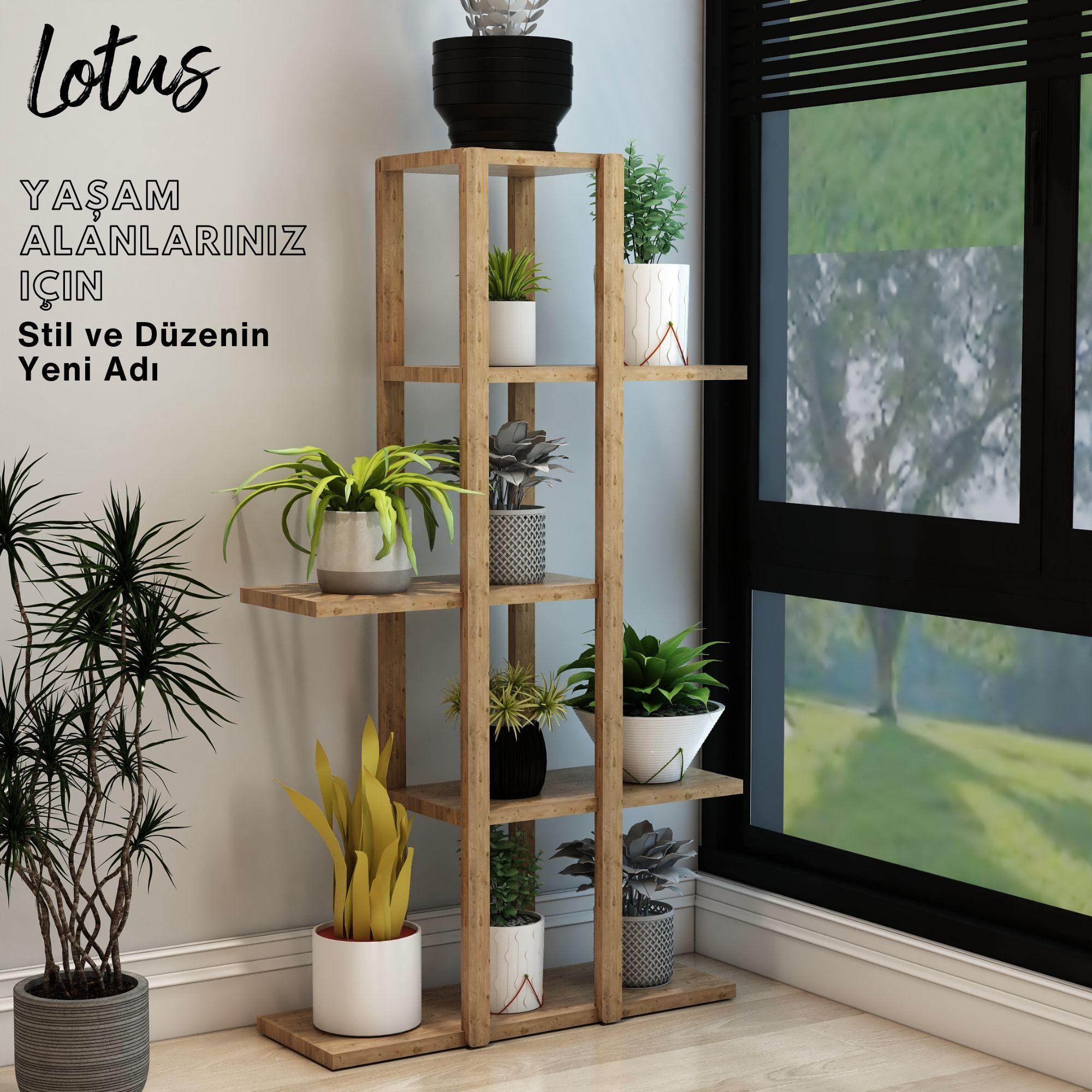 Jest Dekor Konsept Lotus Ahşap 5 Katlı Çiçeklik, sadece bitkilerinizi sergilemek için değil, aynı zamanda Kitaplık, Ofis Organizeri, Banyo Düzenleyicisi, Mutfak Rafı, Salon ve Oturma Odasında Dekoratif Raf ve olarak da kullanılabilecek çok amaçlı bir üründür.