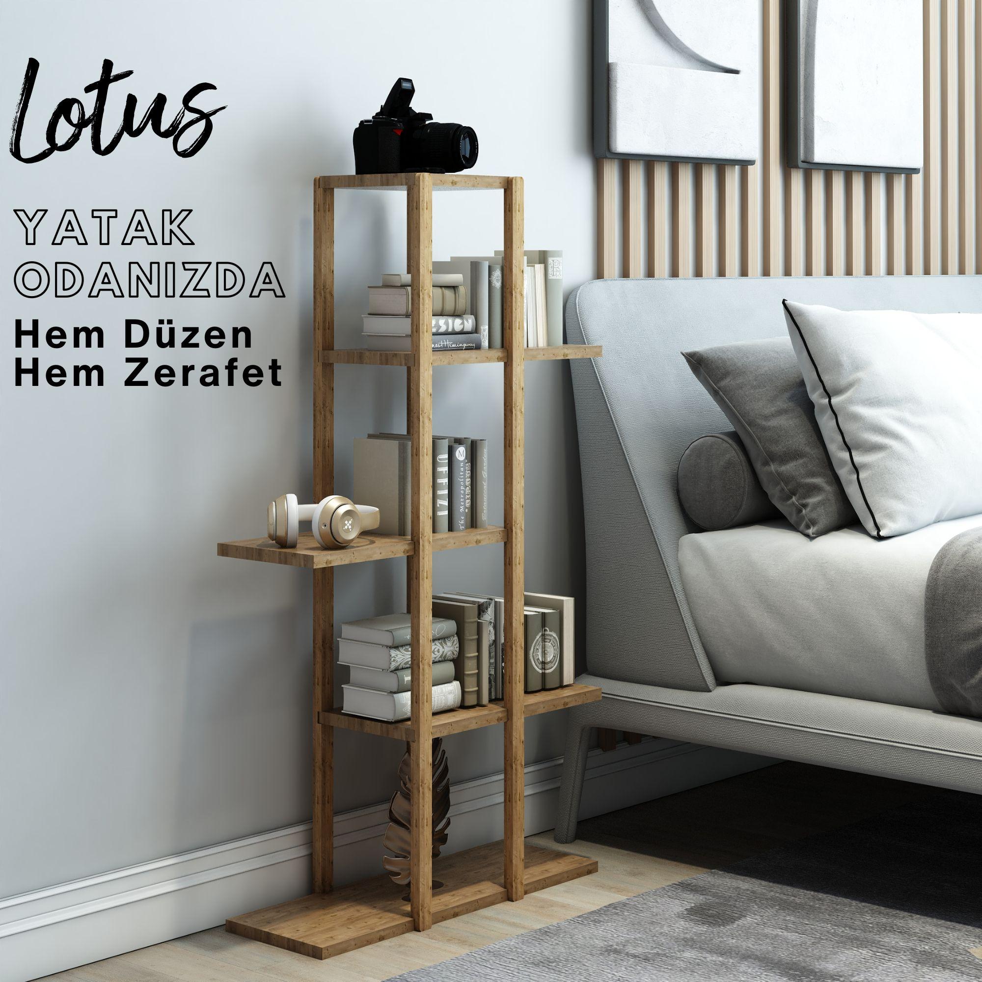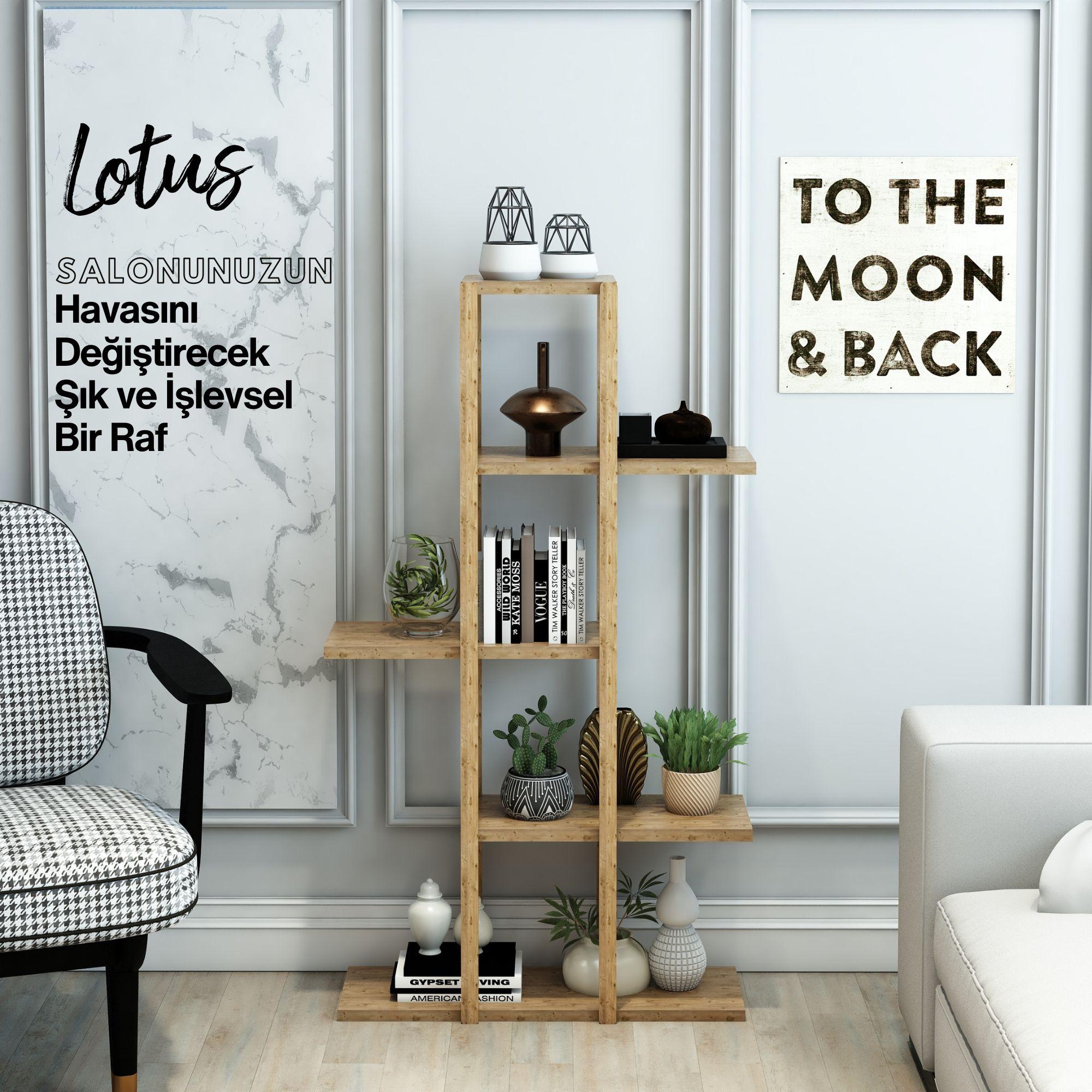 Lotus Ahşap 5 Katlı Kitaplık / Dekoratif Raf / Çok Amaçlı Kullanım (Atlantik Çam)