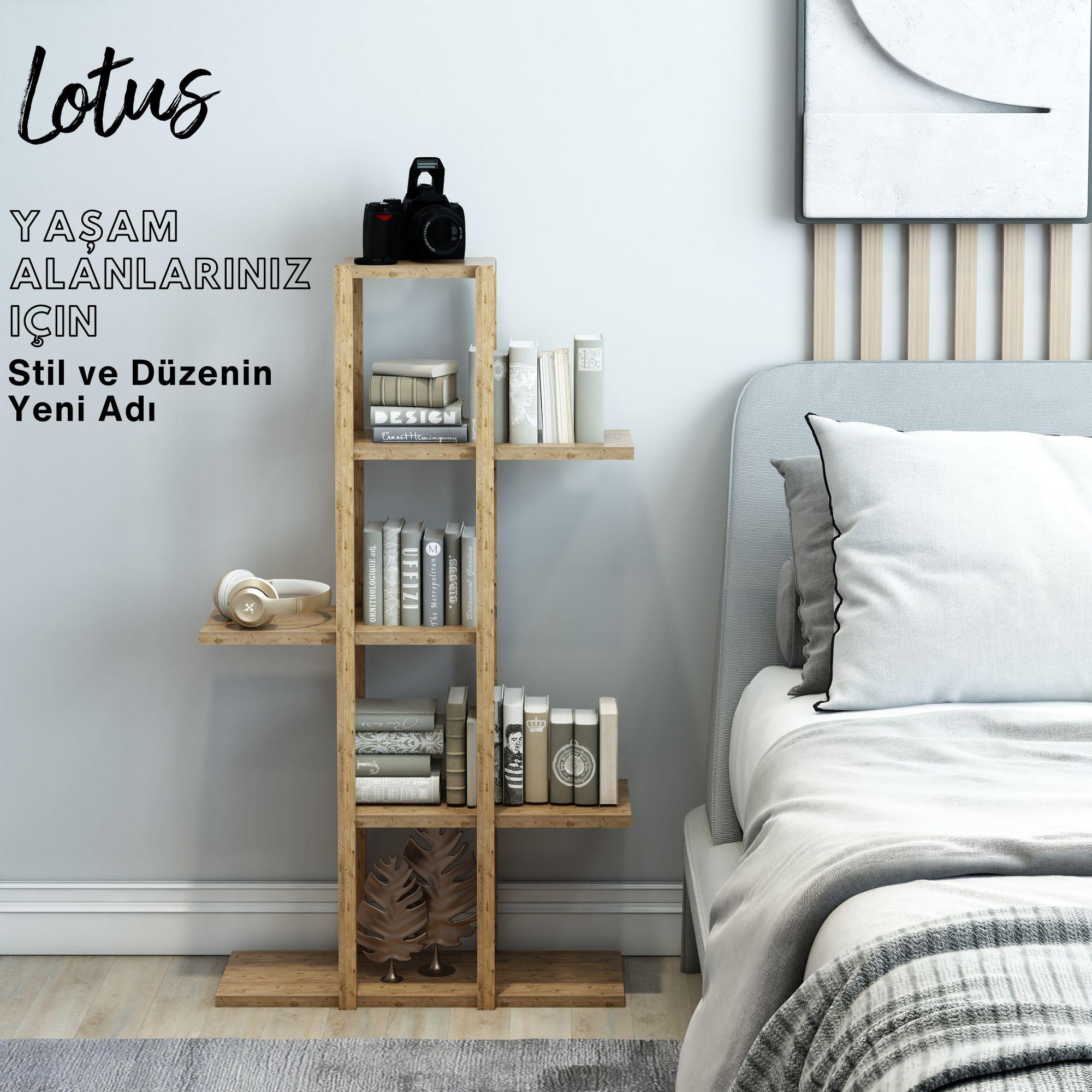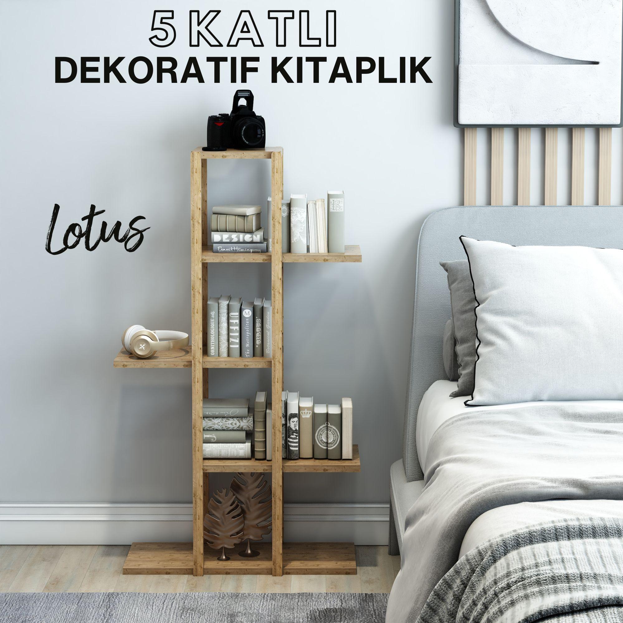 Lotus Ahşap 5 Katlı Kitaplık / Dekoratif Raf / Çok Amaçlı Kullanım / Şık ve Ergonomik / Demonte ve Kolay Kurulum