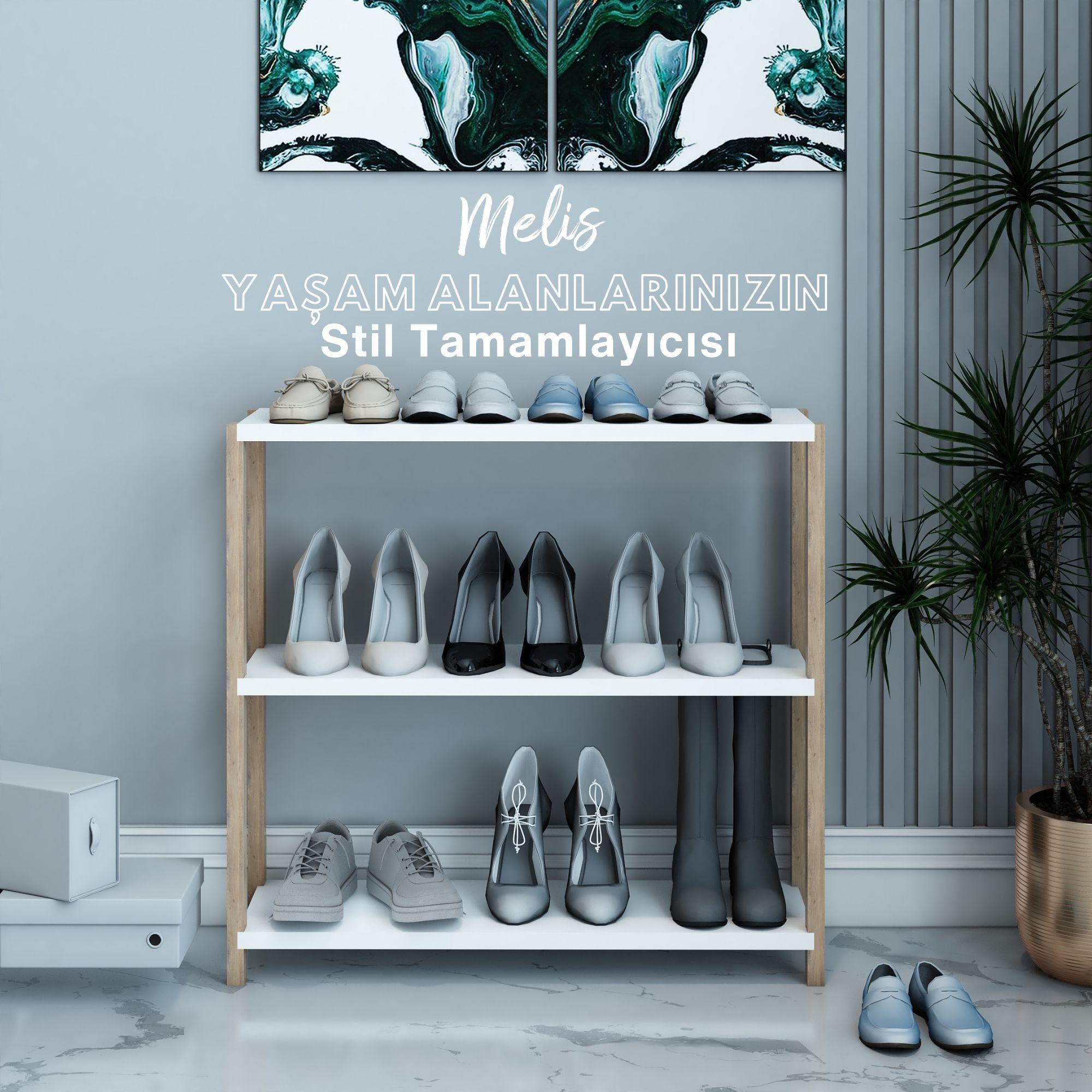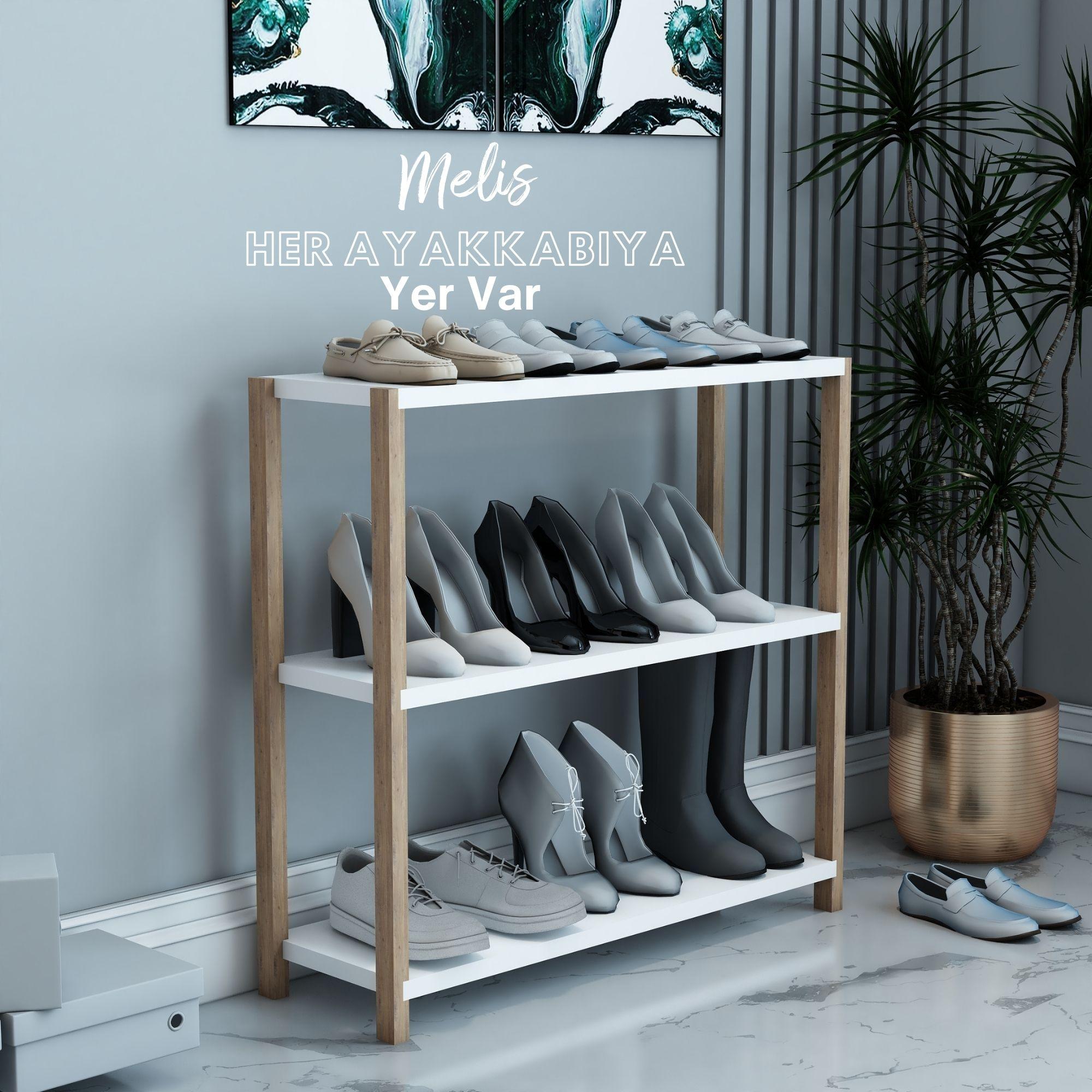 Jest Dekor Konsept Melis 3 Raflı Ahşap Ayakkabılık, ayakkabılarınızı düzenlemenin yanı sıra, kitaplık, banyo düzenleyicisi, mutfak rafı ve ofis organizeri olarak da kullanılabilecek çok amaçlı bir üründür.