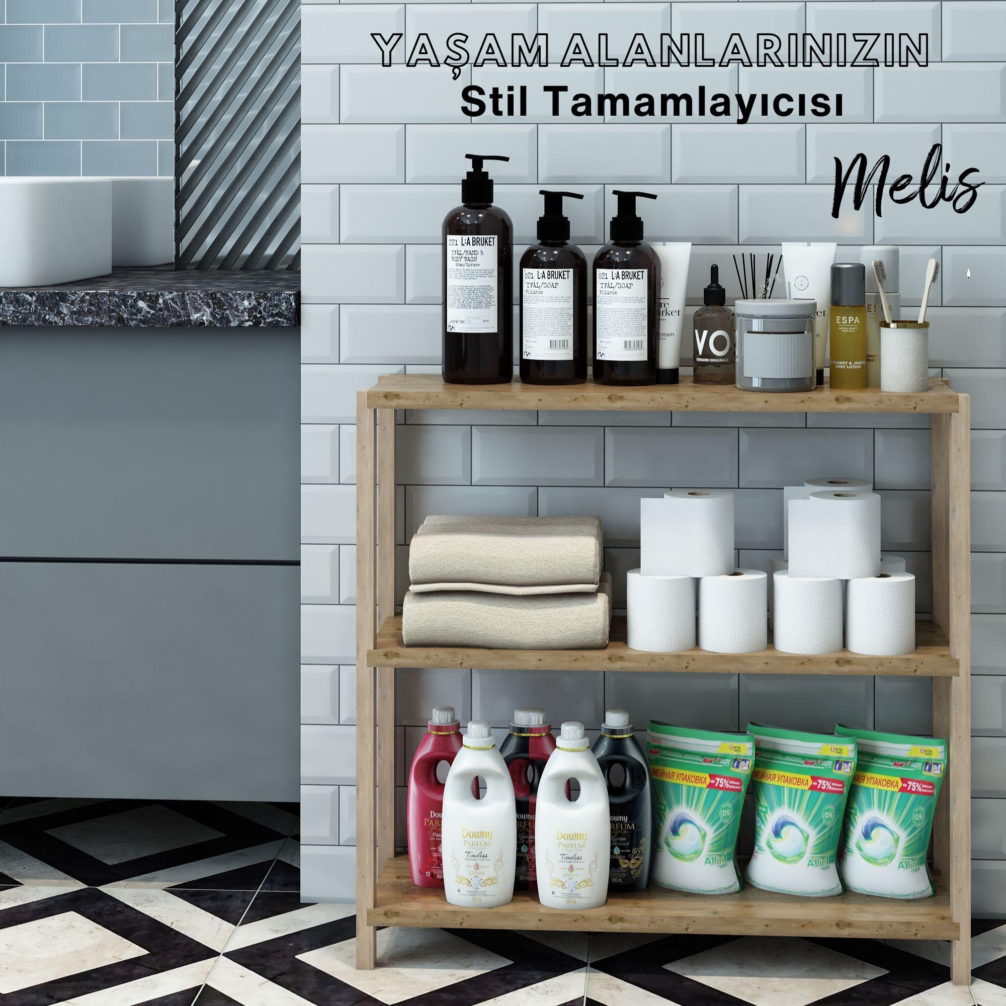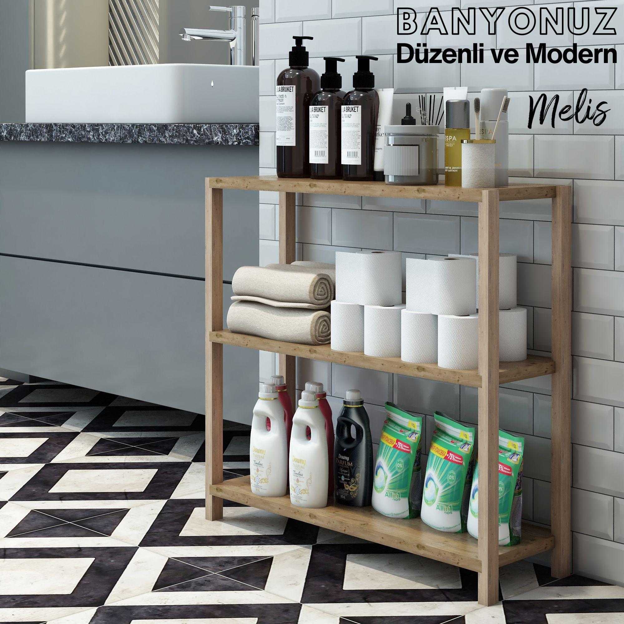 Jest Dekor Konsept Melis Çok Amaçlı 3 Katlı Ahşap Banyo Rafı, banyolarınızda havlu ve kozmetik düzenleyici olarak kullanmanızın yanı sıra, mutfaklarınızda baharatlık olarak, ofislerinizde organizer olarak, oturma odalarınızda dekoratif raf olarak kullanılabilir.