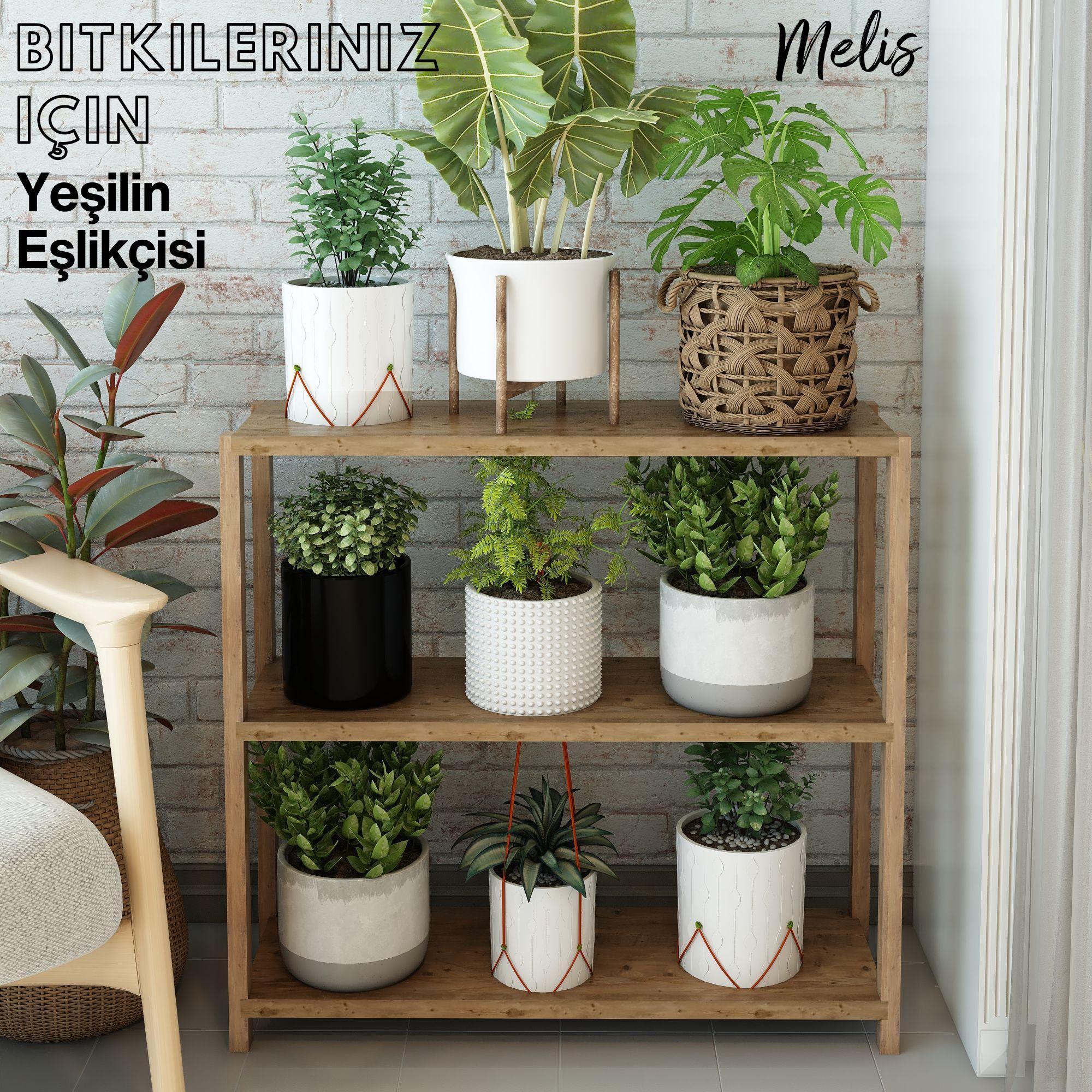 Jest Dekor Konsept Melis 3 Katlı Ahşap Banyo Rafı / Mutfak Rafı, Baharatlık / Saksılık / Ayakkabılık / Çok Amaçlı Dekoratif Raf, Organizer / Demonte ve Kolay Montaj