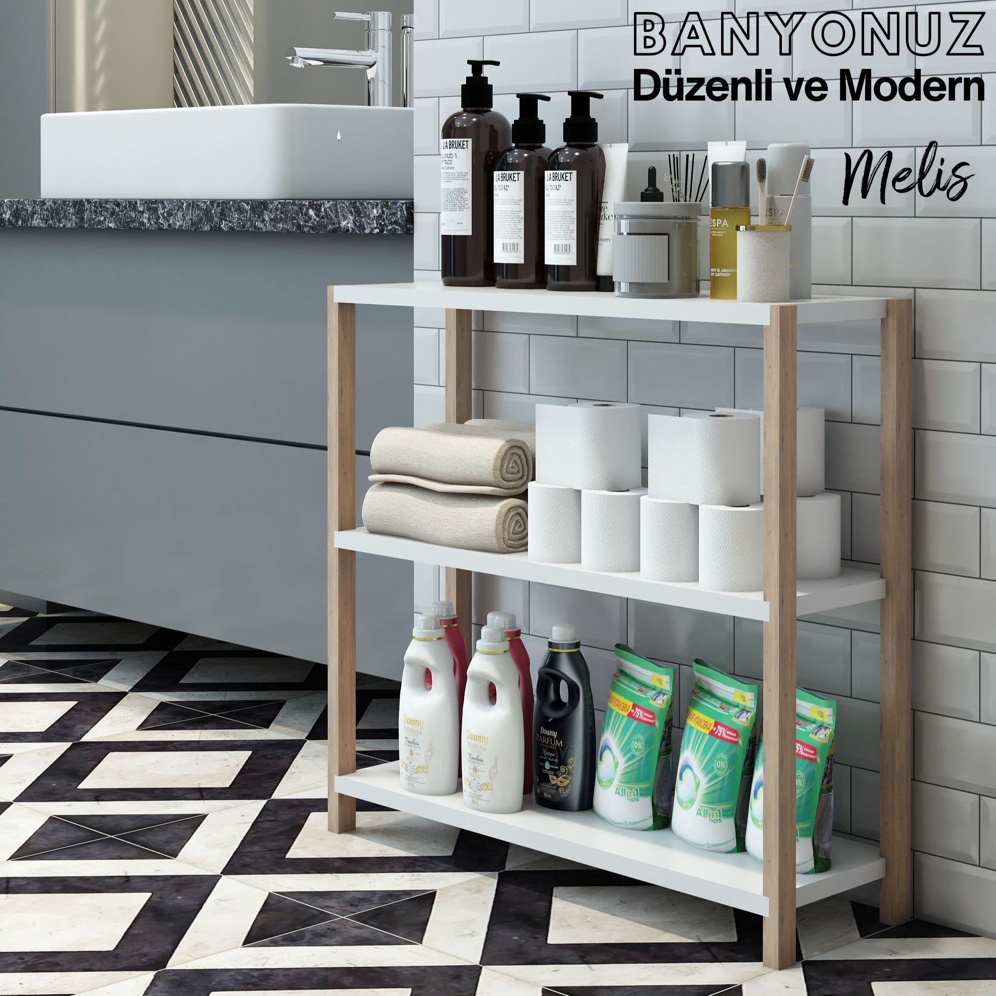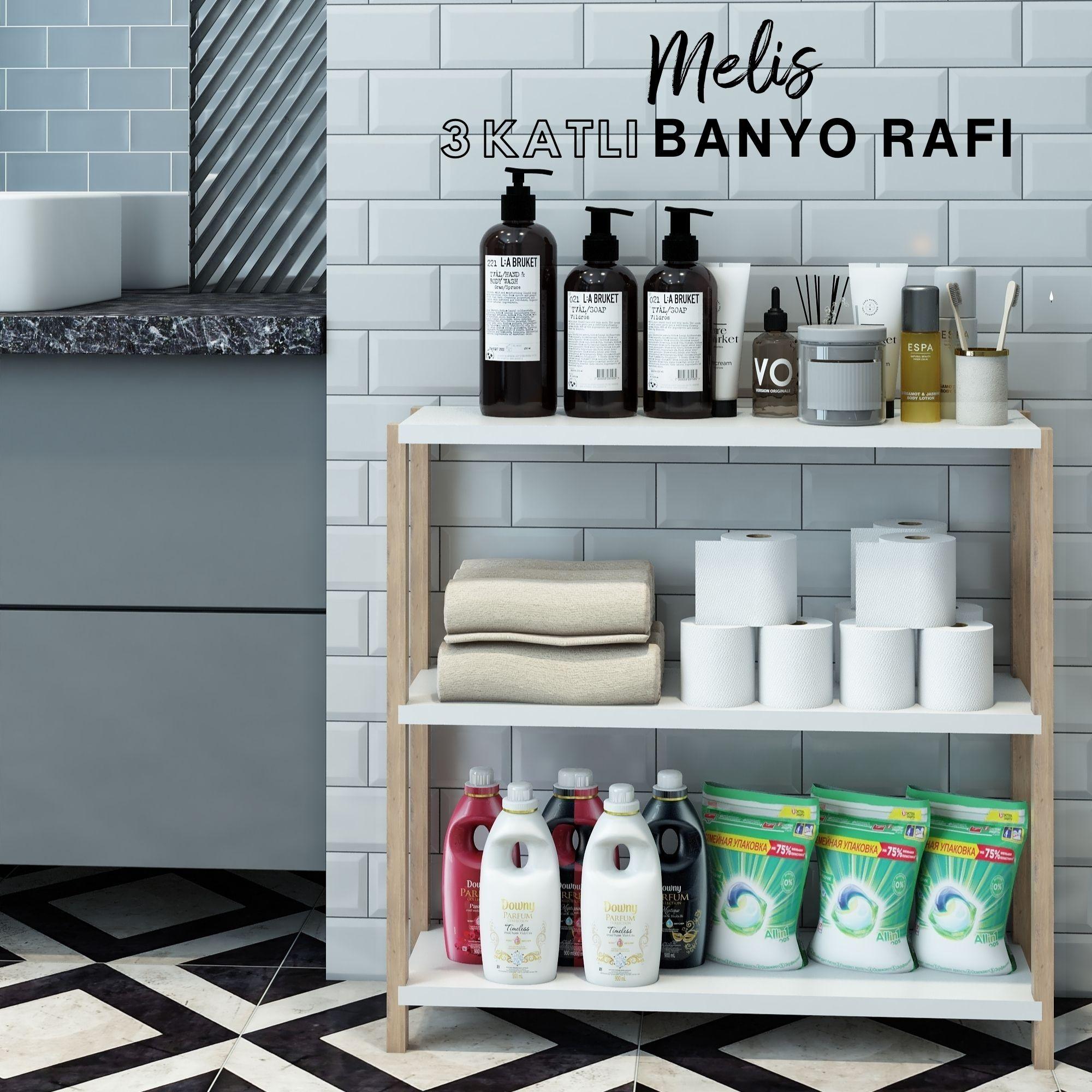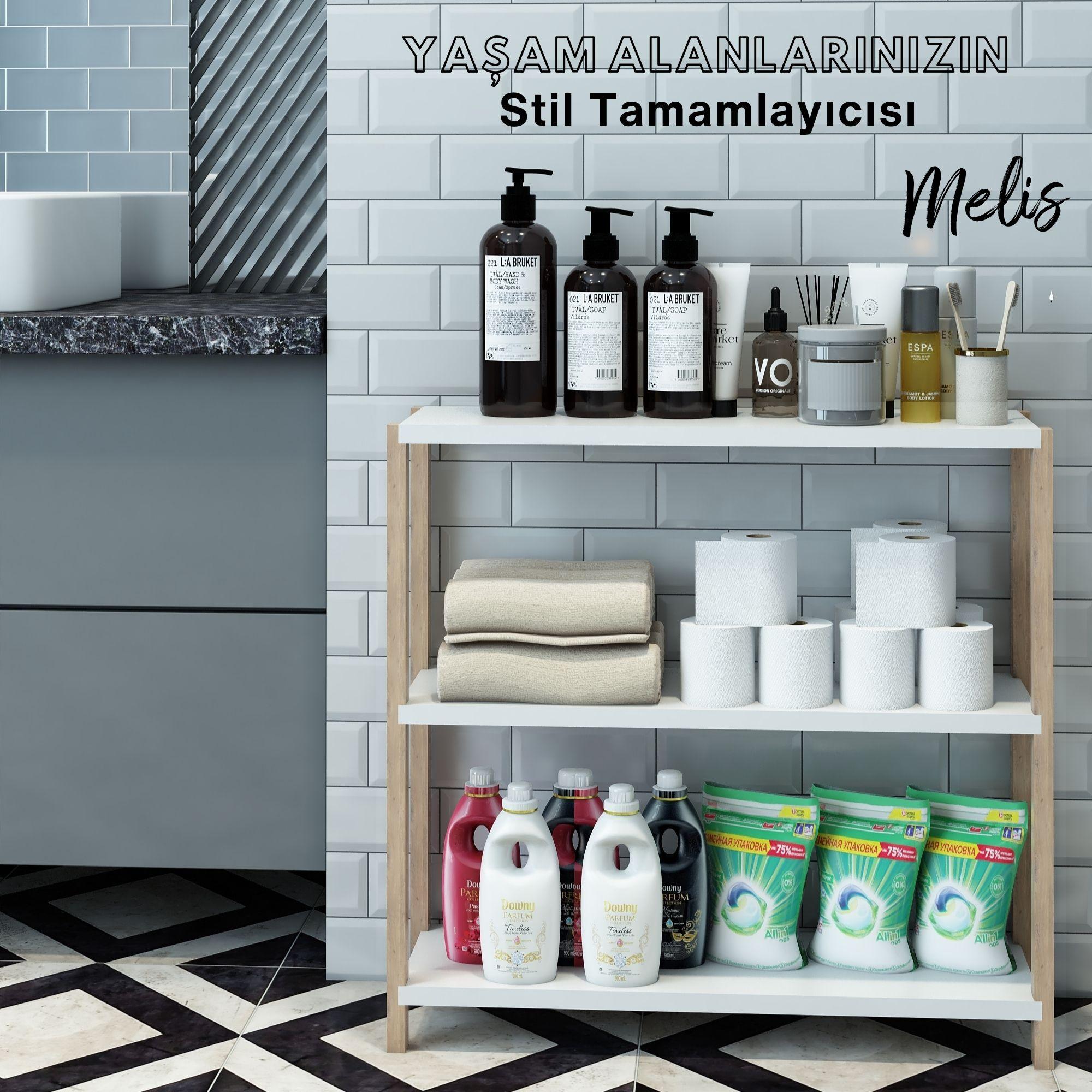 Jest Dekor Konsept Melis Çok Amaçlı 3 Katlı Ahşap Banyo Rafı, banyolarınızda havlu ve kozmetik düzenleyici olarak kullanmanızın yanı sıra, mutfaklarınızda baharatlık olarak, ofislerinizde organizer olarak, oturma odalarınızda dekoratif raf olarak kullanılabilir.