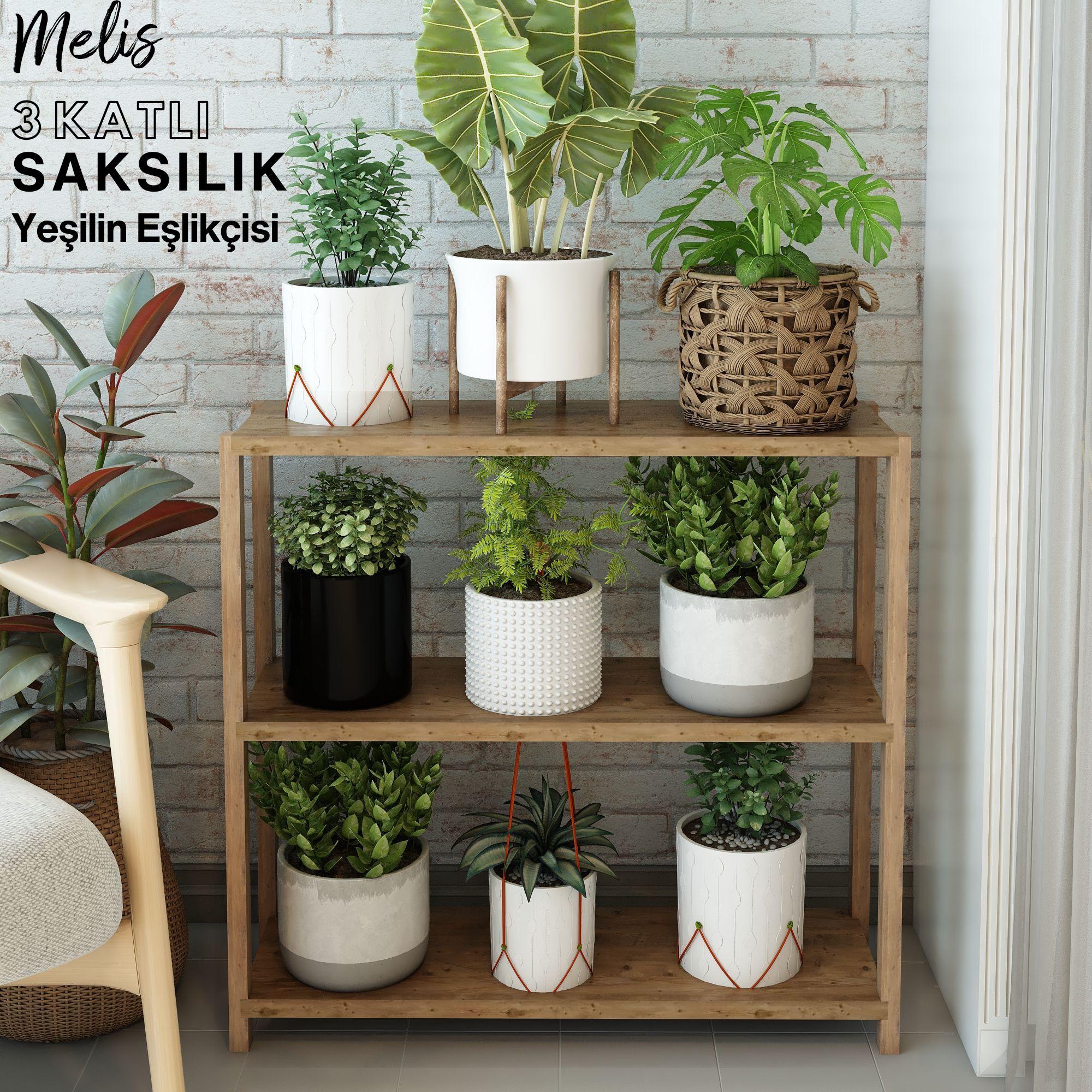 Jest Dekor Konsept Melis Ahşap 3 Katlı Çiçeklik, sadece bitkilerinizi sergilemek için değil, aynı zamanda kitaplık, banyo düzenleyici, mutfak rafı ve ofis organizatörü olarak da kullanılabilecek çok amaçlı bir üründür.