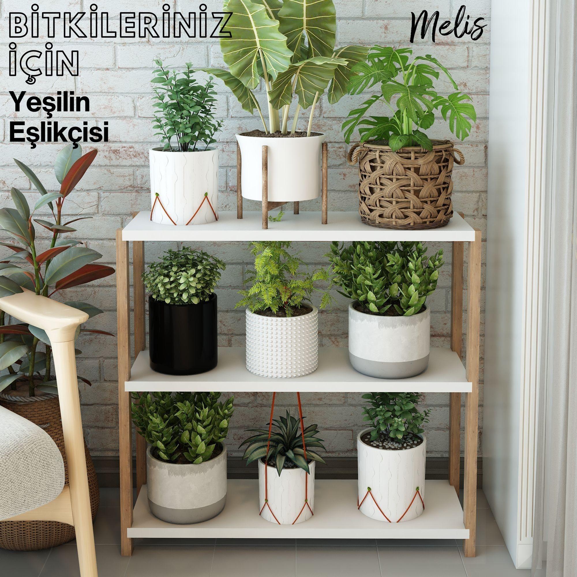 Jest Dekor Konsept Melis 3 Katlı Ahşap Yan Sehpa / Banyo Rafı / Mutfak Rafı, Baharatlık / Saksılık / Ayakkabılık / Çok Amaçlı Dekoratif Raf, Organizer / Demonte ve Kolay Montaj