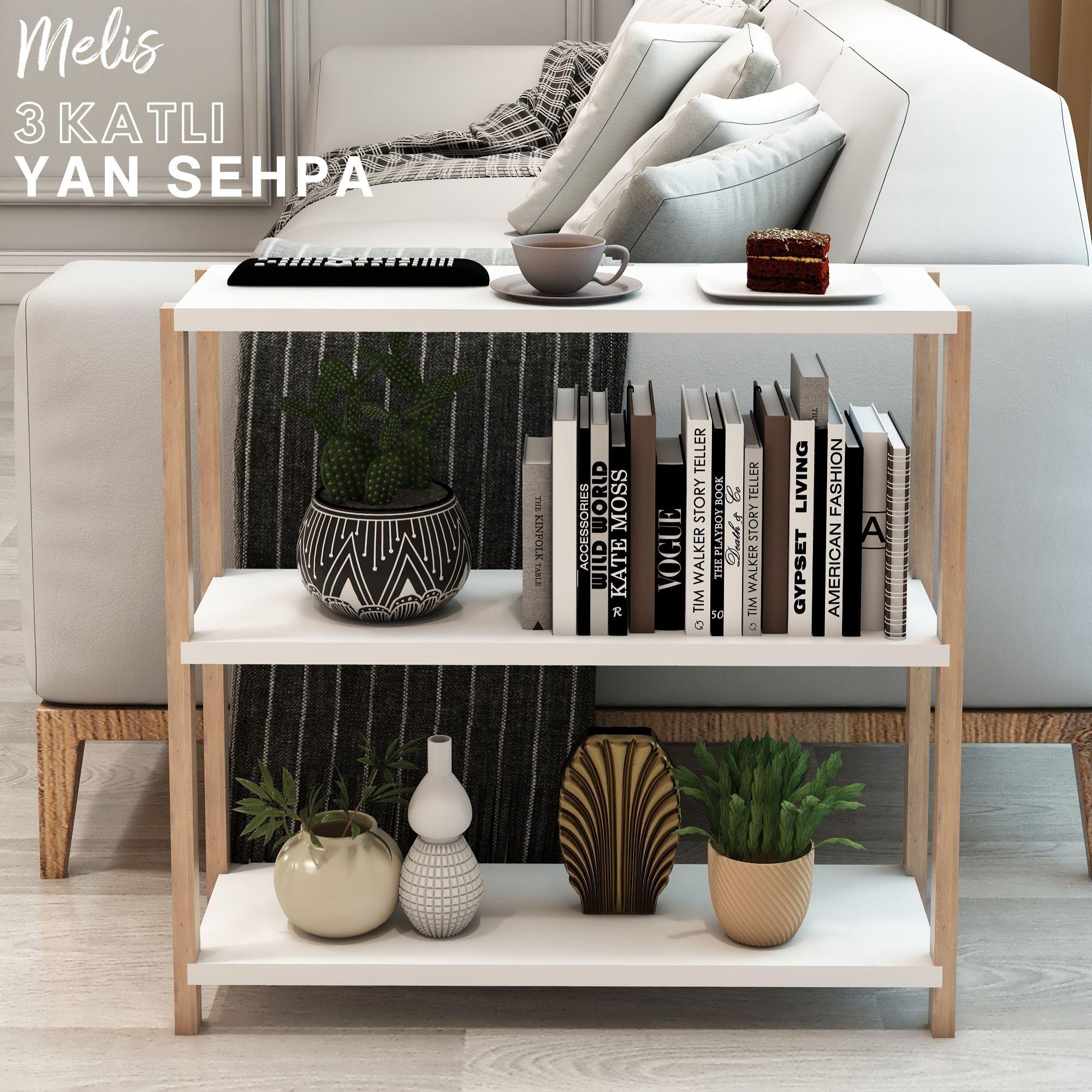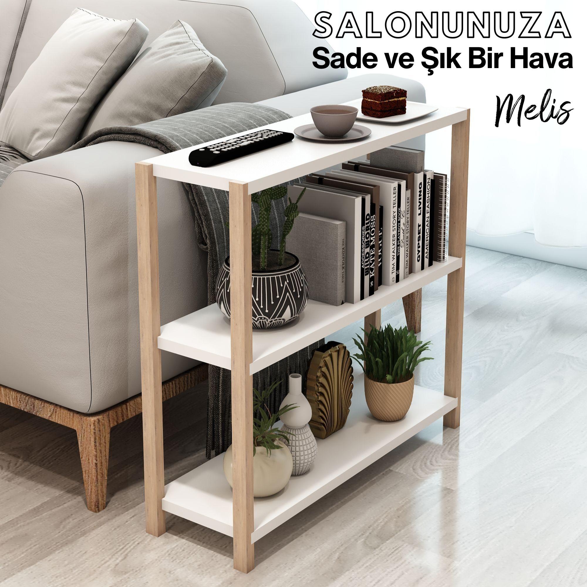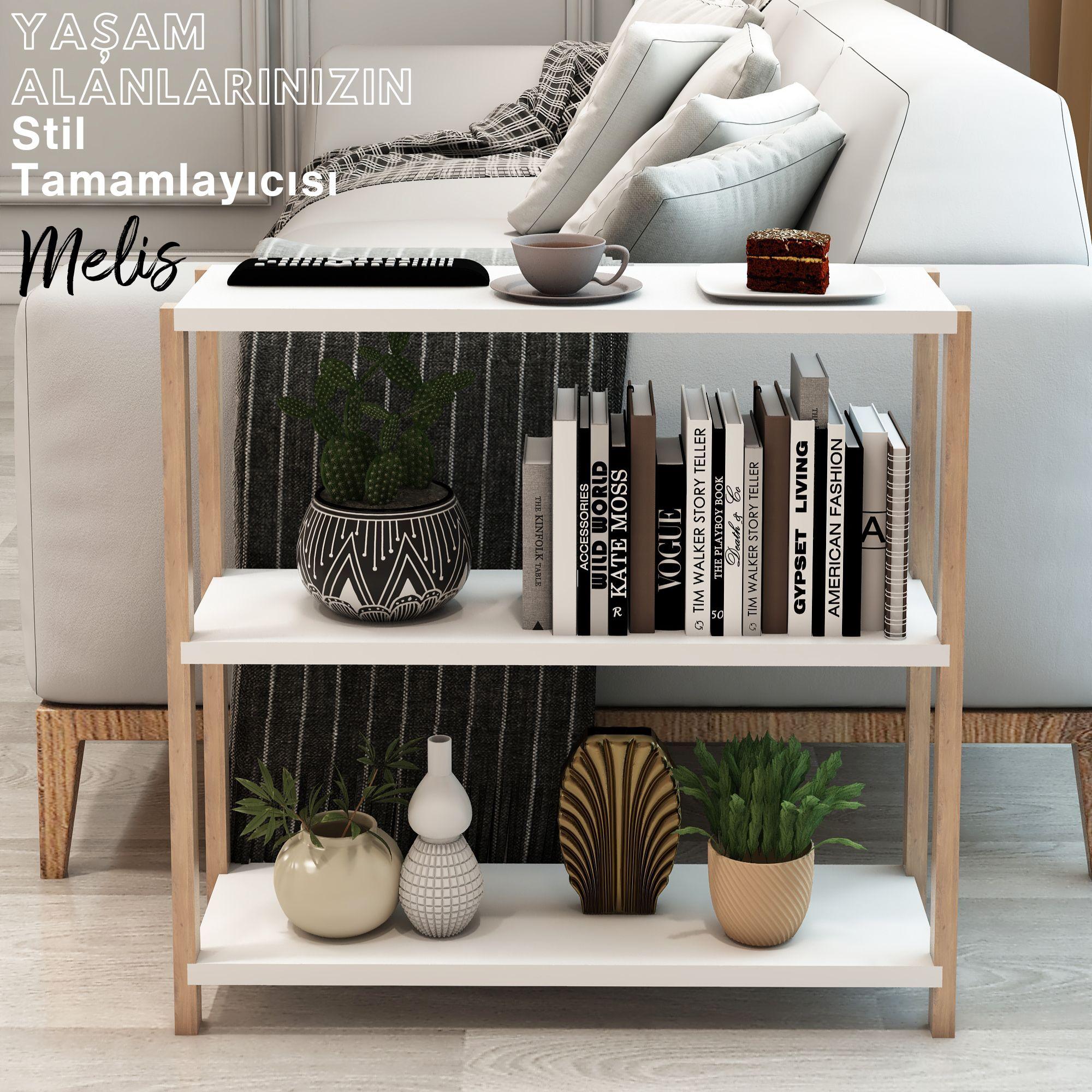 Jest Dekor Konsept Melis 3 Raflı Ahşap Yan Sehpa, Sehpa olarak kullanabilmenizin yanı sıra, kitaplık, banyo düzenleyici, mutfak rafı ve ofis organizeri olarak da kullanılabilecek çok amaçlı bir üründür.