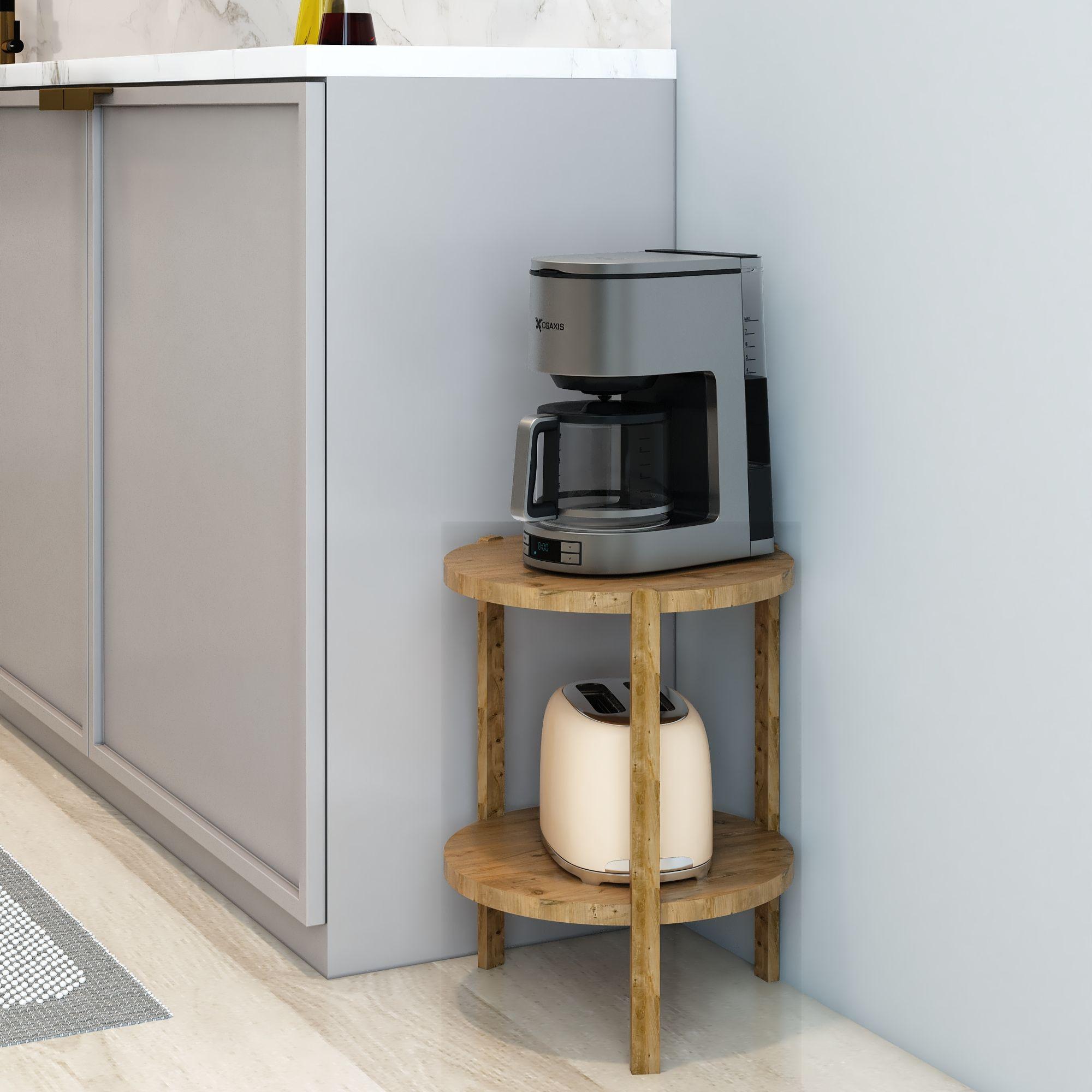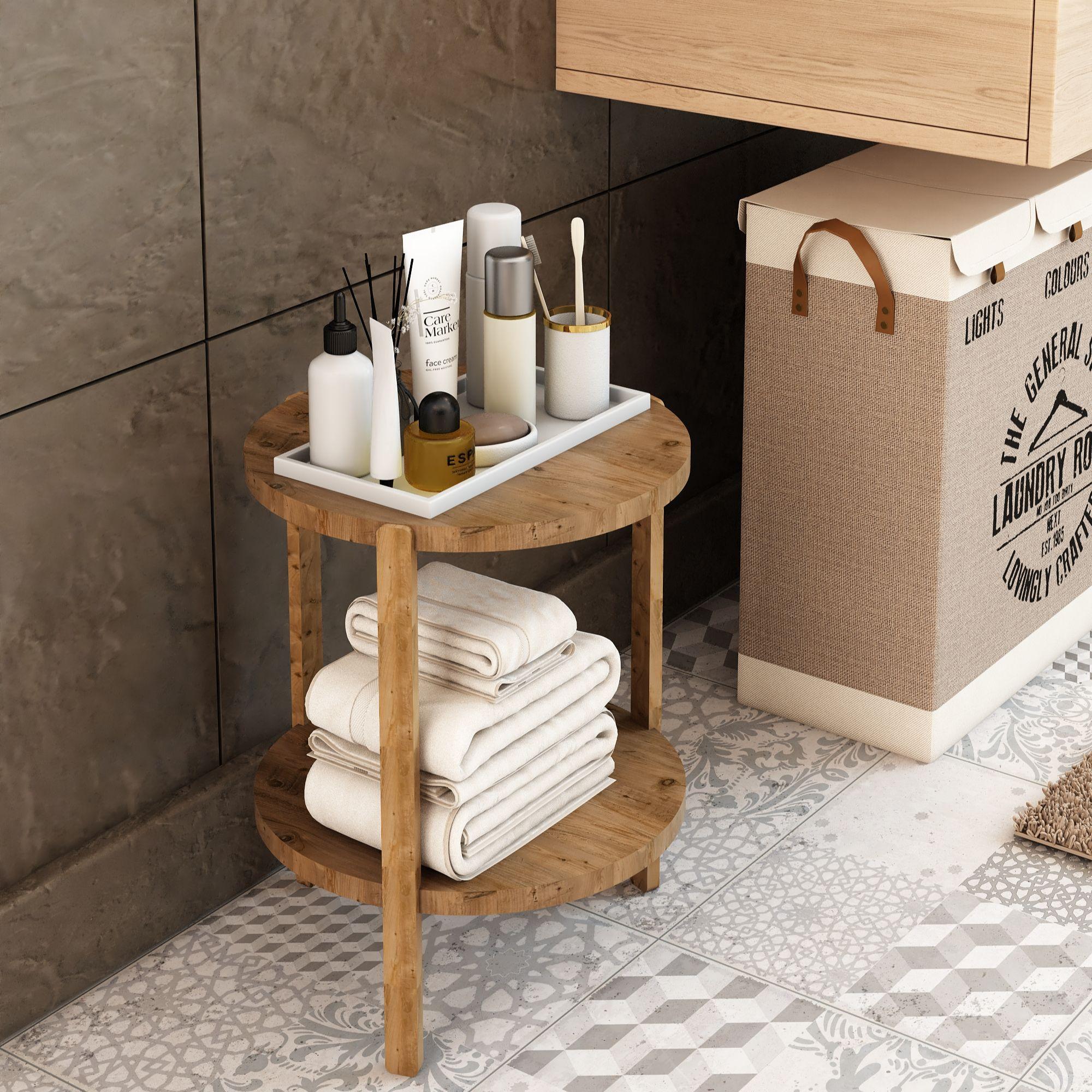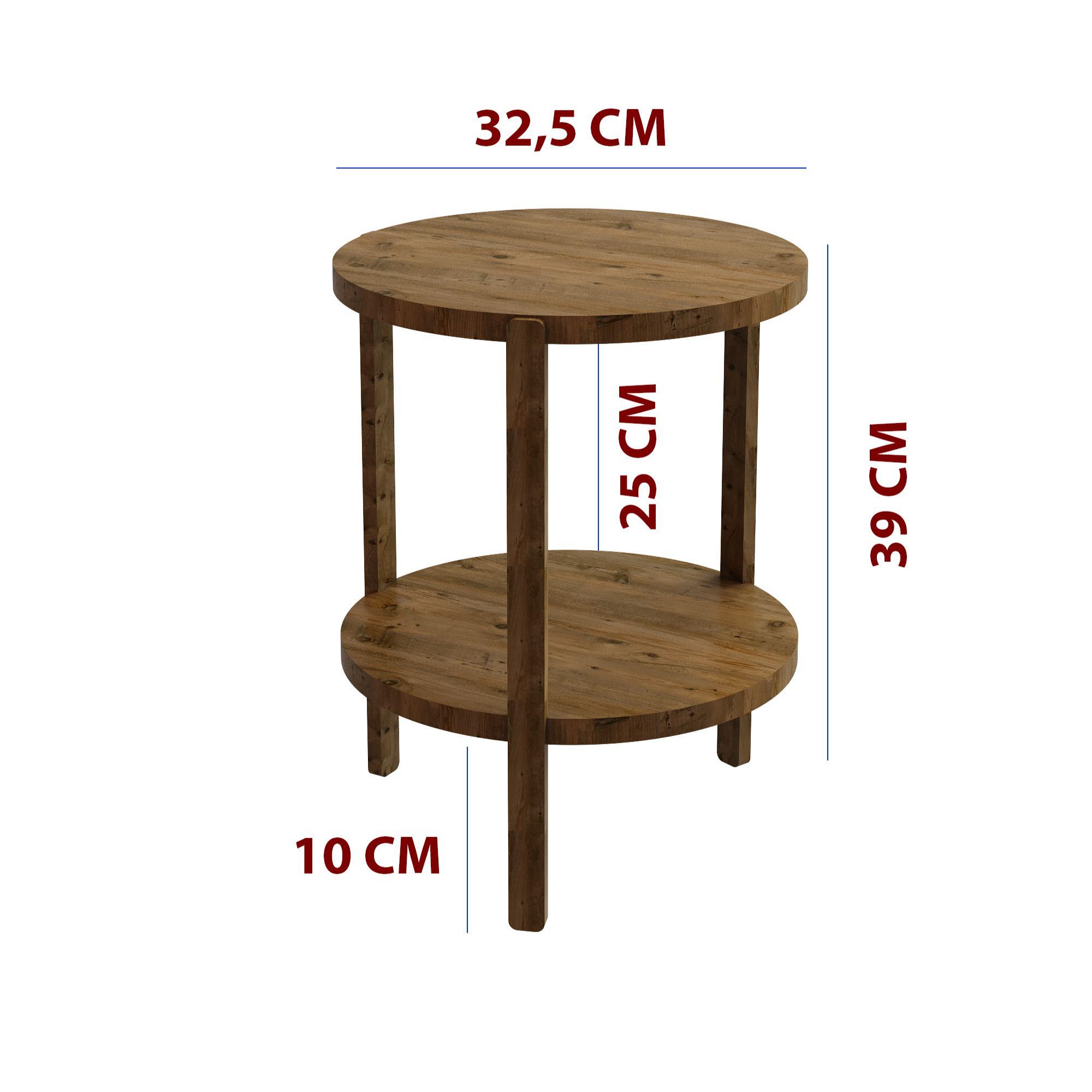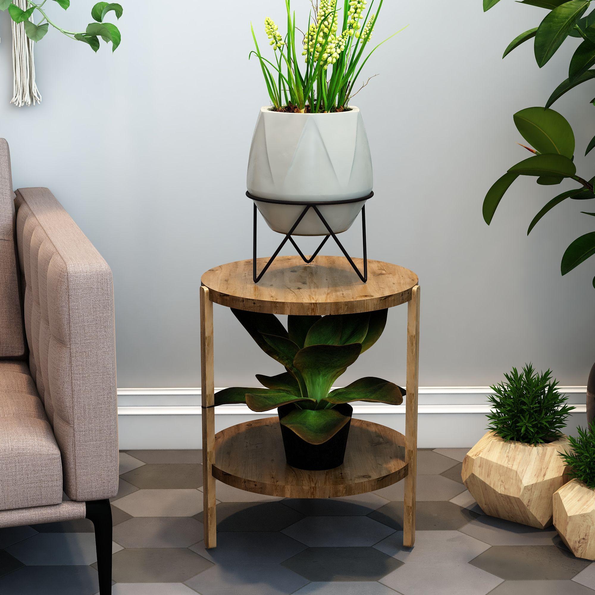 Miray Atlantik Çam 2 Katlı Yuvarlak Ahşap Çok Amaçlı Sehpa / Saksılık-Çiçeklik / Dekoratif Raf / Yüksek Kalite, Şık Tasarım