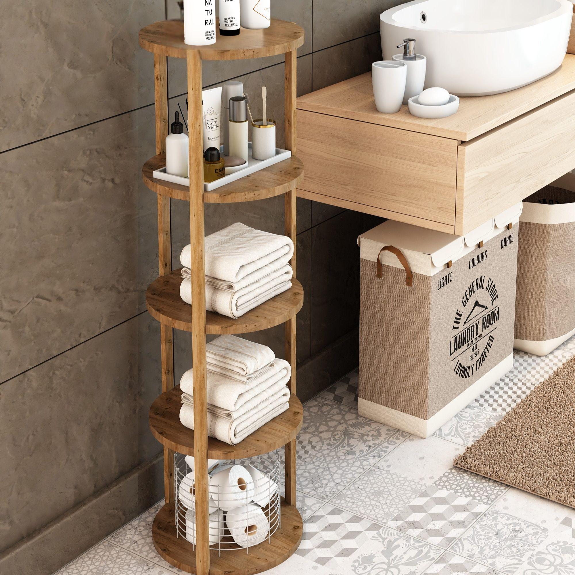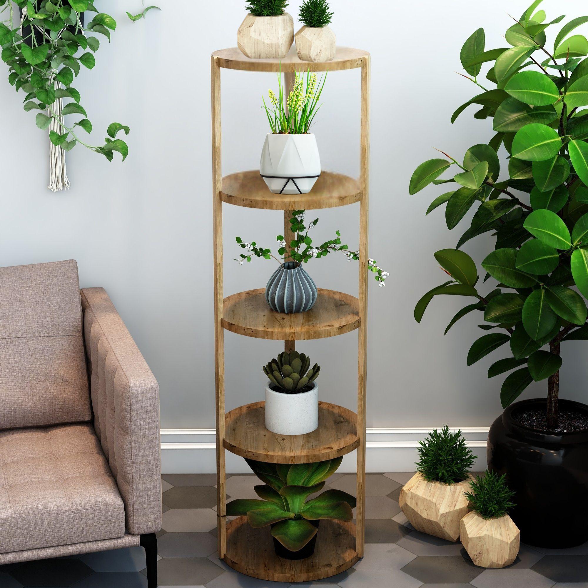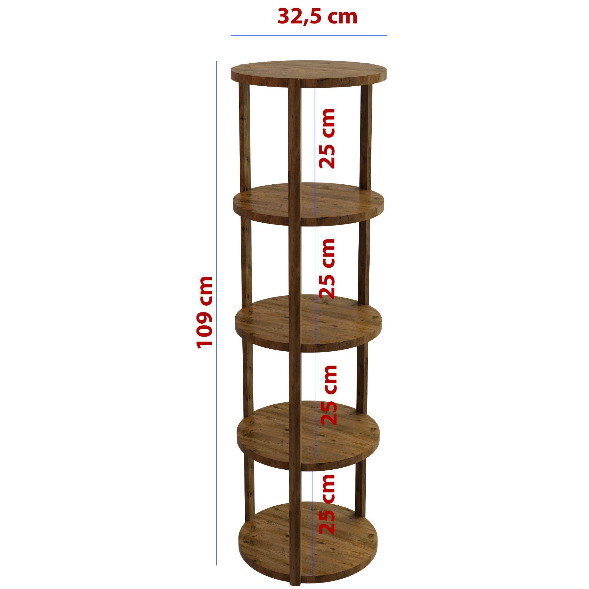 Miray Atlantik Çam 5 Katlı Yuvarlak Ahşap Çok Amaçlı Sehpa / Saksılık-Çiçeklik / Dekoratif Raf / Yüksek Kalite, Şık Tasarım