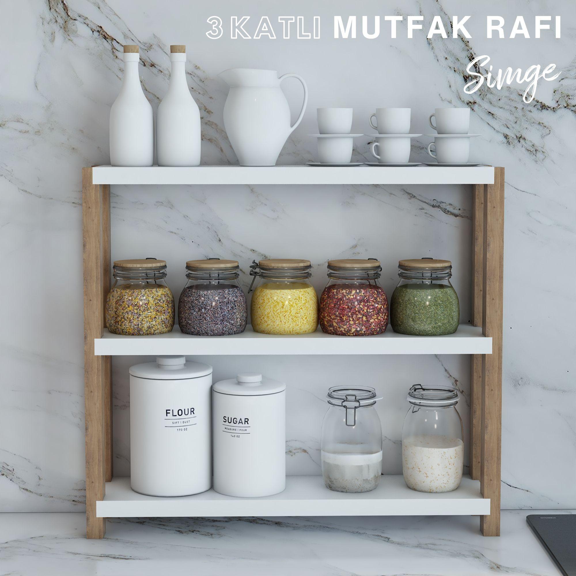 Simge 3 Katlı Ahşap Mutfak Rafı / Baharatlık / Dekoratif Raf / Çok Amaçlı Kullanım / Demonte ve Kolay Montaj