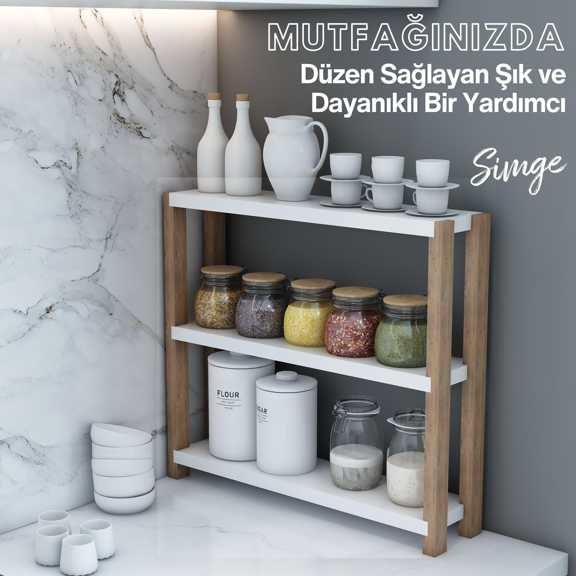 Jest Dekor Konsept Simge Çok Amaçlı 3 Katlı Ahşap Mutfak Rafı,mutfaklarınızda baharatlık olarak kullanabileceğiniz gibi, banyolarınızda havlu ve kozmetik düzenleyici olarak, ofislerinizde organizer olarak, oturma odalarınızda dekoratif raf olarak kullanılabilecek harika bir üründür.