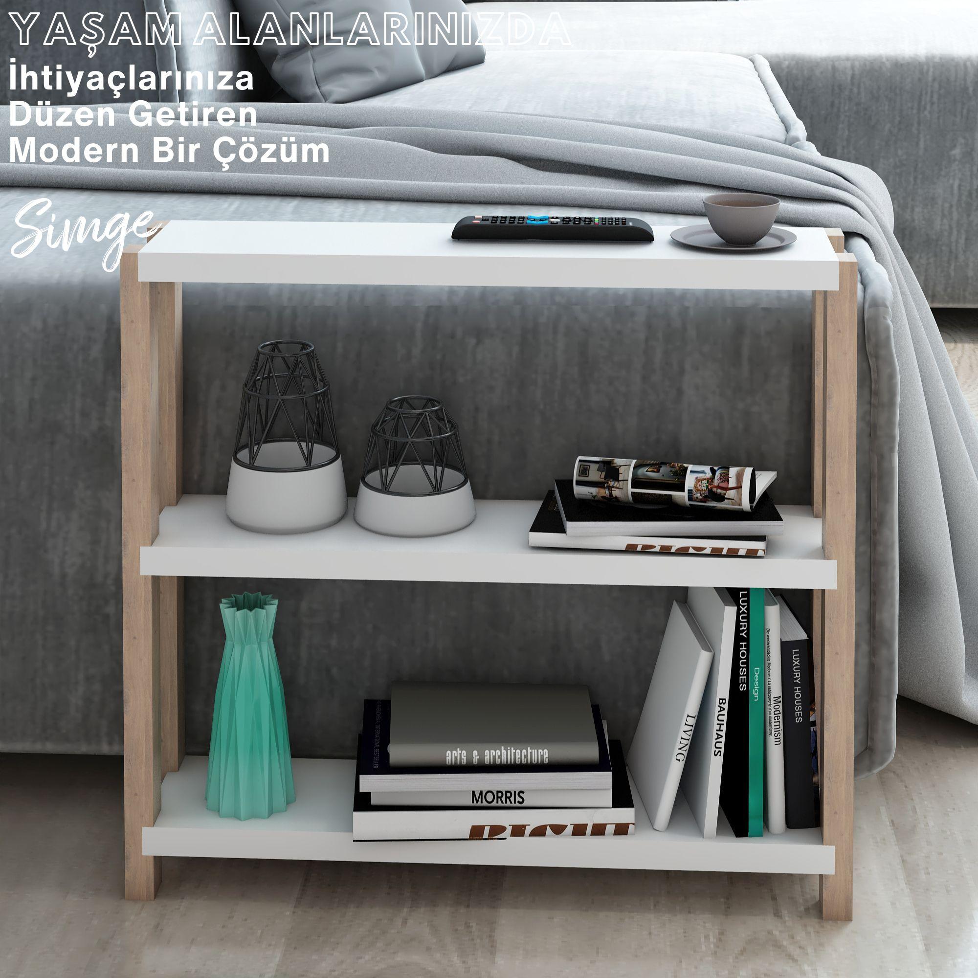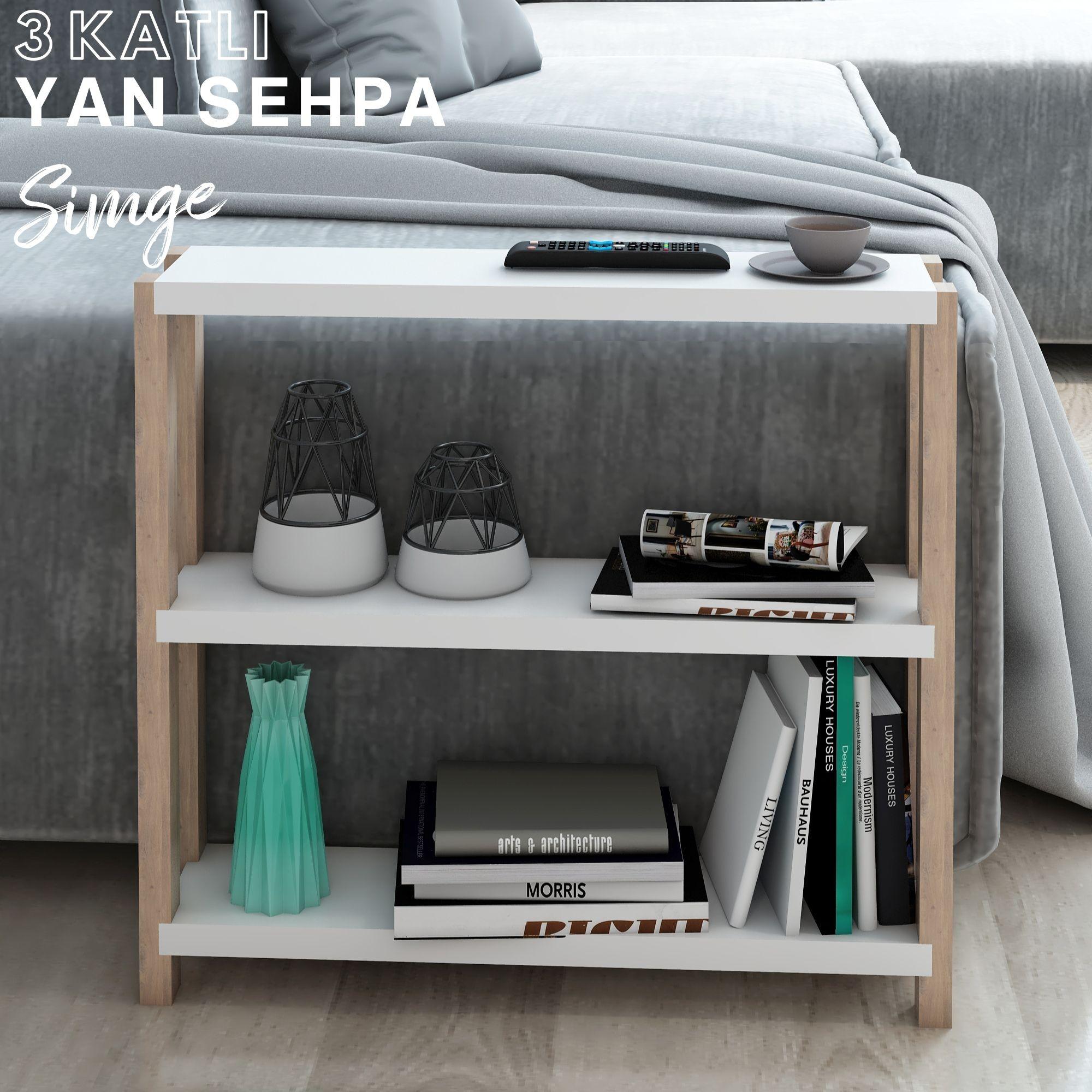 Simge 3 Katlı Ahşap Yan Sehpa / Dekoratif Raf / Çok Amaçlı Kullanım / Demonte ve Kolay Montaj