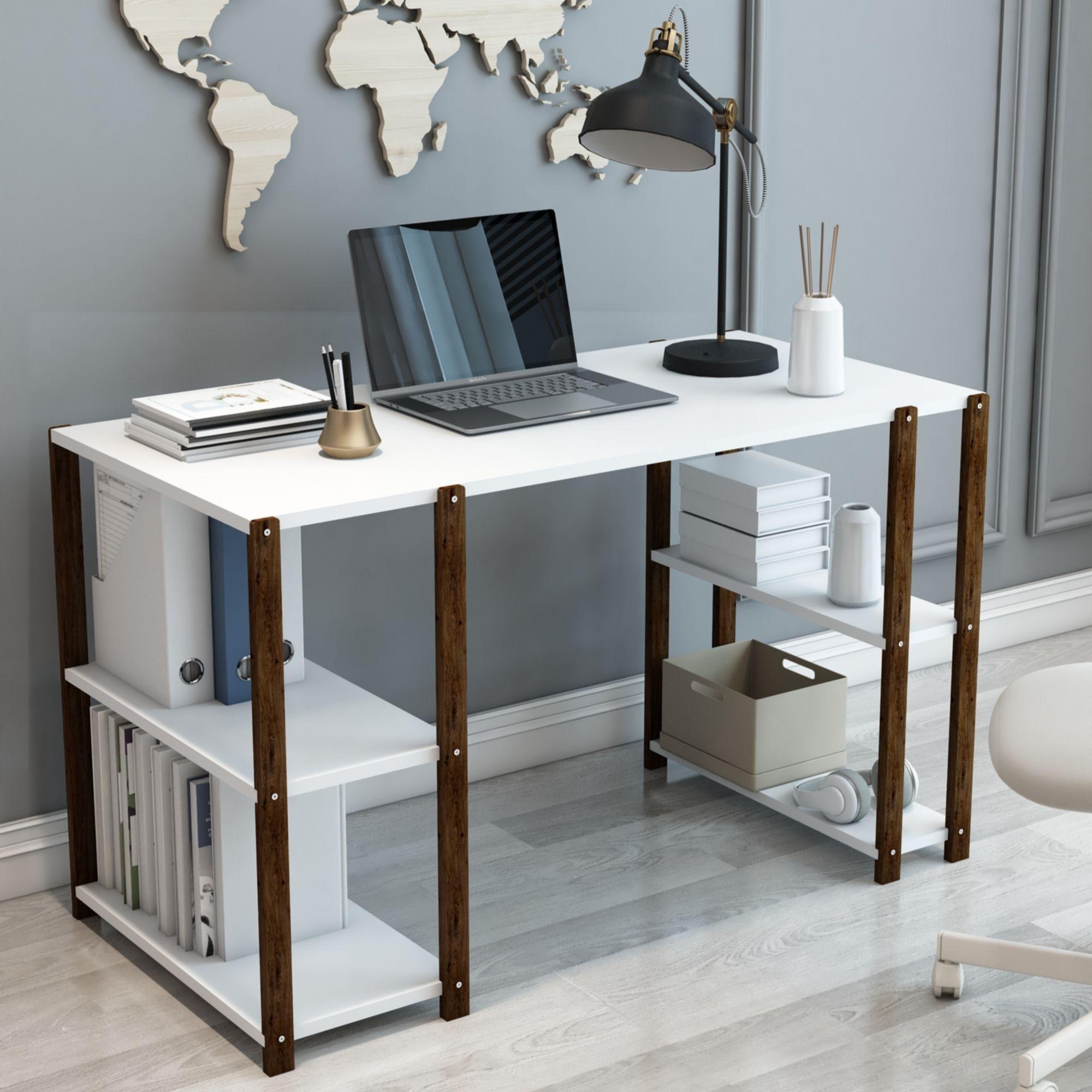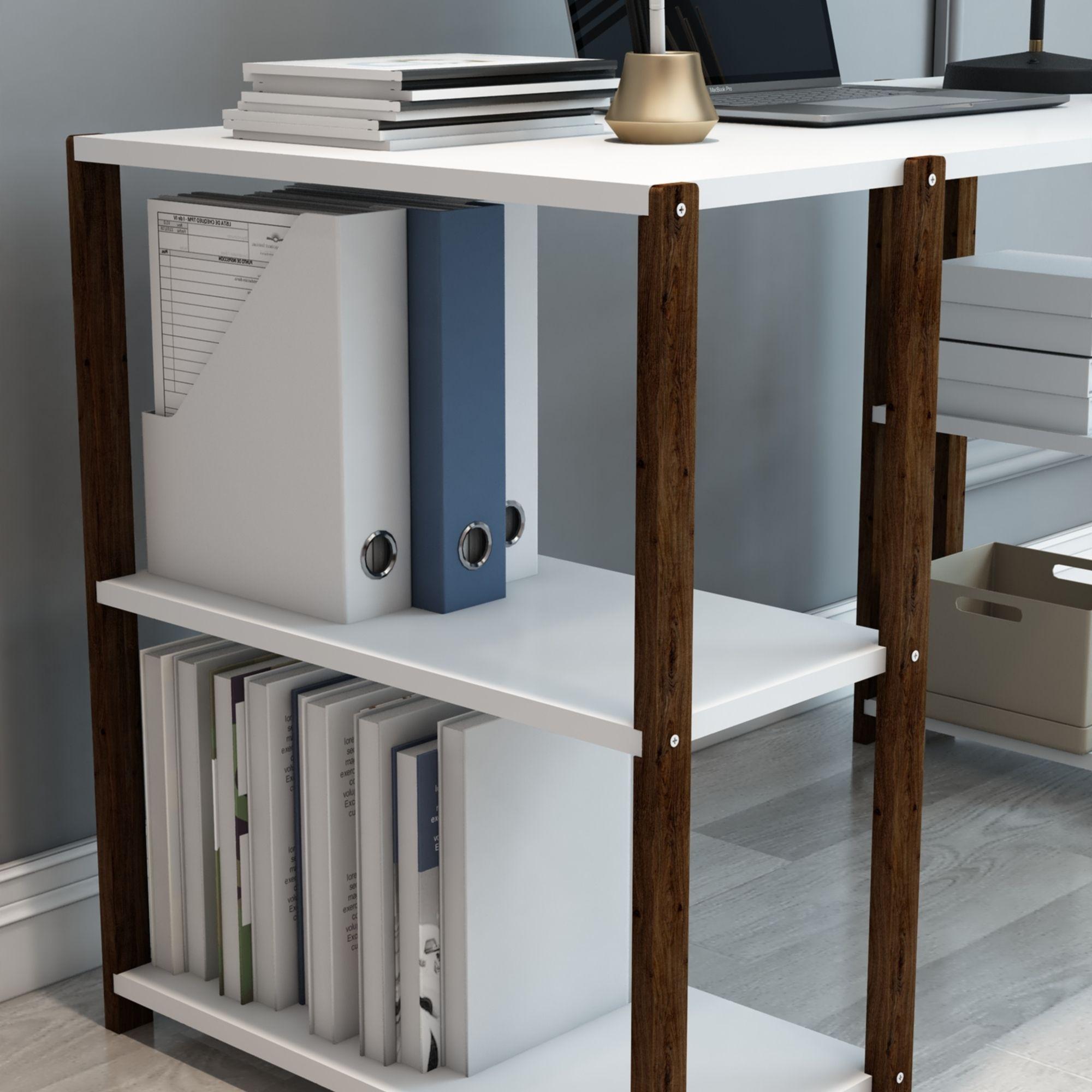 Vera Çalışma Masası / Kitaplıklı Ders, Bilgisayar Masası / Çift Yönlü Kullanım ( Beyaz )