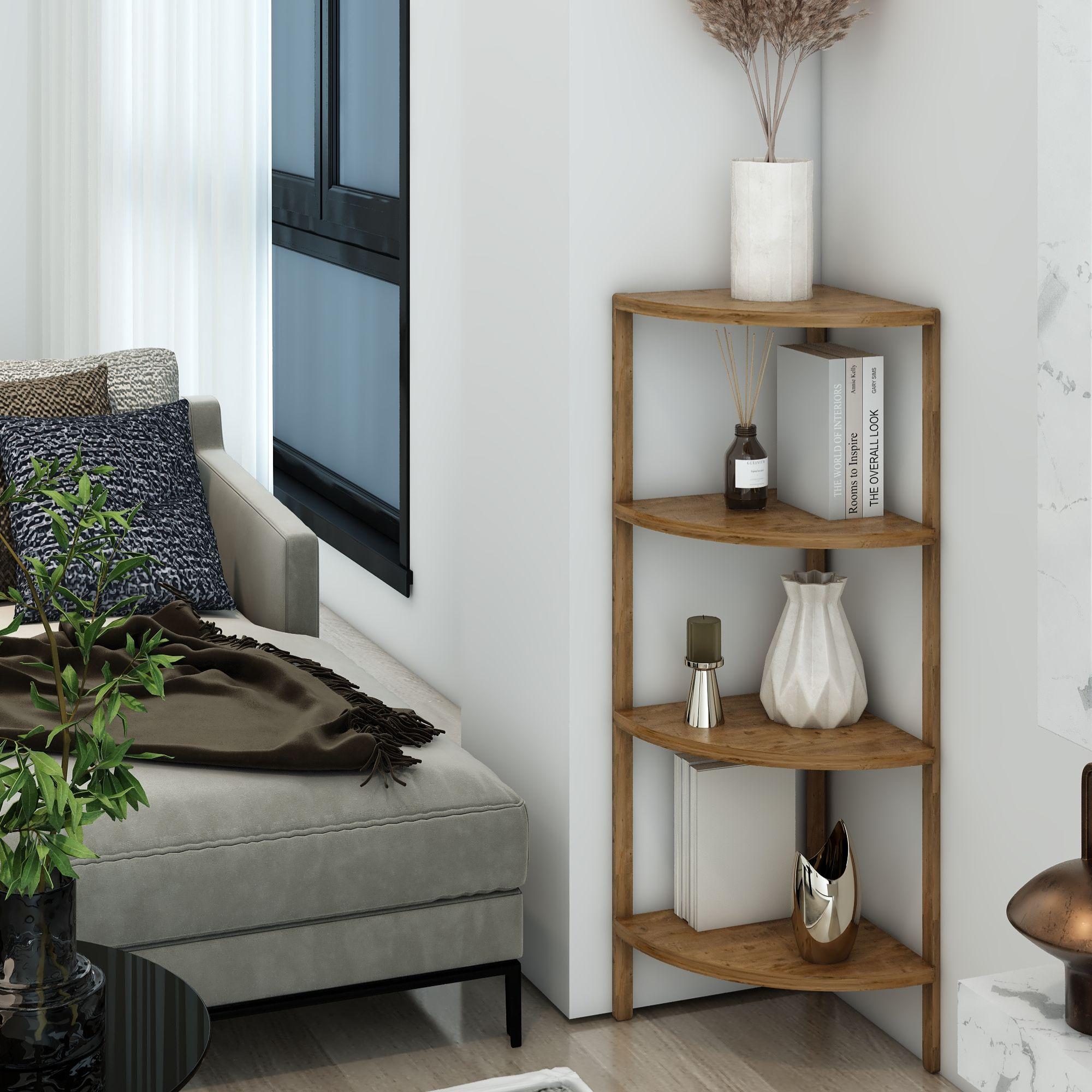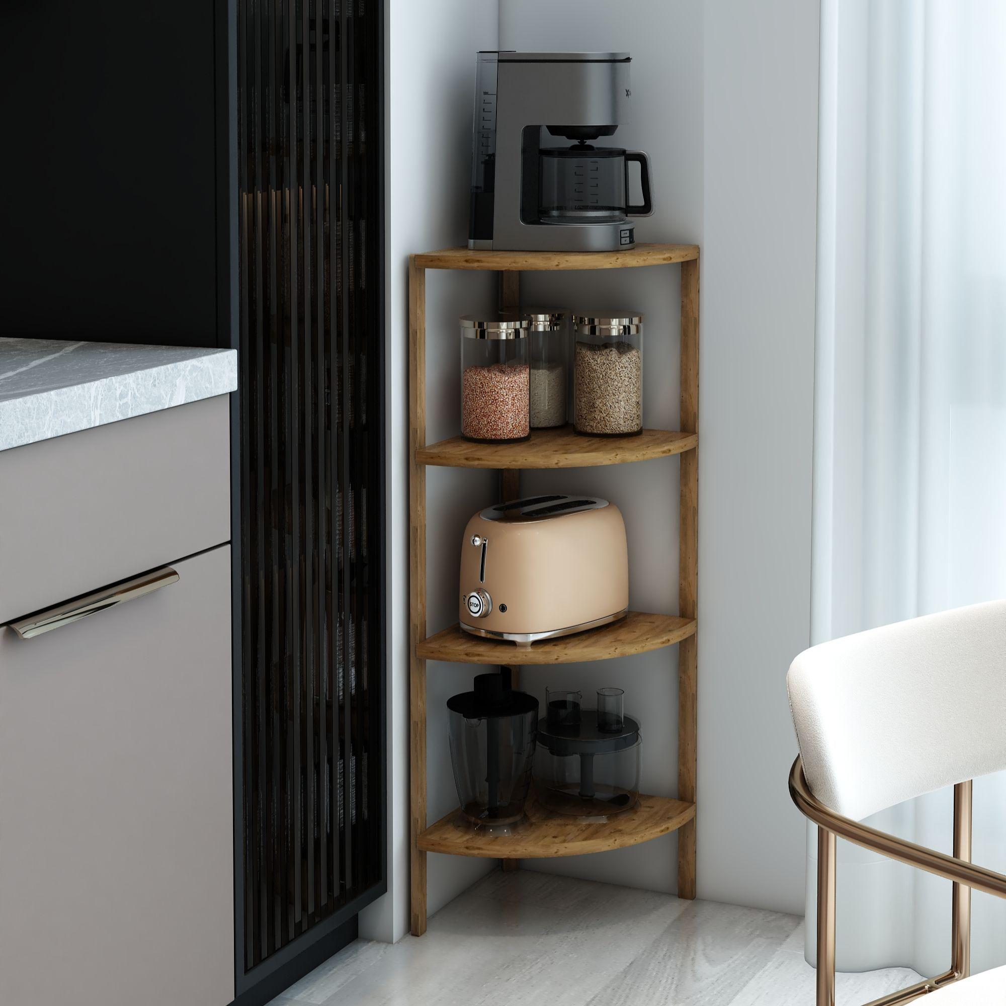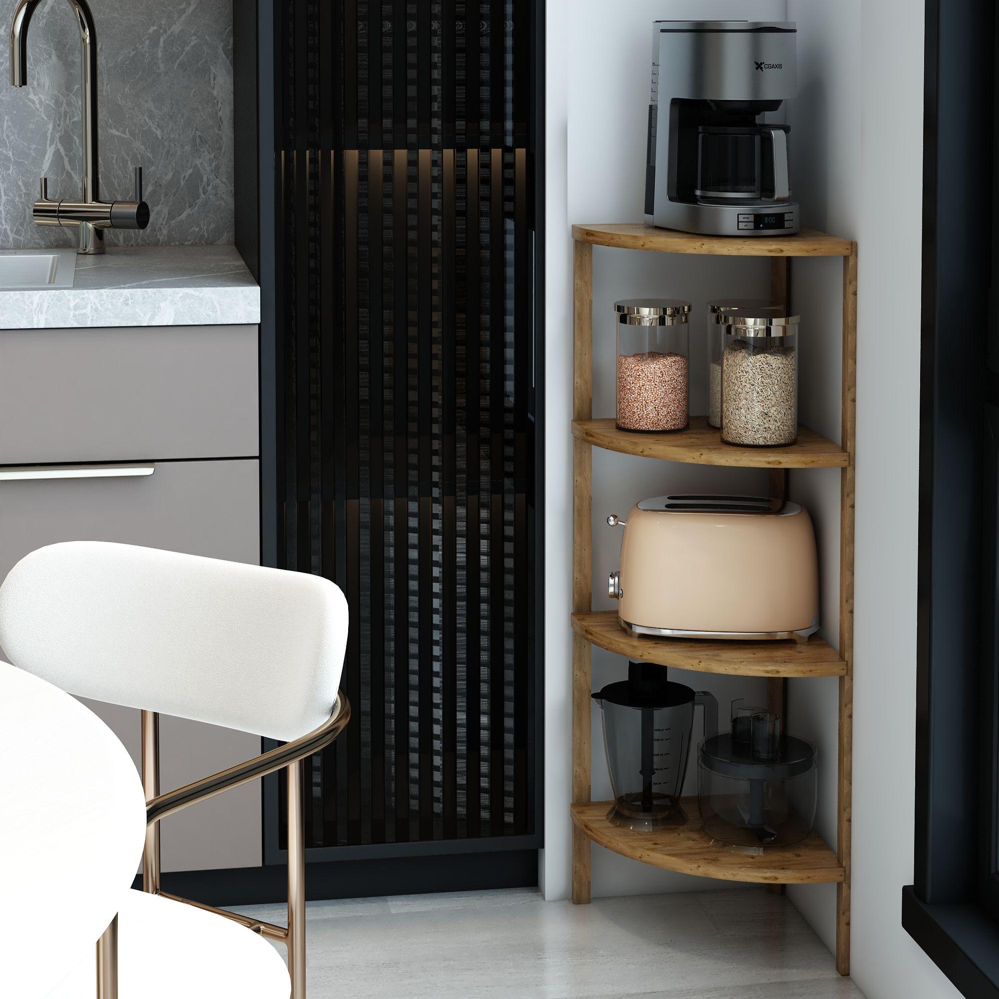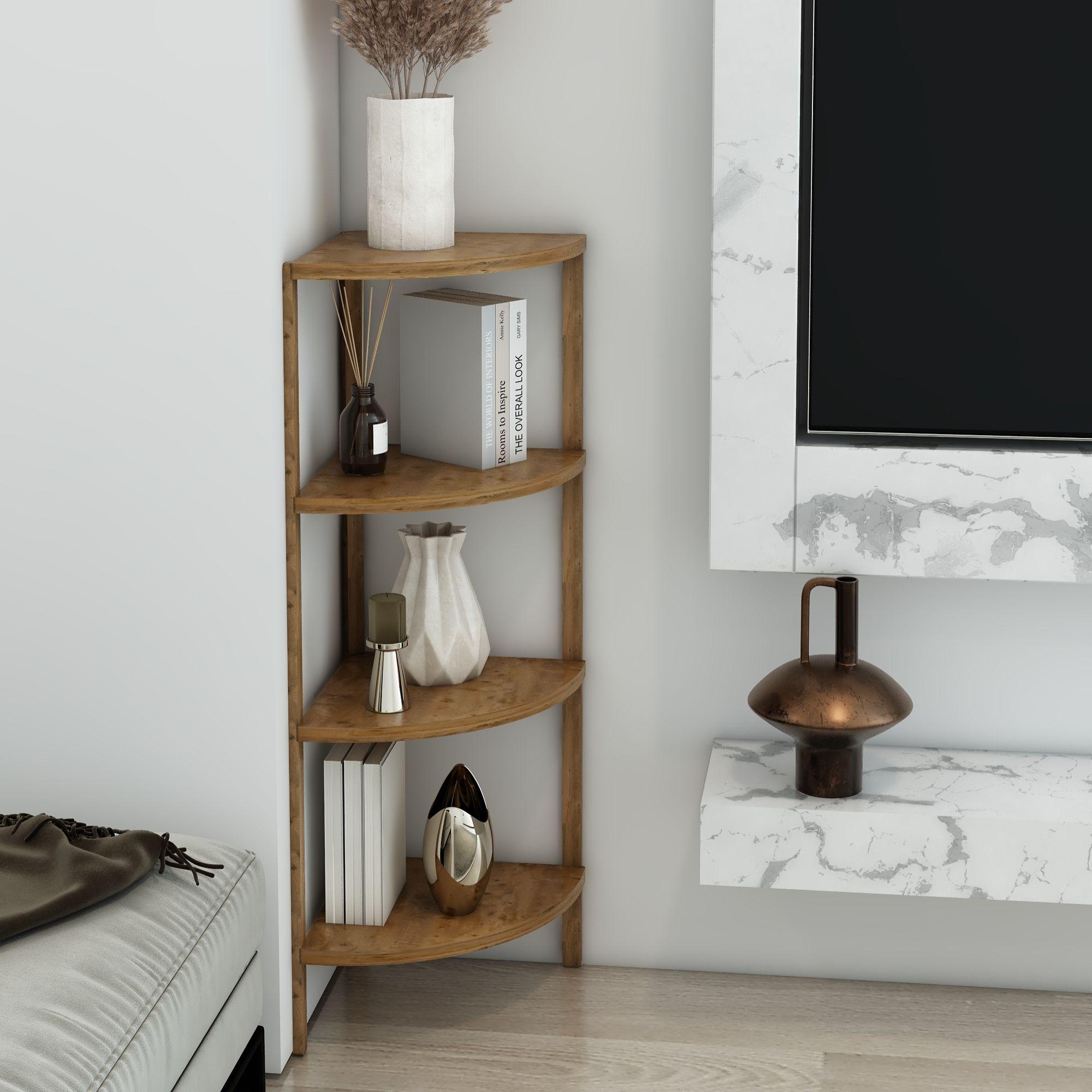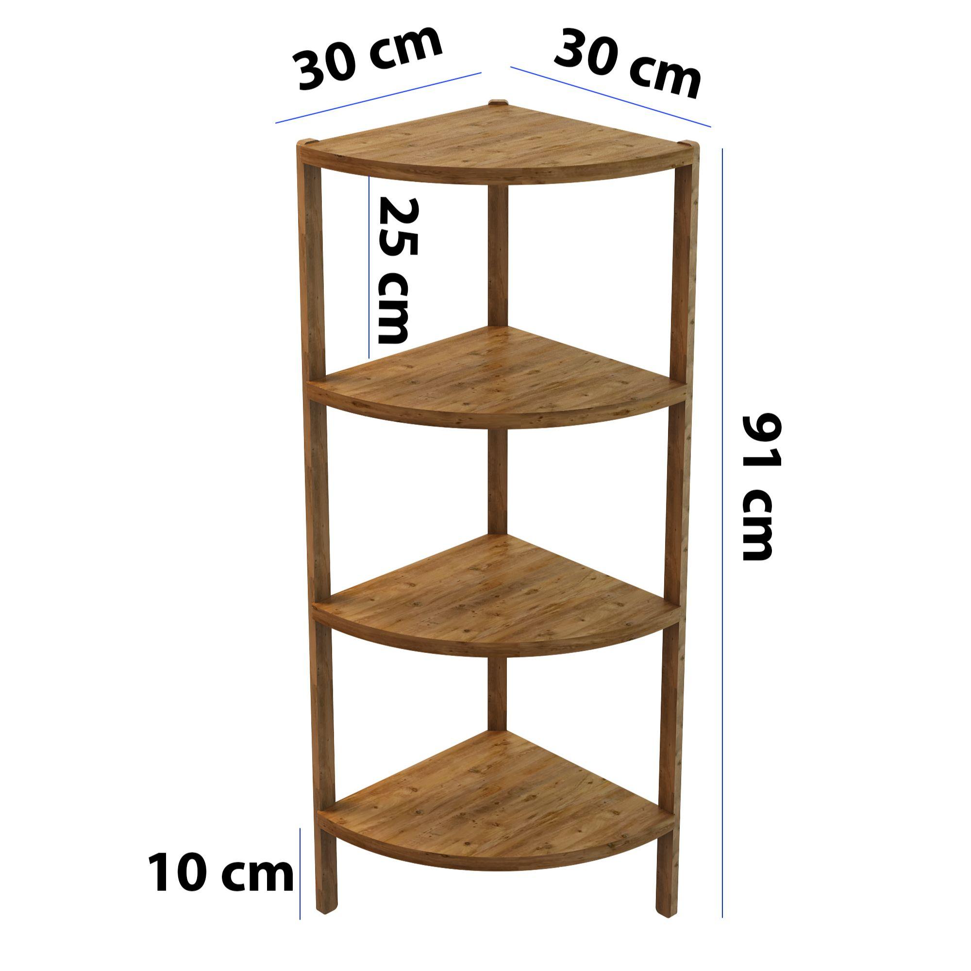 Jest Dekor Konsept Zümrüt 4 Raflı Üçgen Çok Amaçlı Ahşap Sehpa, hem fonksiyonel hem de estetik tasarımıyla evin her köşesinde kullanabileceğiniz çok yönlü bir üründür. Yüksekliği 91 cm, genişliği 30 cm olan bu sehpa, zarif yuvarlak rafları ve 25 cm aralıkları sayesinde çeşitli dekoratif eşyaları sergilemek için veya işlevsel kullanım seçenekleri sunuyor.
