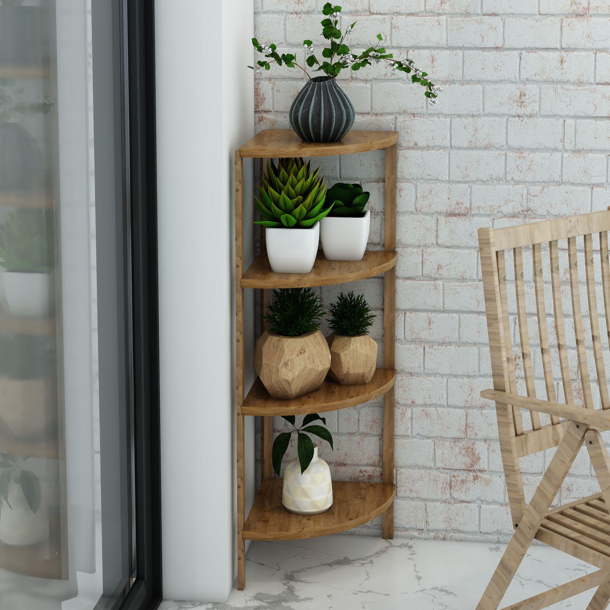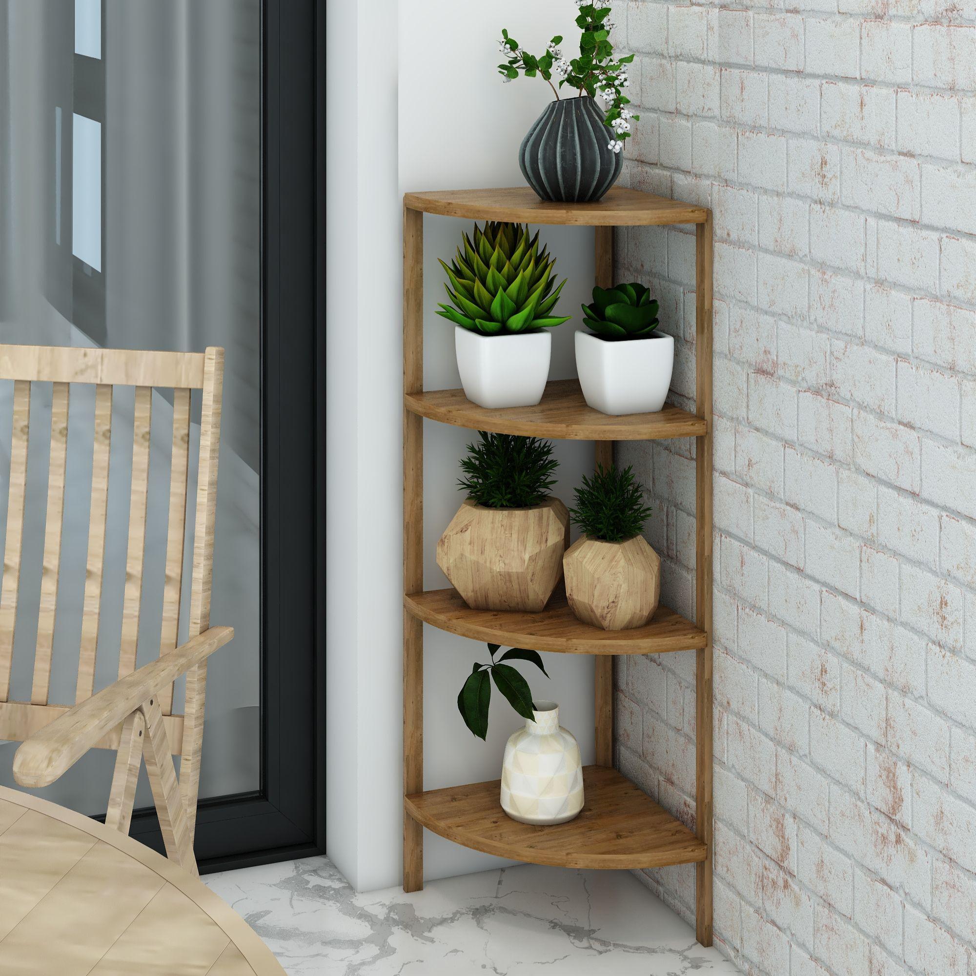Zümrüt Atlantik Çam 4 Katlı Üçgen Ahşap Çok Amaçlı Sehpa / Saksılık-Çiçeklik / Dekoratif Raf / Yüksek Kalite, Şık Tasarım