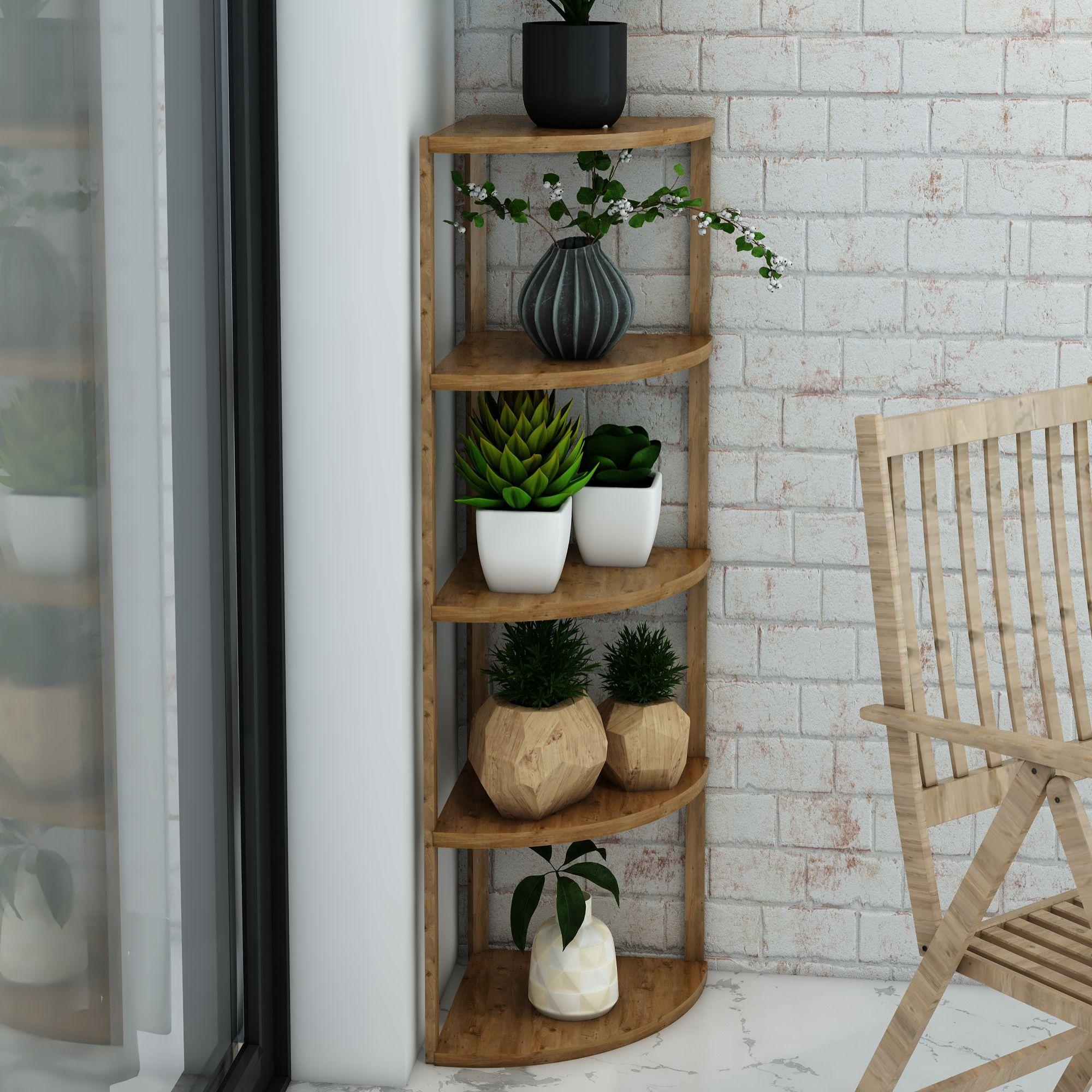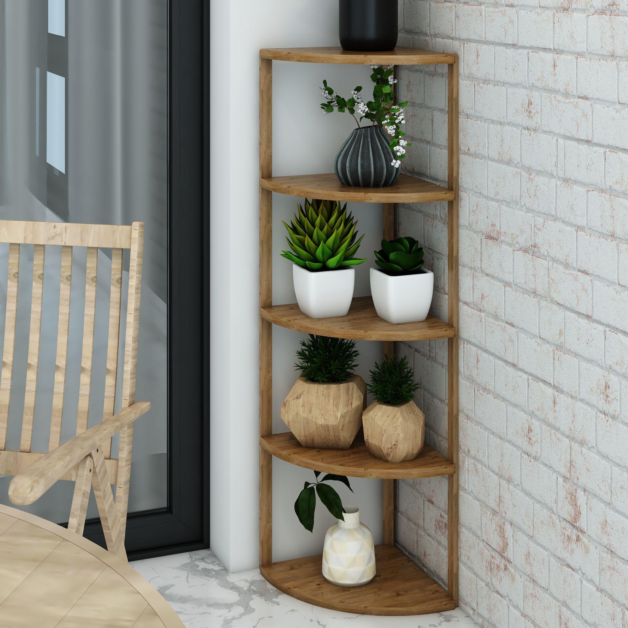 Zümrüt Atlantik Çam 5 Katlı Üçgen Ahşap Çok Amaçlı Sehpa / Saksılık-Çiçeklik / Dekoratif Raf / Yüksek Kalite, Şık Tasarım